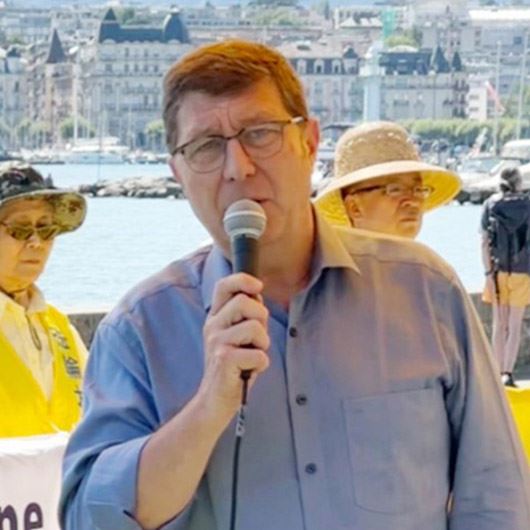 瑞士联邦议会众议员文森特·迈特(Vincent Maître)在集会上发言说:“我参加了这个纪念活动,以表达对在中国遭受迫害的法轮功学员的支持。他们在过去近二十五年里持续遭受极其残酷的迫害,特别是令人震惊的活体强制摘取器官行为。为了中国的基本自由权利而进行的斗争,必须持续获得国际社会的广泛支持,瑞士也应该在这场斗争中发挥其应有的作用。”
