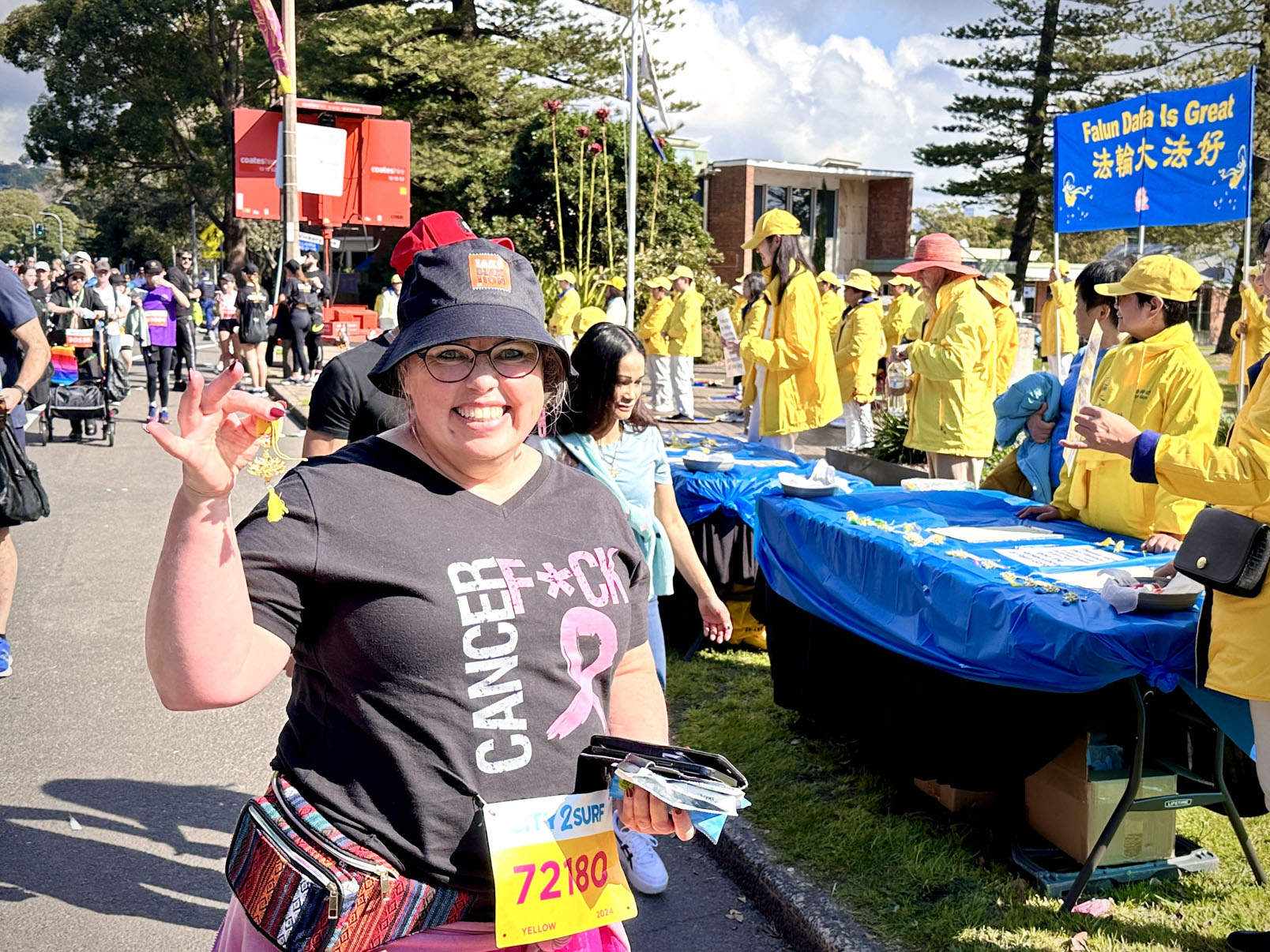 悉尼护士学校护士塔玛拉·鲍尔(Tamara Power)在路过法轮功展位前表示:“我觉得很漂亮。真的很可爱,是路途上一个非常好的温馨的停息站。”