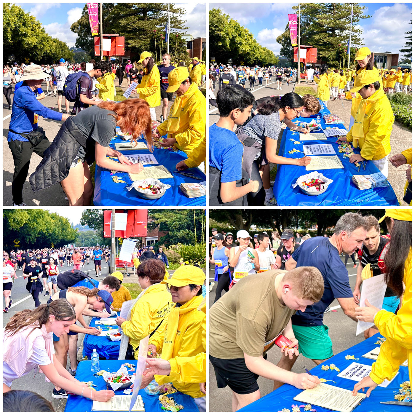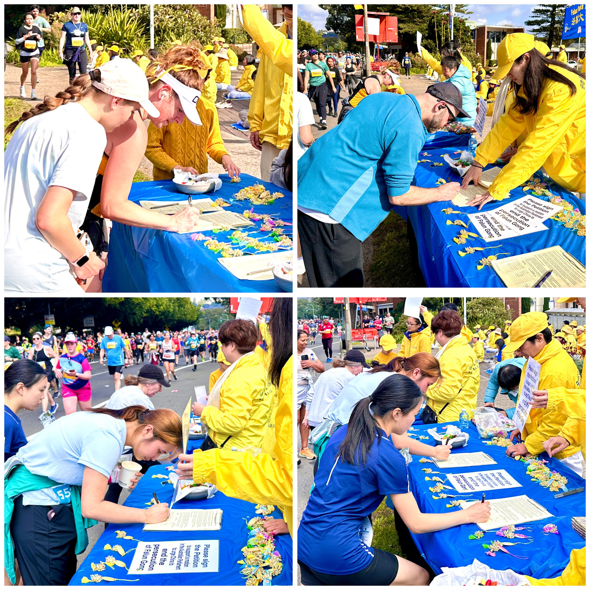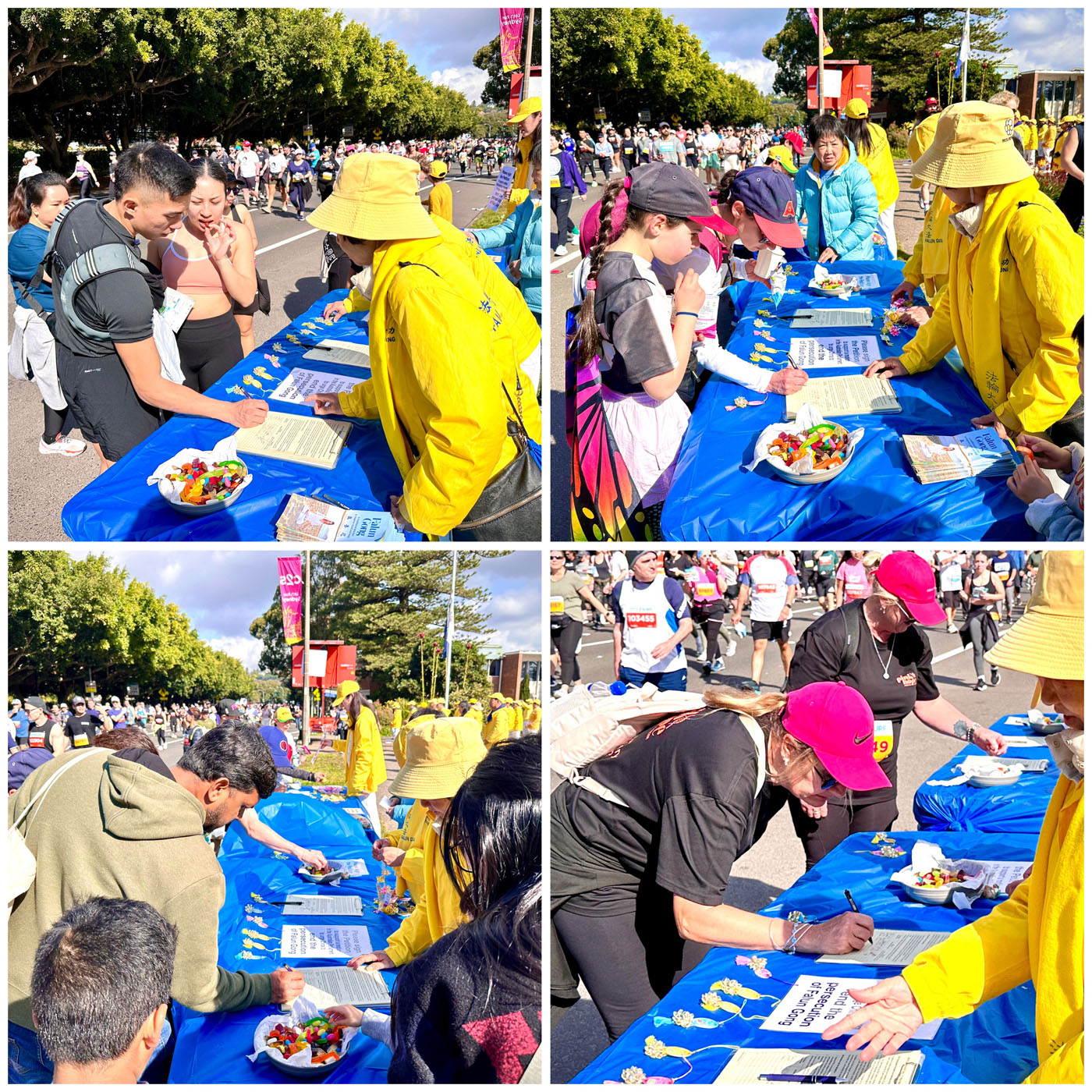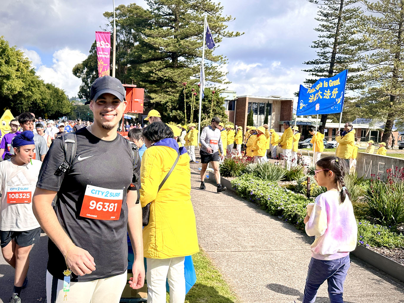 一年一度的世界上最大规模“从城市到海滩”澳洲慈善马拉松兴趣赛跑活动已拥有五十年悠久并富有启发性的历史,它从一场不起眼的当地公路赛转变为世界上最大的趣味赛跑,吸引了来自全球各地的超过85,000名参与者,他们也承负着为超过几百家慈善机构募捐重任,这使整个活动焕发着美好与积极向上的能量场。许多赛跑者在经过这道天然美丽的风景时,纷纷与法轮功学员互动,不少人鼓掌或挥手致意。有人说:“你们所做的事情真是太神奇了,非常好!”