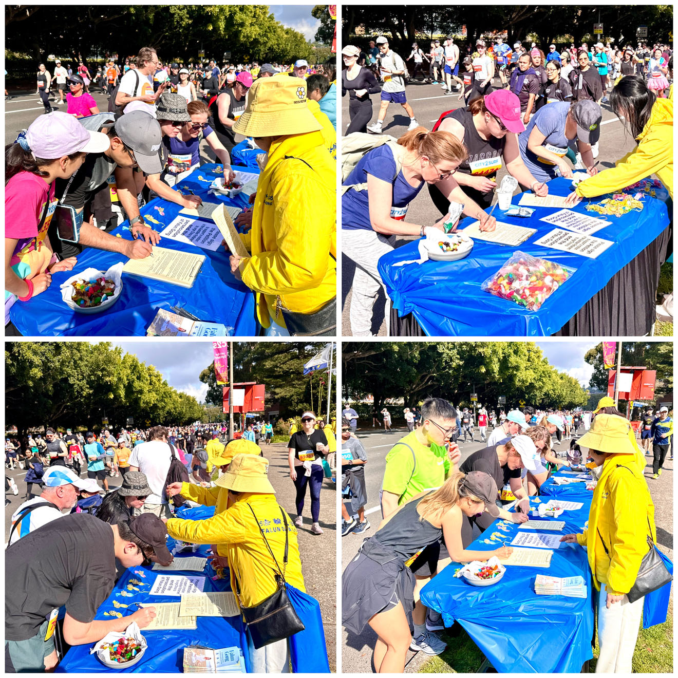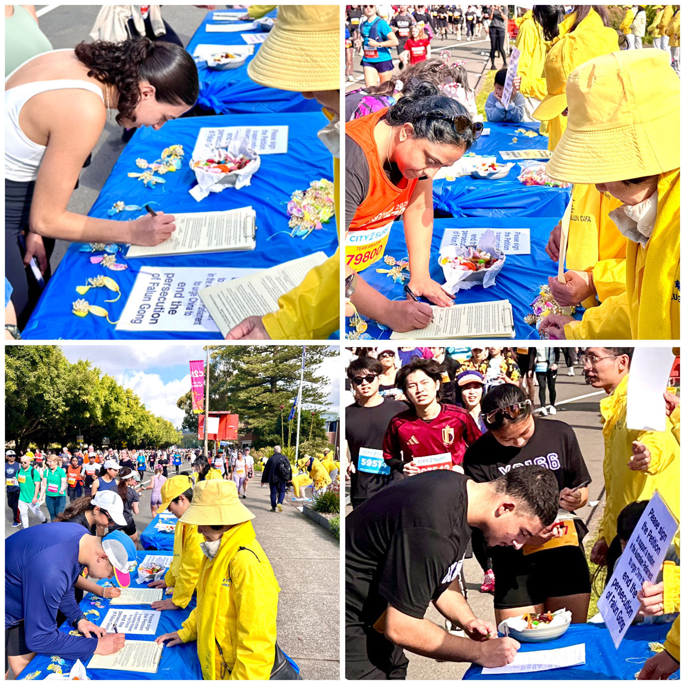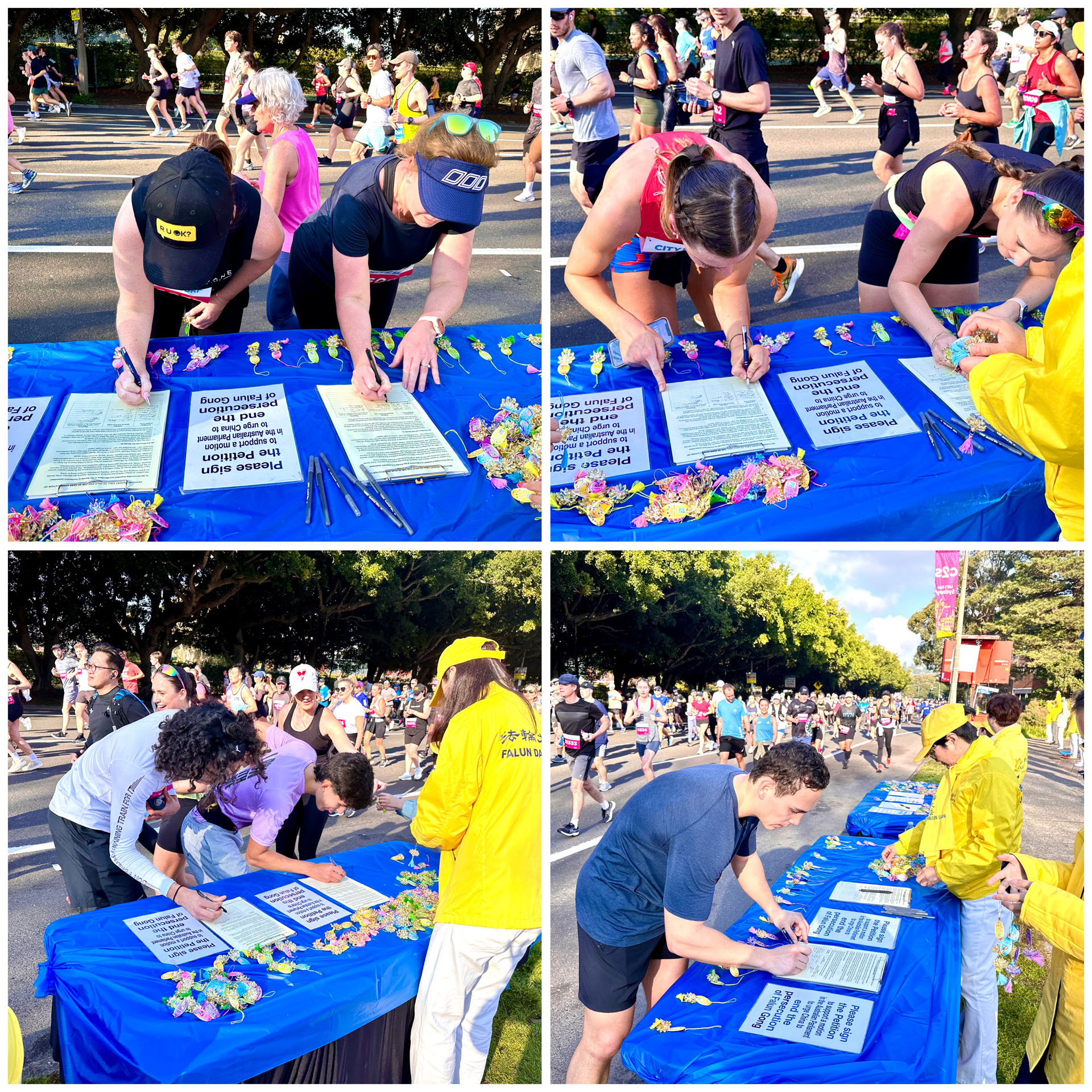 一年一度的世界上最大规模“从城市到海滩”澳洲慈善马拉松兴趣赛跑活动已拥有五十年悠久并富有启发性的历史,它从一场不起眼的当地公路赛转变为世界上最大的趣味赛跑,吸引了来自全球各地的超过85,000名参与者,他们也承负着为超过几百家慈善机构募捐重任,这使整个活动焕发着美好与积极向上的能量场。许多赛跑者在经过这道天然美丽的风景时,纷纷与法轮功学员互动,不少人鼓掌或挥手致意。有人说:“你们所做的事情真是太神奇了,非常好!”