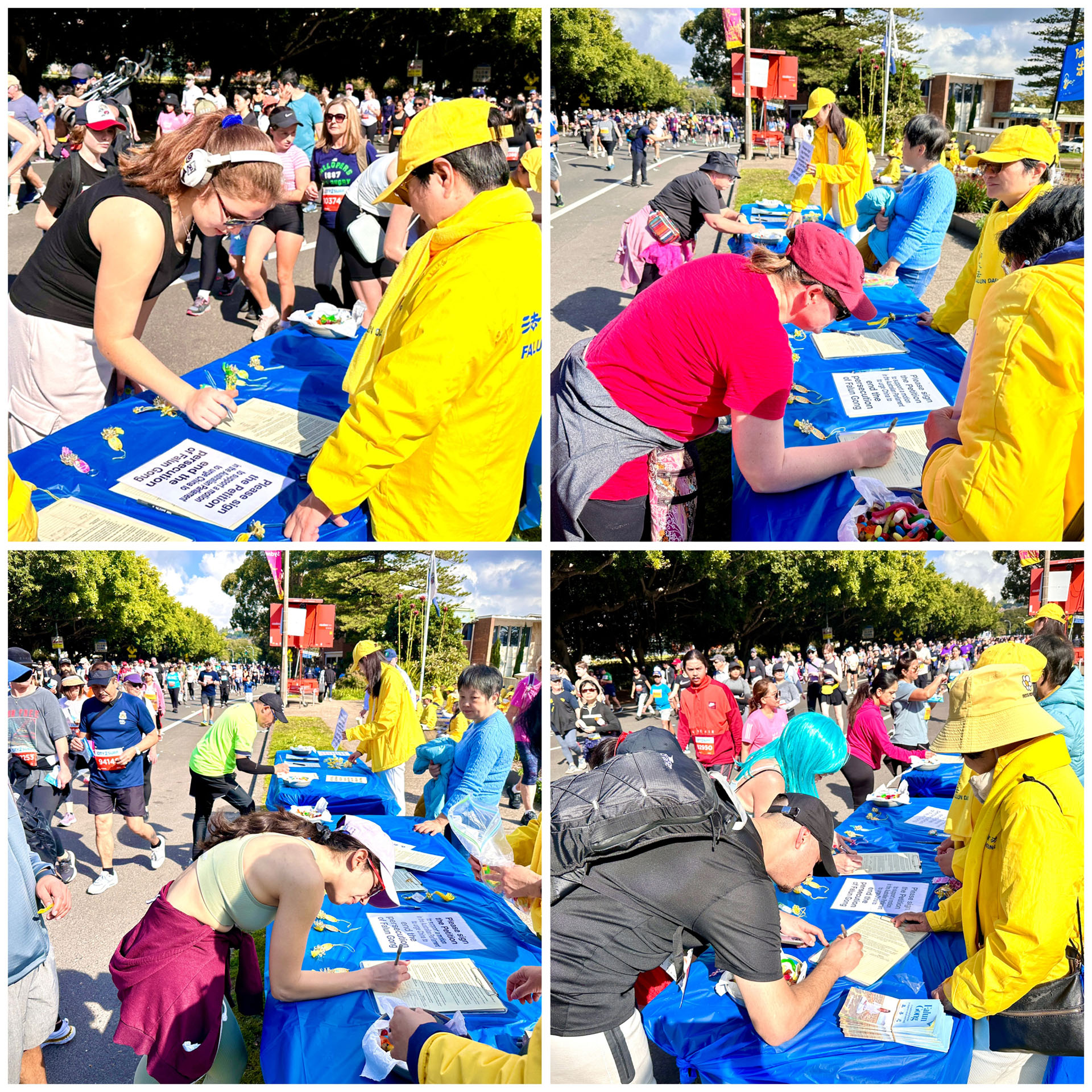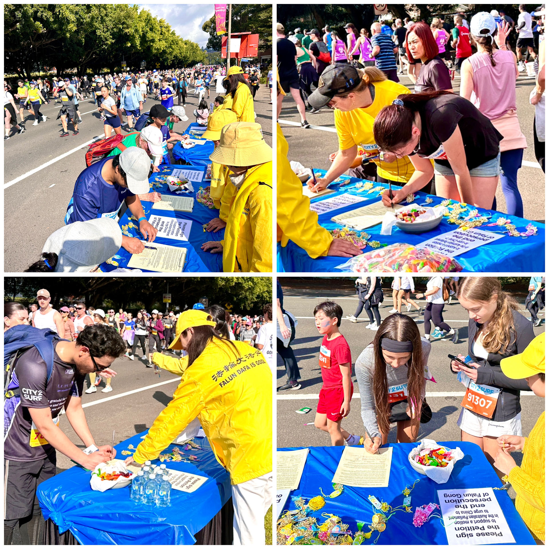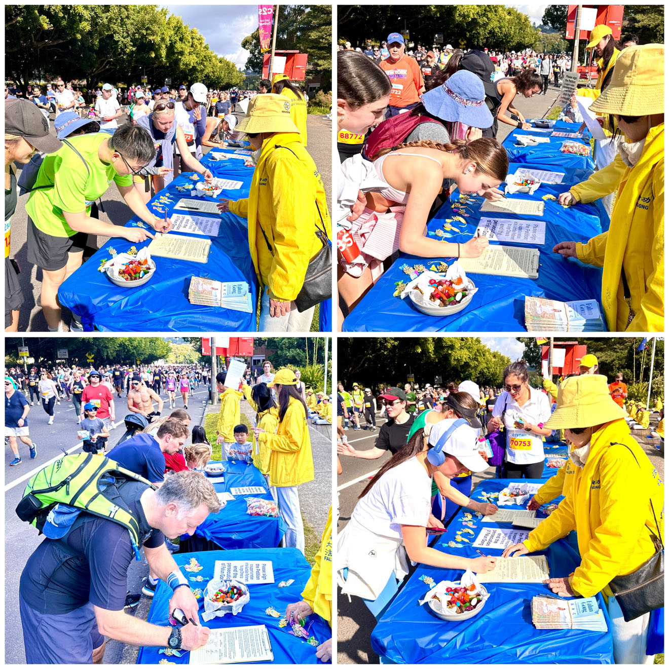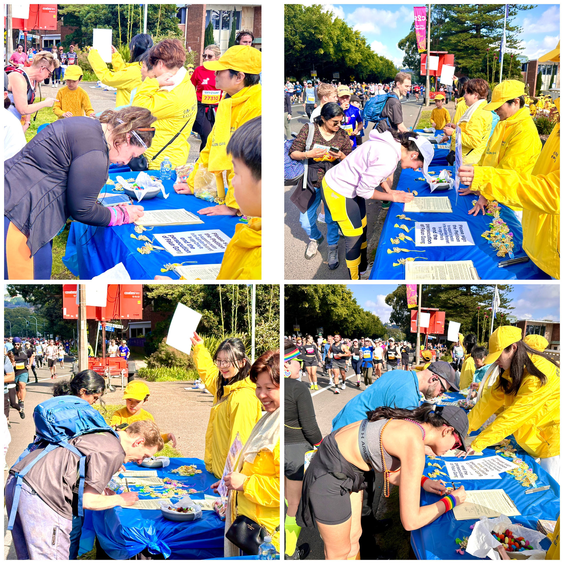 一年一度的世界上最大规模“从城市到海滩”澳洲慈善马拉松兴趣赛跑活动已拥有五十年悠久并富有启发性的历史,它从一场不起眼的当地公路赛转变为世界上最大的趣味赛跑,吸引了来自全球各地的超过85,000名参与者,他们也承负着为超过几百家慈善机构募捐重任,这使整个活动焕发着美好与积极向上的能量场。许多赛跑者在经过这道天然美丽的风景时,纷纷与法轮功学员互动,不少人鼓掌或挥手致意。有人说:“你们所做的事情真是太神奇了,非常好!”