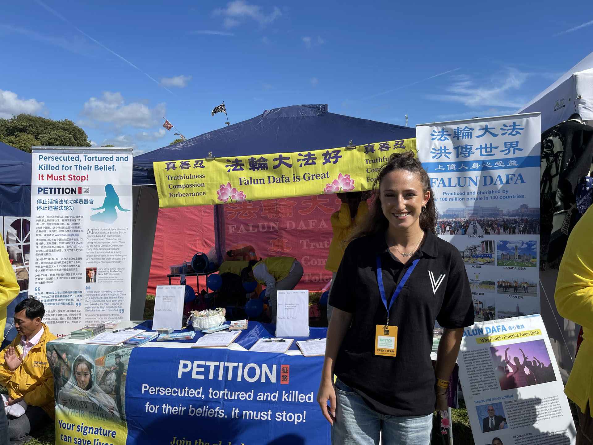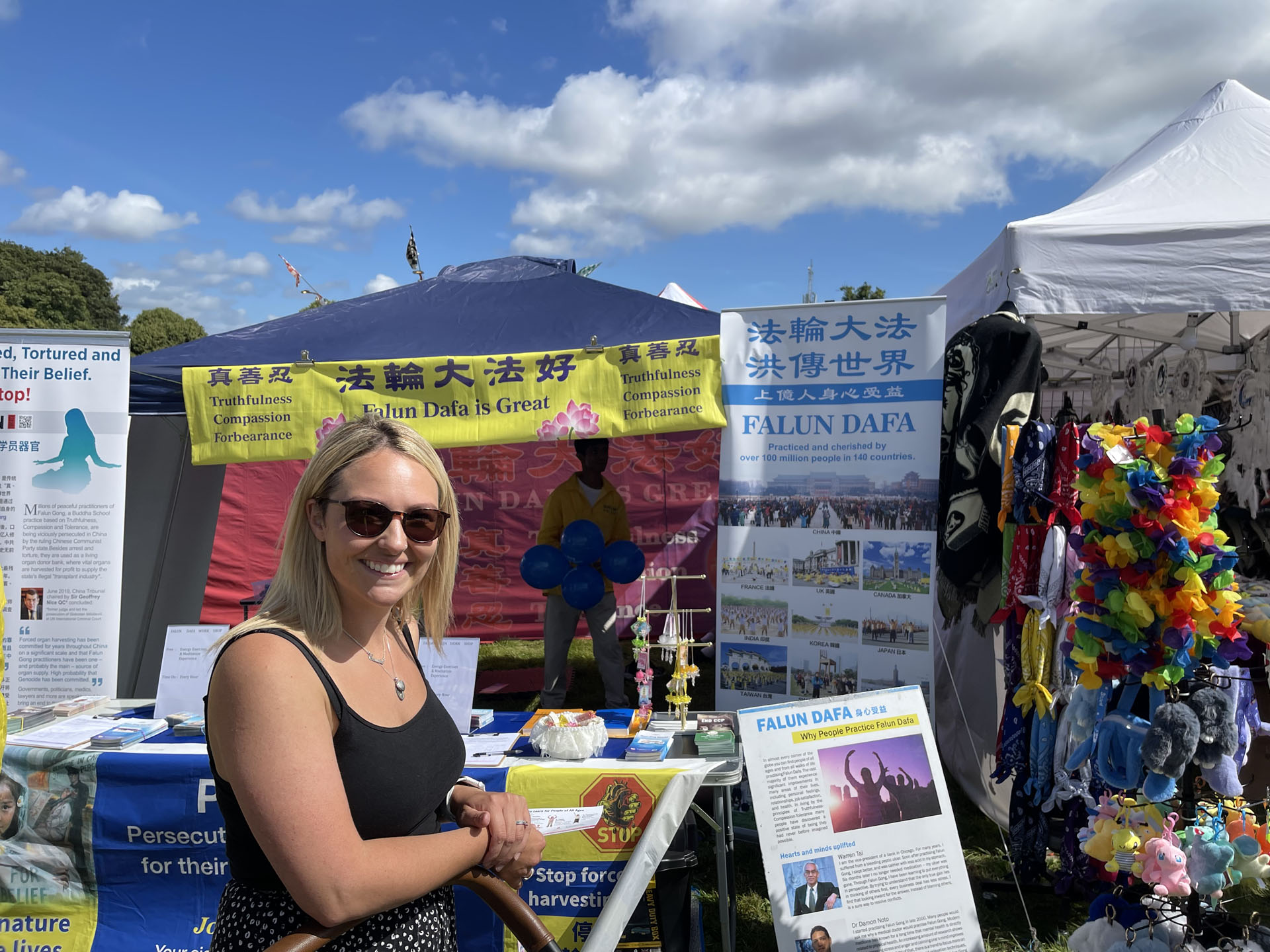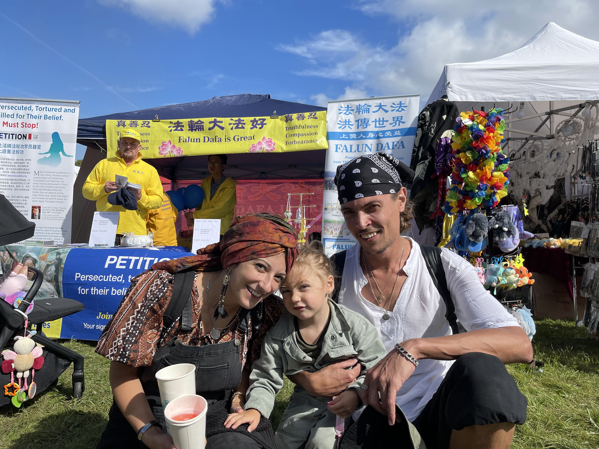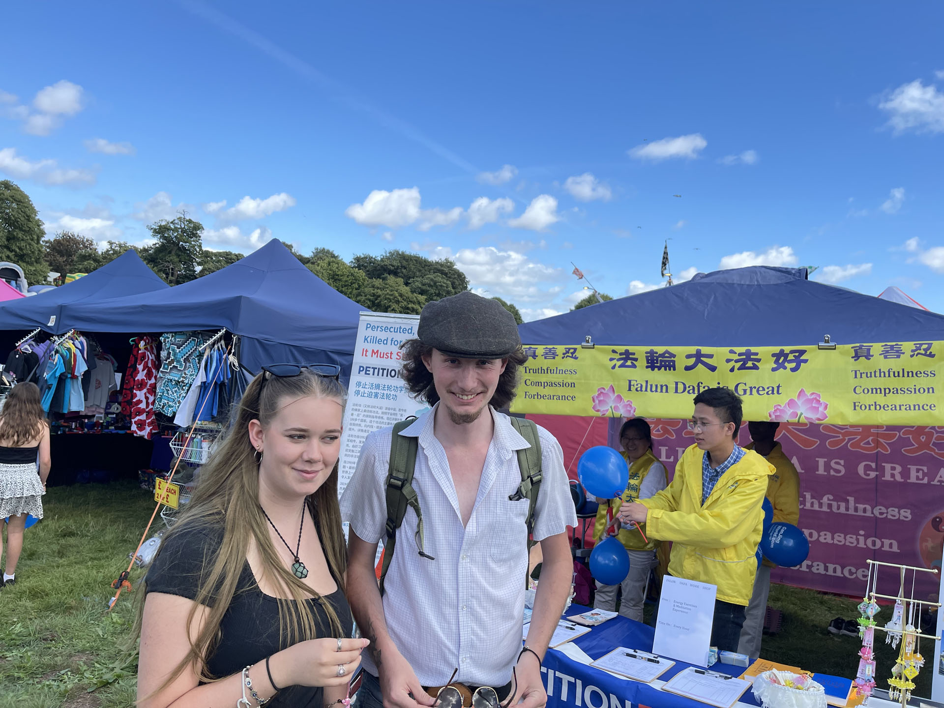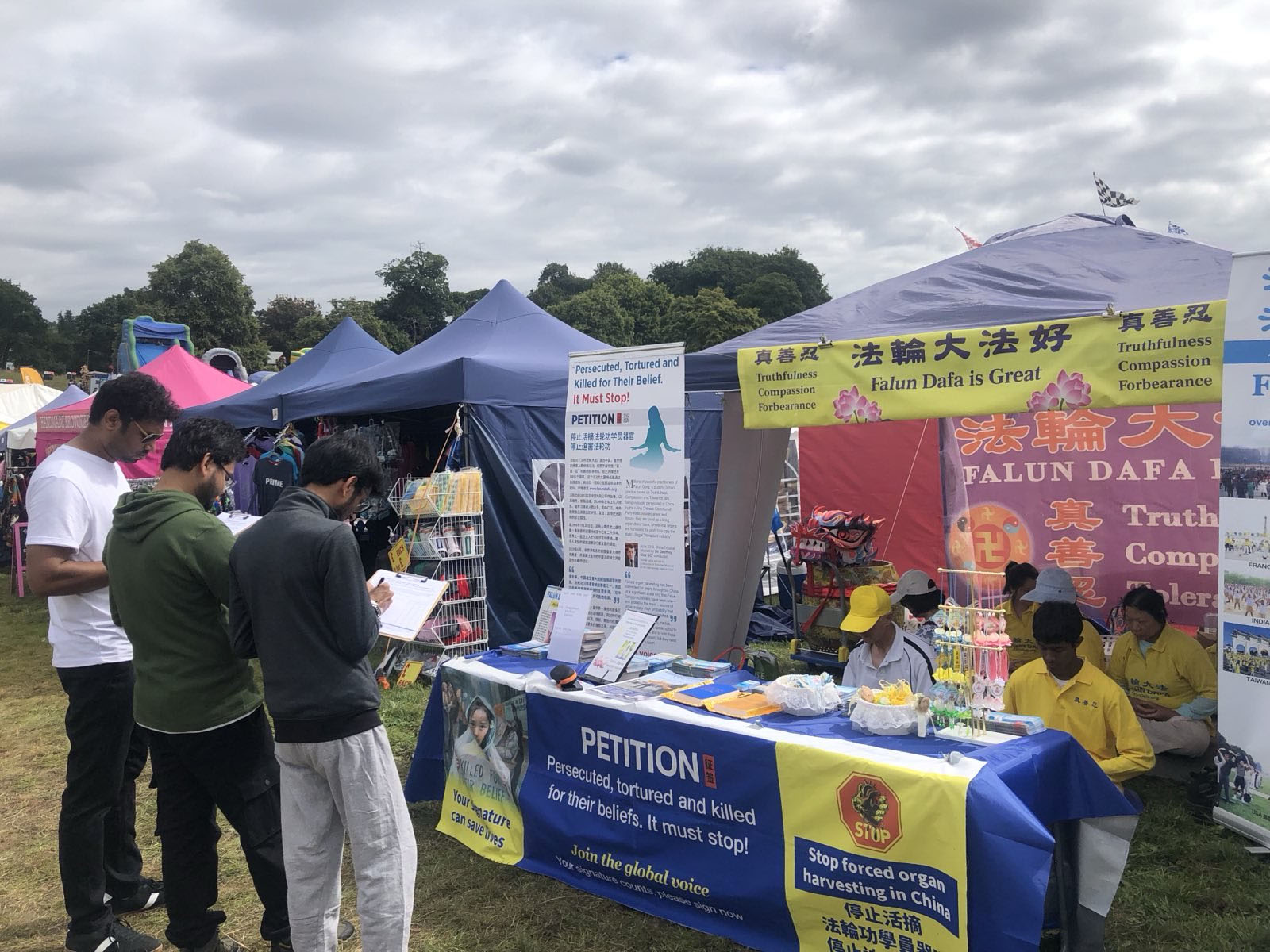 经过法轮功展位的游客络绎不绝,香港人赵先生刚来英国半年,看到法轮功学员就赞扬他们道德勇气可嘉,他非常支持征签反迫害。他说:“中共很不讲理,法轮功是和平的,为什么在大陆不让炼。我来英国是因为这里可以自由表达我的观点,不同的组织都可以表达自己的声音,大家都和平相处。”