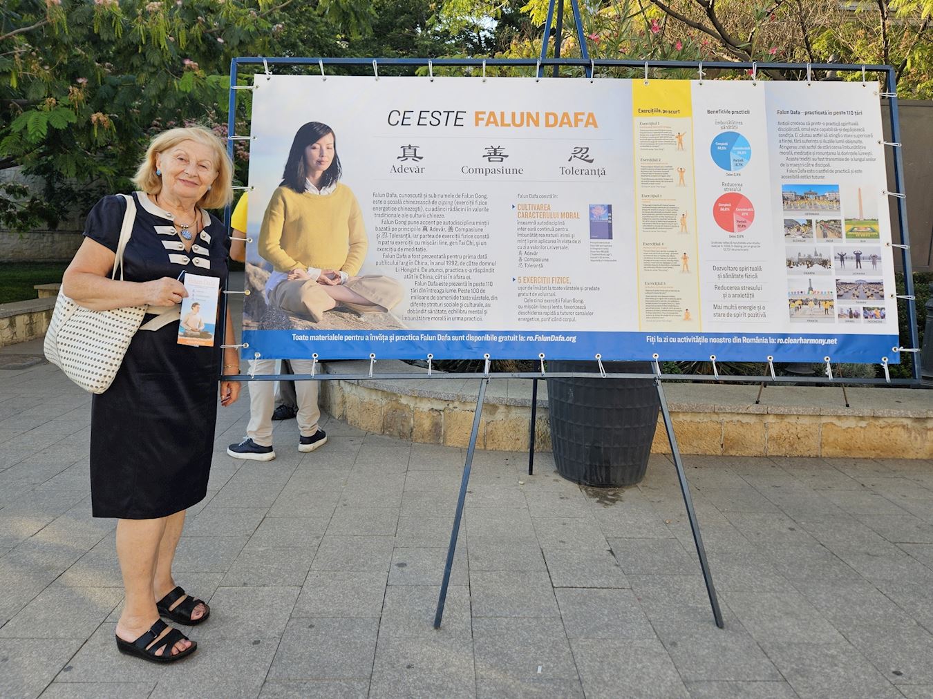 ![]() 图16:八月十一日康斯坦察,退休教师玛丽亚·达古苏说:“真、善、忍应该伴随每个人。” |