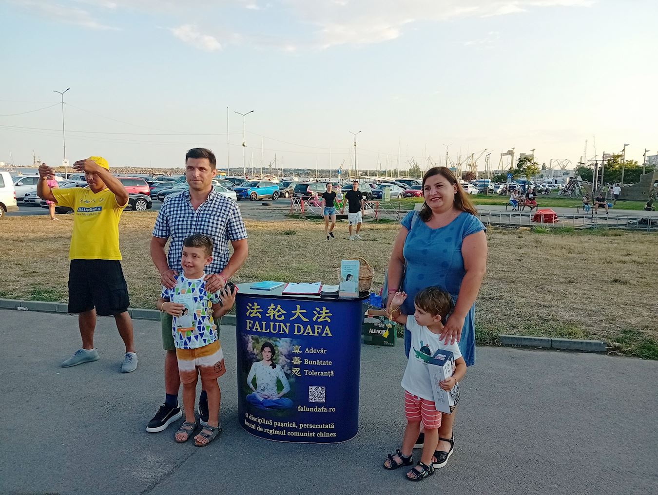 来自扎勒乌(Zalău)的比安卡(Bianca)、西普里安(Ciprian)和他们的孩子喜爱法轮大法的法理。西普里安说:“这些(真、善、忍)原则非常好。如果人们尊重他,我们将生活在一个美好的世界中。”他曾经媒体上听说中共的迫害,并希望了解更多的情况。西普里安告诉中国和国际上的法轮功学员要“继续坚持,捍卫信仰”,并祝愿学员成功。