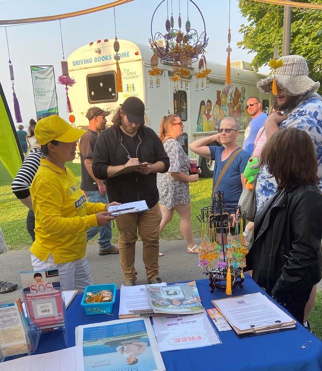 纽约州的法轮功学员也参加了海港节,在真相展位前,游客们纷纷驻足,饶有兴趣地观看教功视频,阅读学员递上的真相资料。善良的人们得知中共残酷迫害法轮大法并活摘器官的暴行后,纷纷在请愿书上签名,要求美国参议院尽快通过法轮功保护法案。以下是几则感人的小故事。