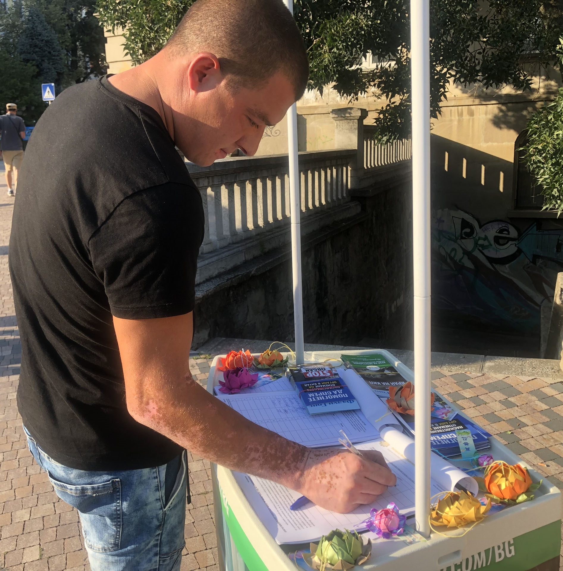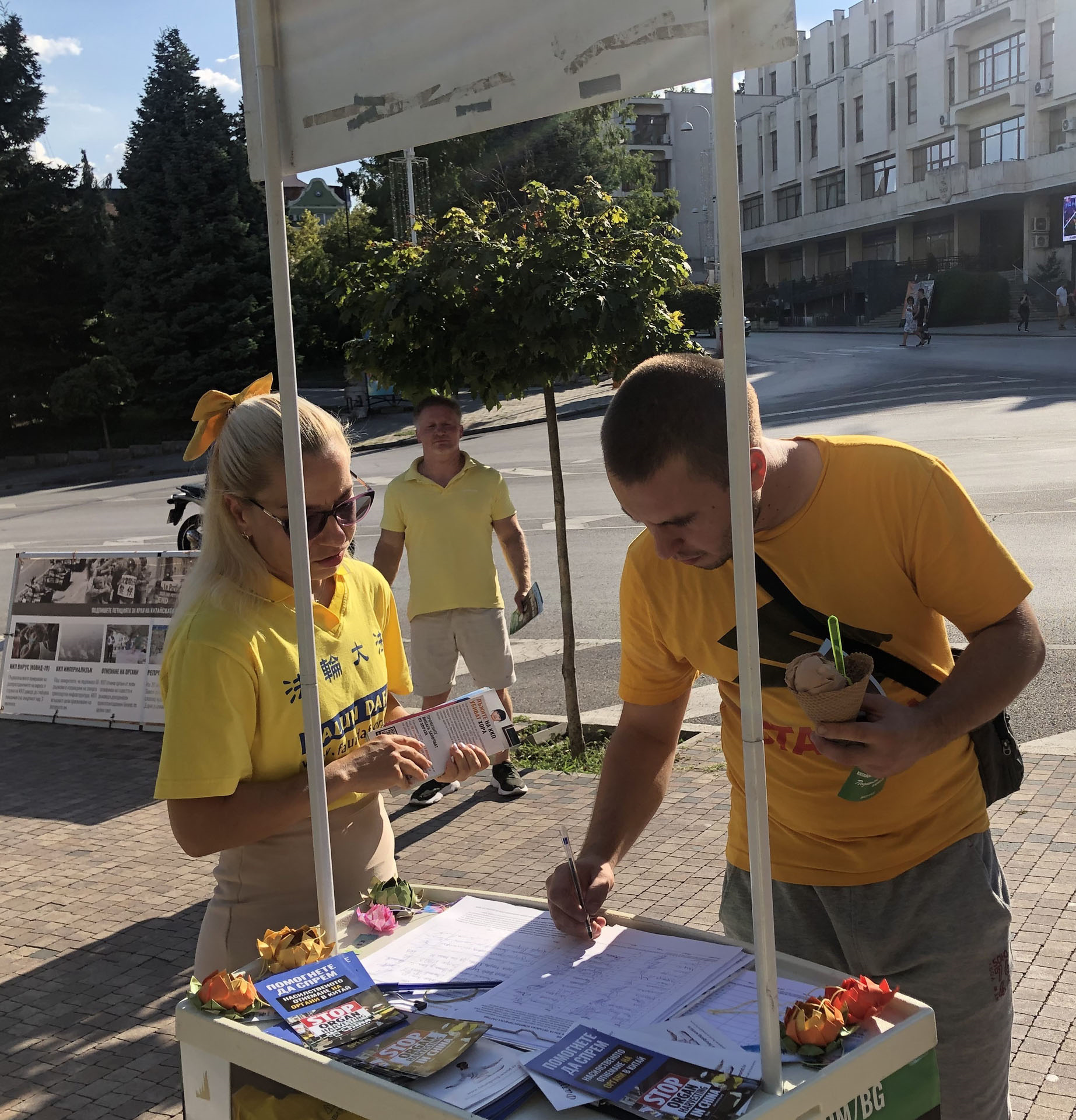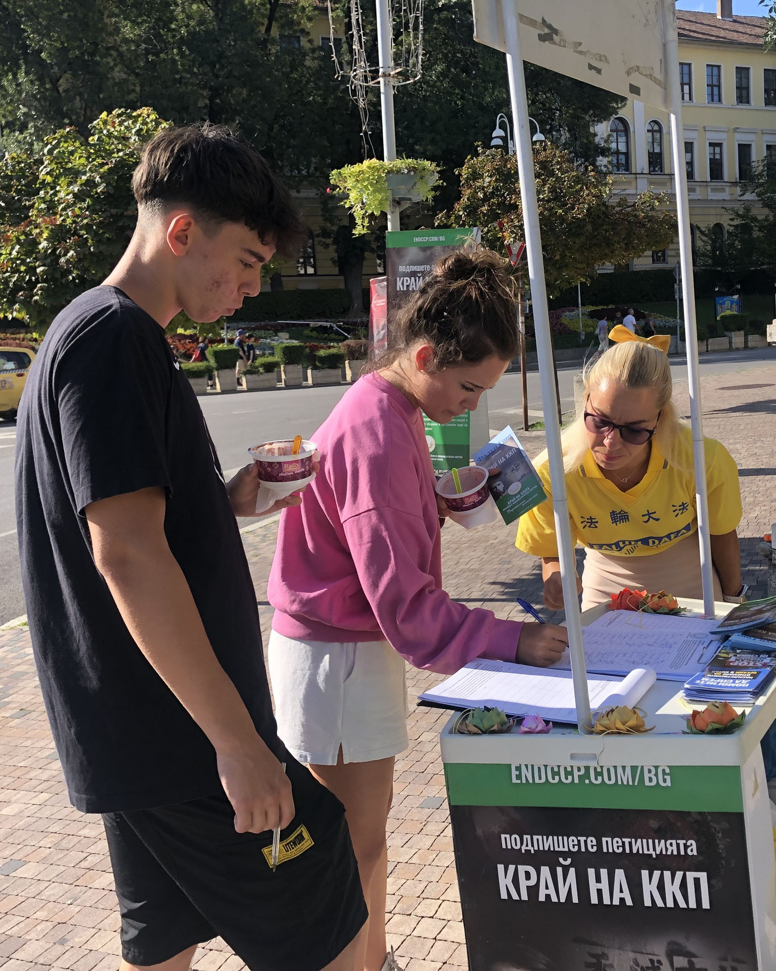 普拉梅娜(Plamena)来自旧扎戈拉(Stara Zagora),今年三月才开始修炼法轮大法,她也参加了这次讲真相活动,并有机会和许多路人交谈。她表示,有些人从未听说过中共针对法轮功发起的暴行,当他们得知真相后都感到震惊。“当他们意识到通过签署(请愿书)可以帮助阻止中共犯罪时,他们立即签了名。”她说。