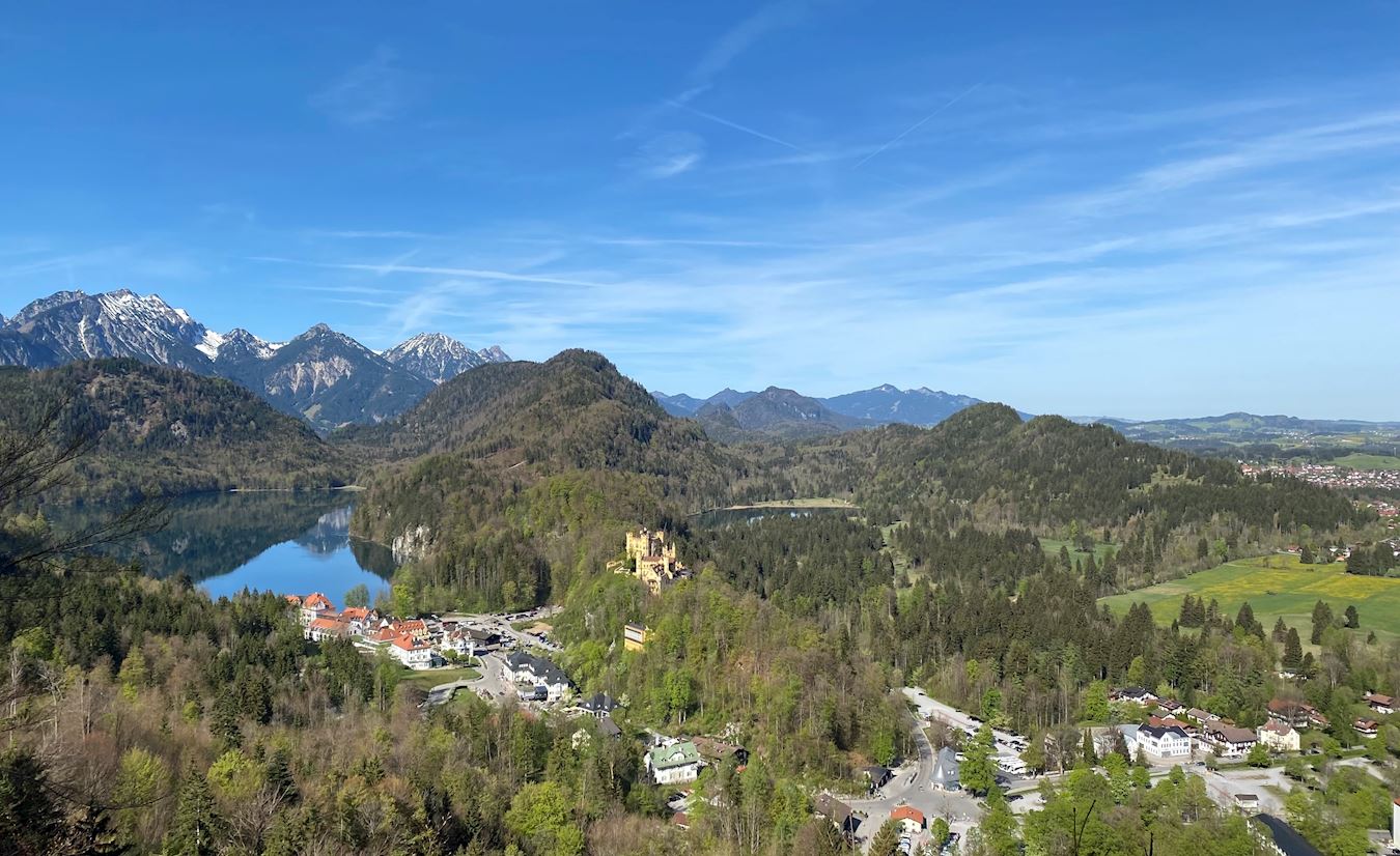 ![]() 图2:新天鹅堡山脚下,右边上边小镇是菲森(Füssen)。 |