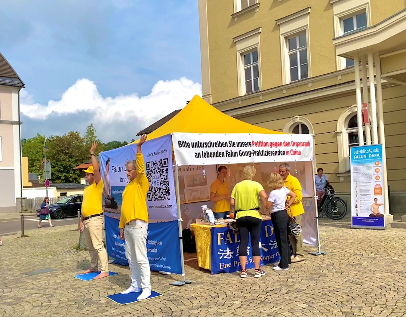 ![]() 图1:二零二四年八月十七日,德国巴伐利亚州的法轮功学员在著名风景区新天鹅堡山脚下的菲森(Füssen)举办活动。 |