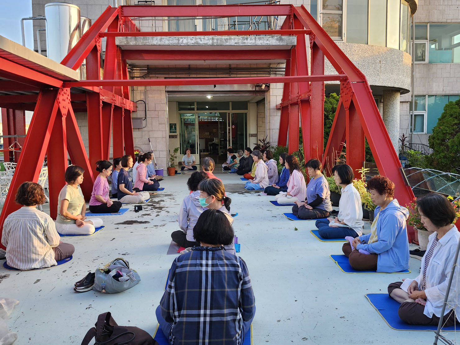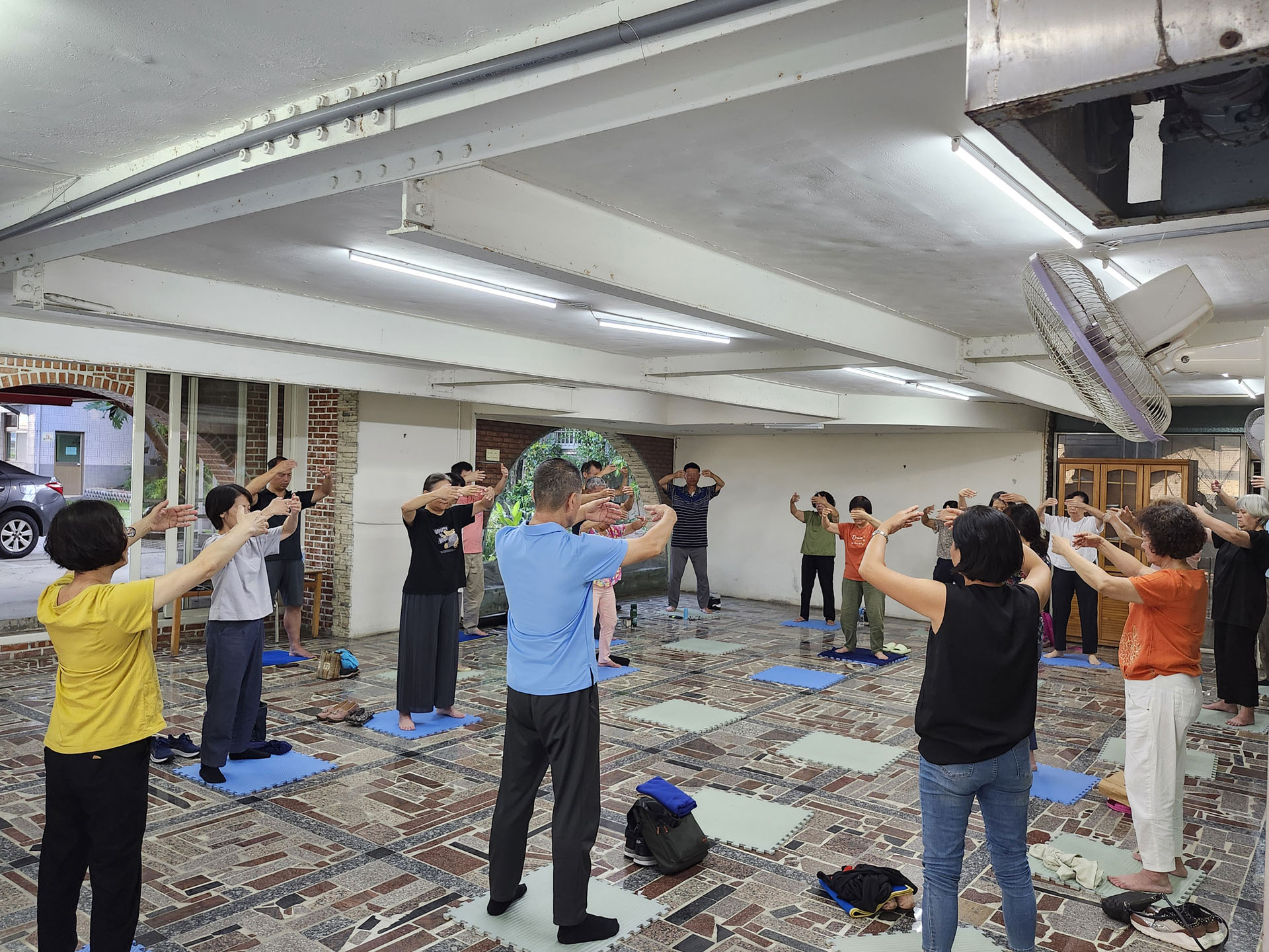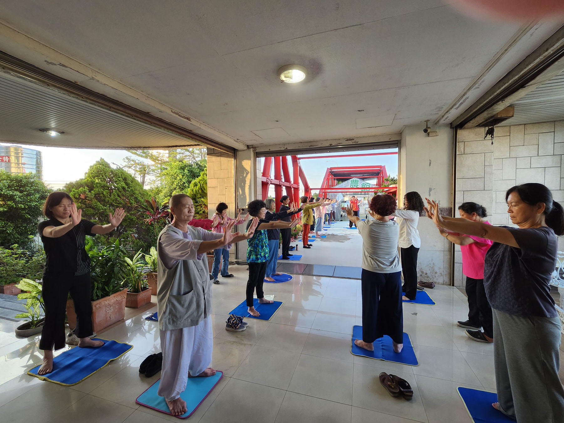 ![]() 图2~4:二零二四年八月二十五日清晨,参与活动的学员分别在室内及室外晨炼。 |