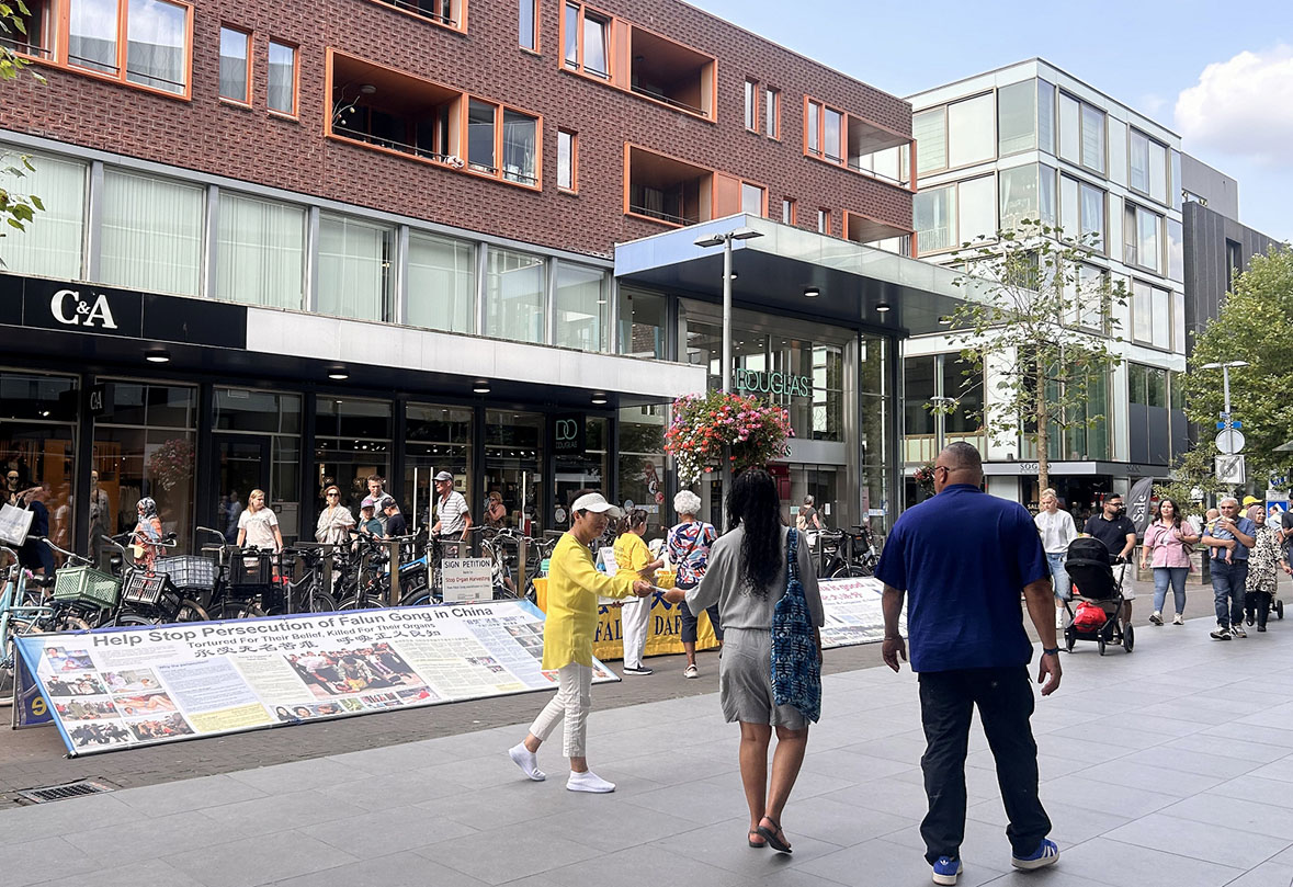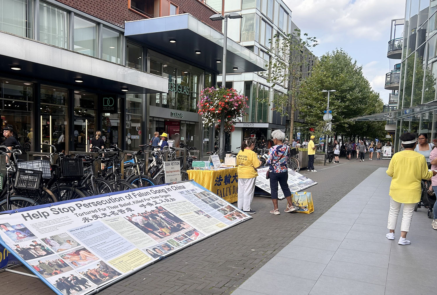 霍夫多普是北荷兰省哈莱默梅尔的一个主要城镇。八月十七日中午,学员们在Marktlaan商业区举办法轮功信息日活动,弘法、派发传单。吸引过往的路人驻足观看,有的与学员交谈,想了解更多关于法轮功的讯息。