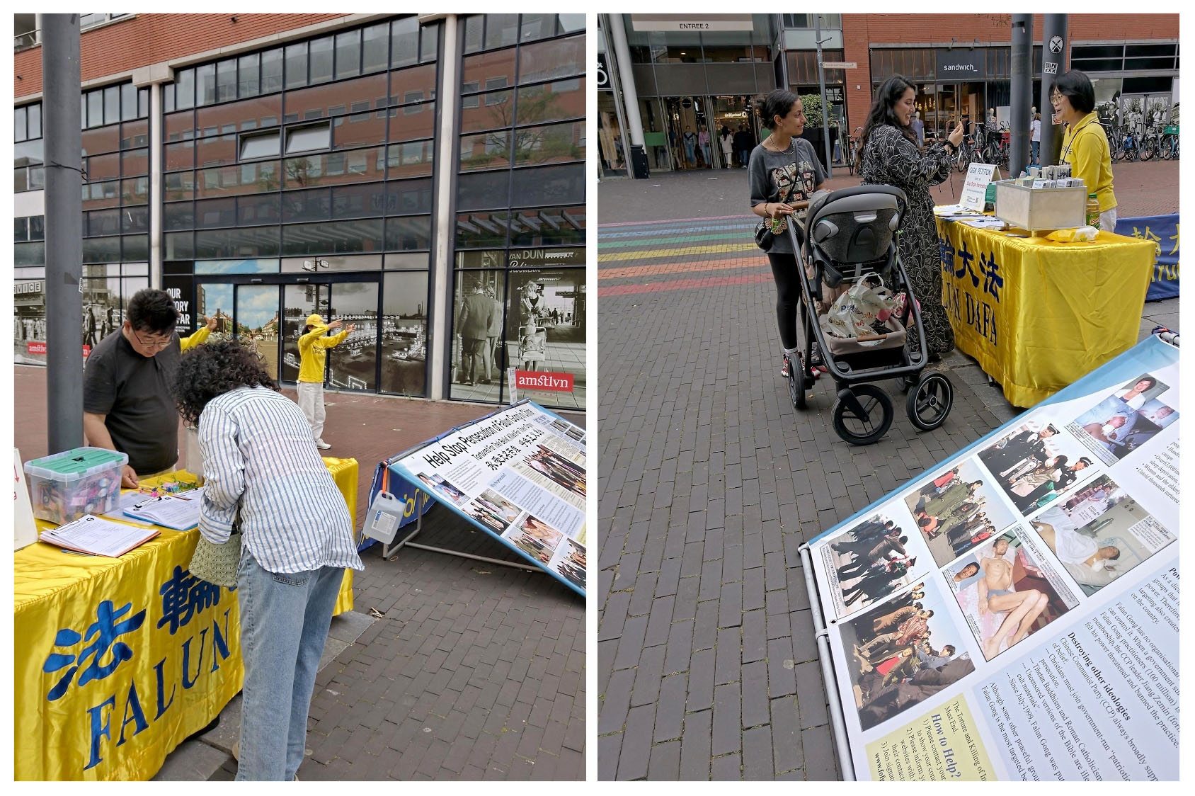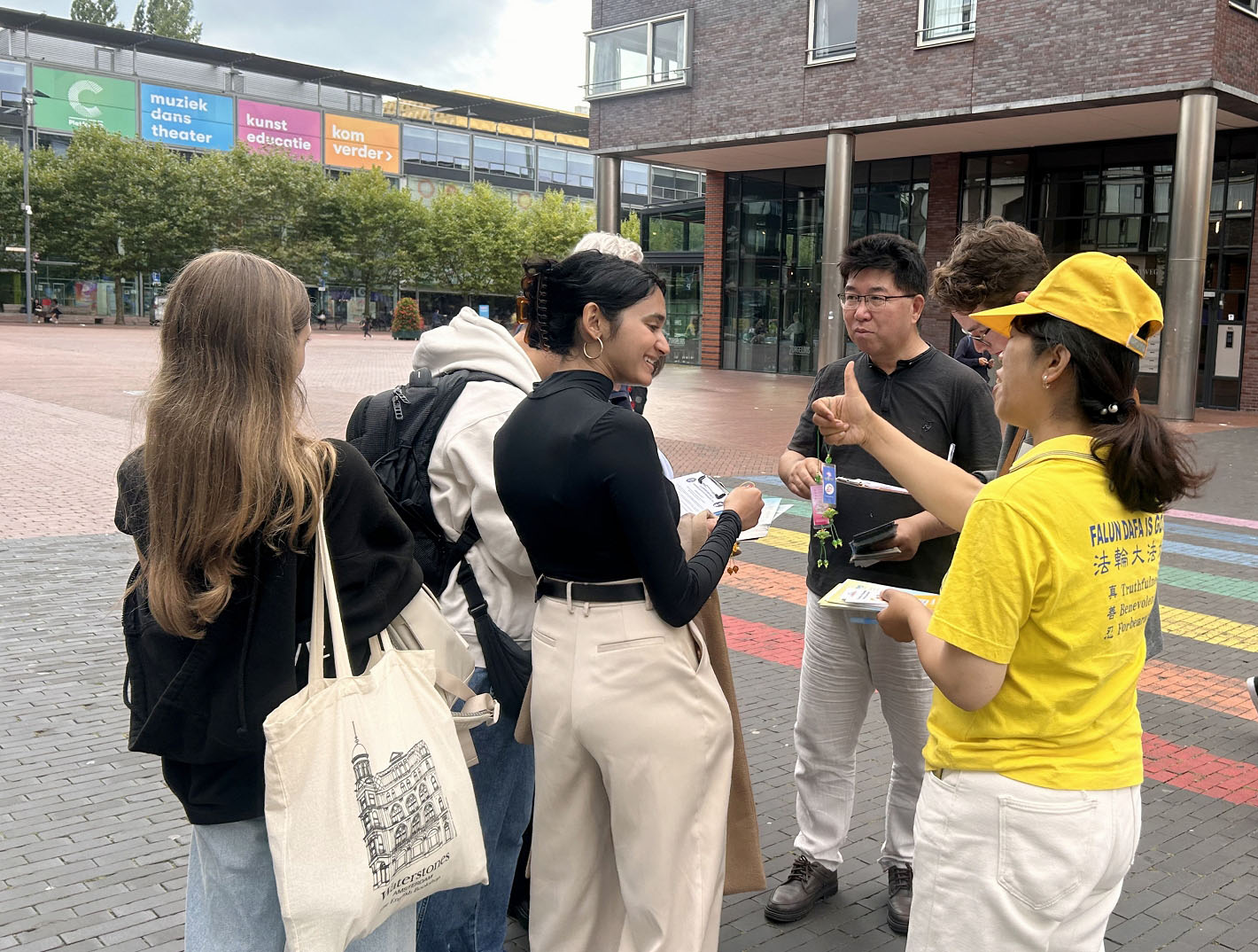 一名荷兰女士走到征签桌前签名后对学员说:“我可以多带几份传单走吗,我居住的社区有三百人,我要把这些资料放在大家活动的公共区域,把这个消息告诉他们!”