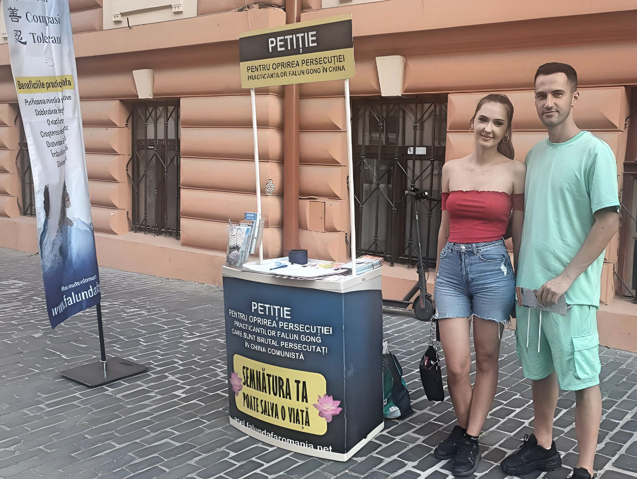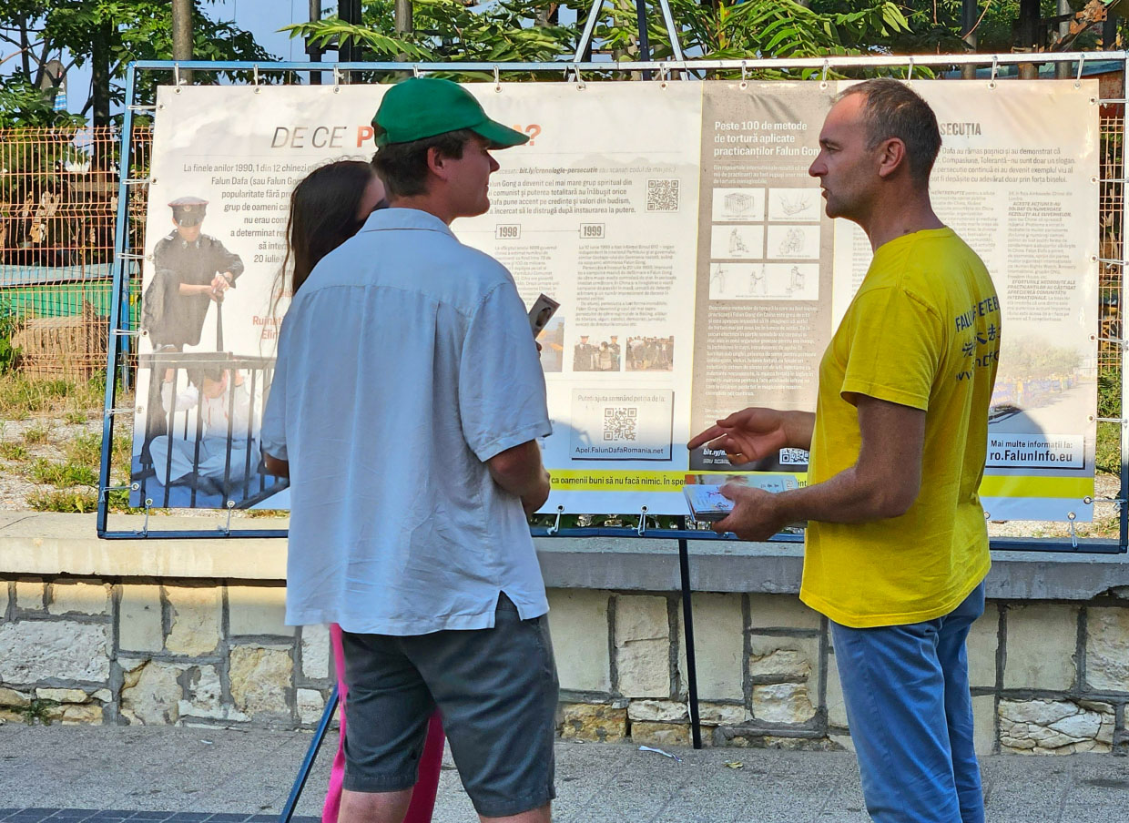 在康斯坦察的埃莱贡多拉(Telegondola)的法轮功真相展位上,一对居住在美国的夫妇与法轮功学员交谈,男士是来自芝加哥的美国人,女士是罗马尼亚人。夫妇俩都对法轮功学员举办的活动很感兴趣,当了解到法轮大法修炼者在中国遭受的迫害,中共活摘人体器官牟利的罪行后,他们都在反迫害请愿书上签了名,并表示回到芝加哥后要寻找法轮大法炼功点学炼法轮功。