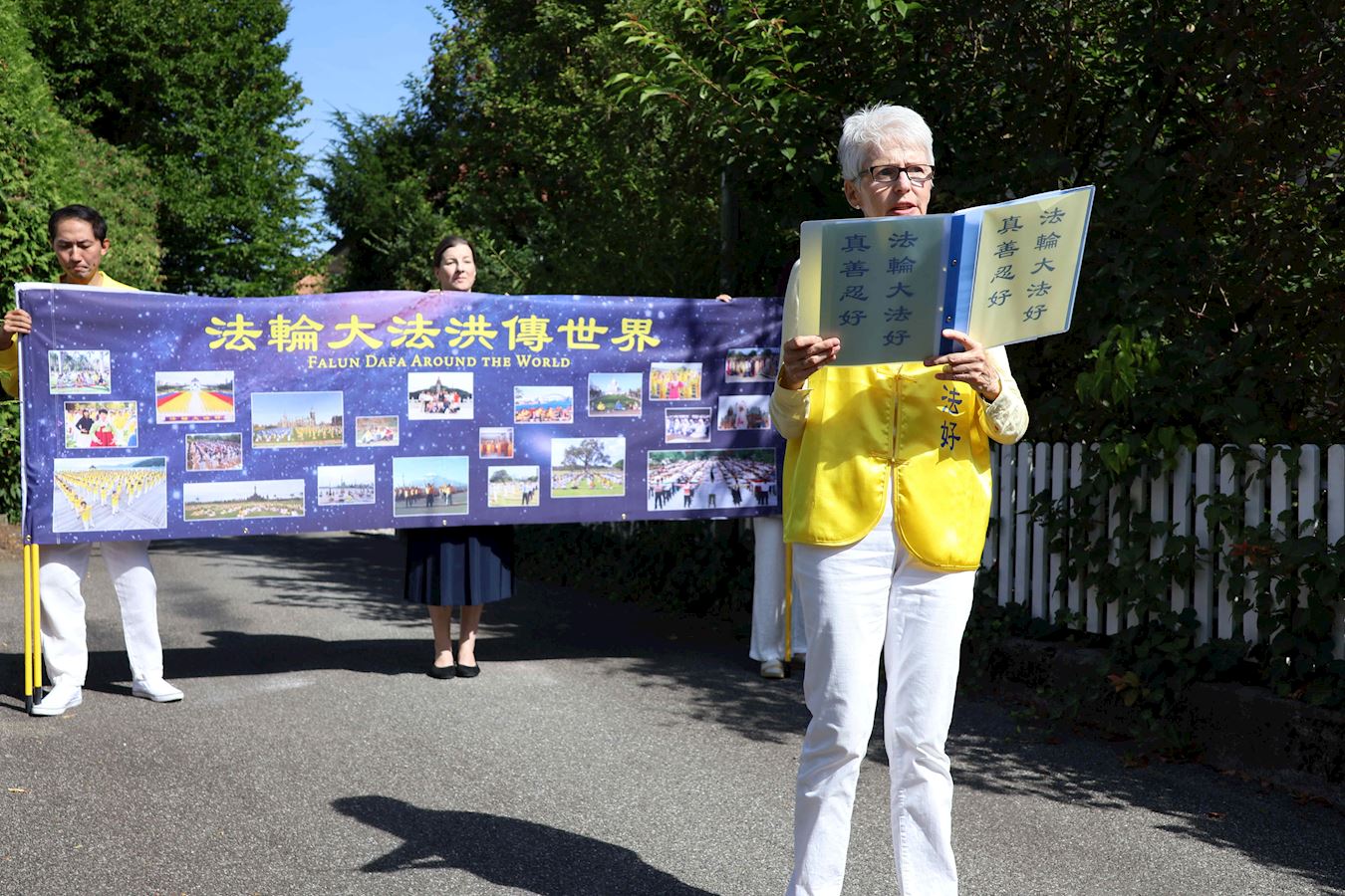 演讲中也分享了当天上午在中共驻伯尔尼使馆前宣读的劝善信,在中文和德文的两封信中,法轮功学员告诉中共使馆工作人员:正因大法的美好,三十多年来弘传世界上百个国家;也因迫害的危害,二十五年来多少家破人亡;但无论身在何处,来自哪个国家,中国,瑞士及世界各地的法轮功学员都希望您,身为使馆的工作人员,能敞开心扉,了解真相,选择美好的未来——为了您自己,也为了您的家人。