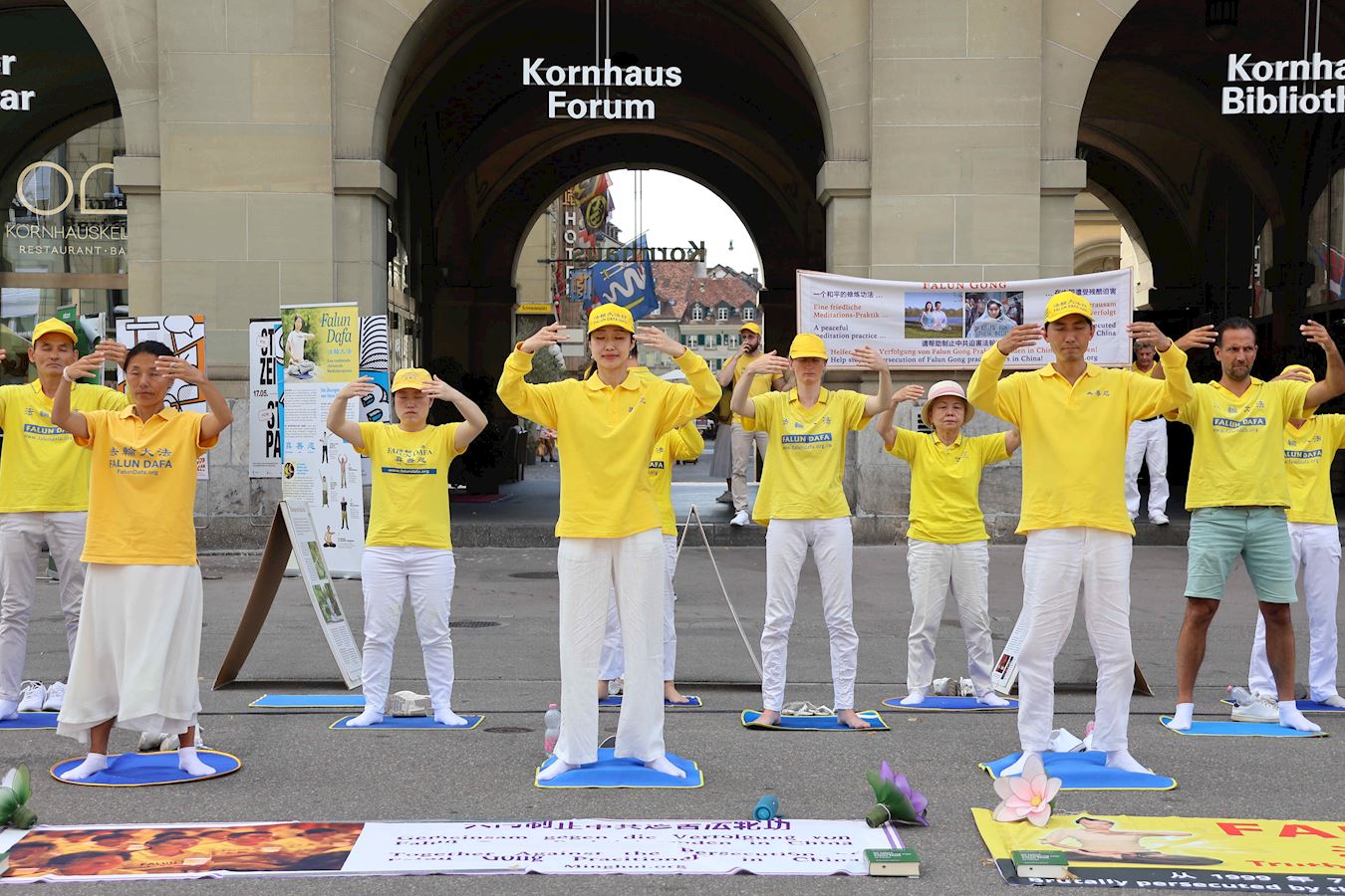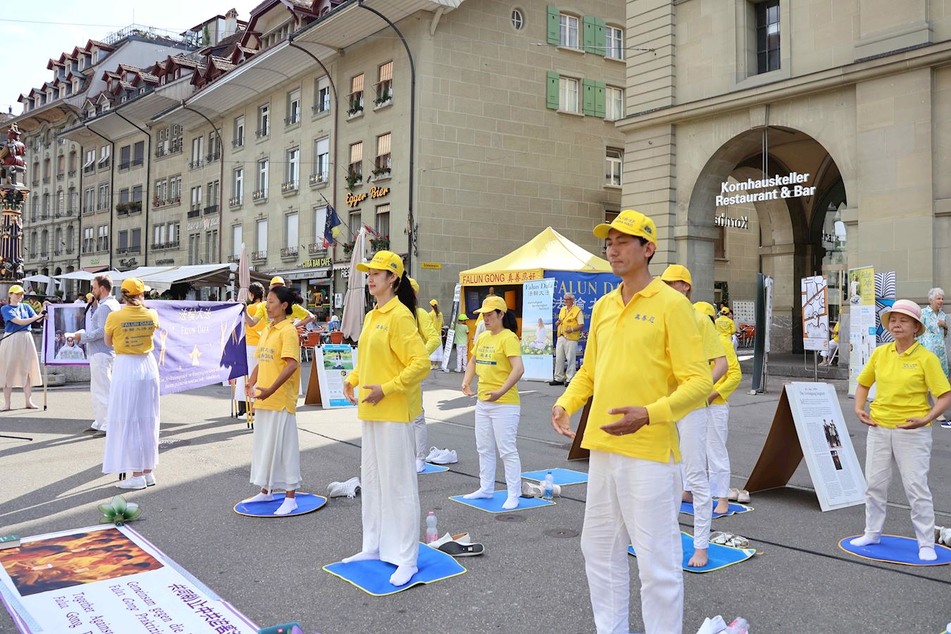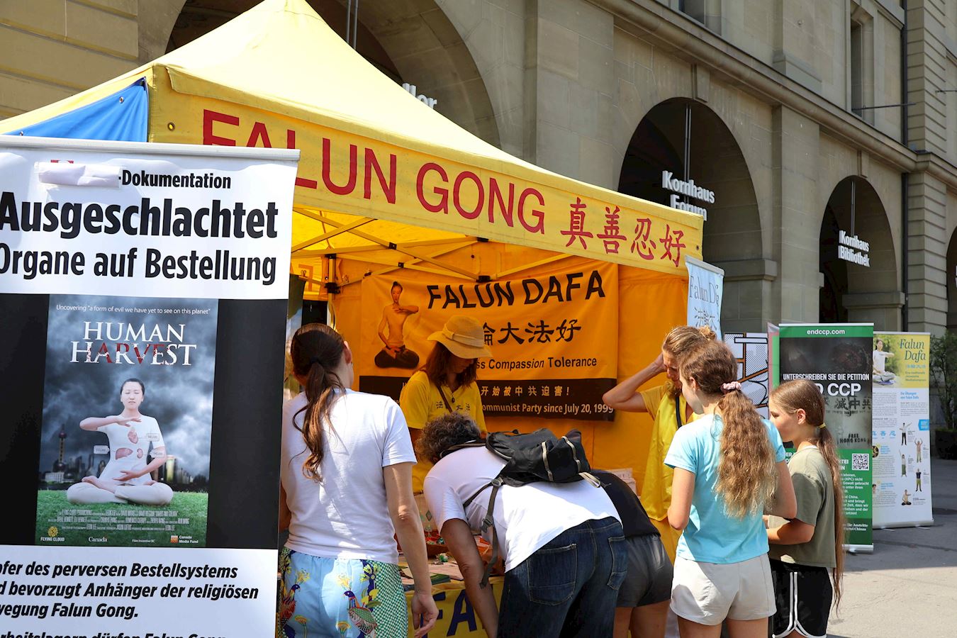 来自德国的亚历山大·劳滕施莱格(Alexander Lautenschläger)是位职业军人,正在伯尔尼度假的他看到法轮功学员的活动后格外高兴。在数年前,他曾在网上知晓了法轮大法:“我觉得这个信仰传递的讯息和引导的方向非常吸引人,是如此地祥和,美妙。我对法轮功有着非常正面的印象,其中特别提出了对人性及社会非常重要的点,非常正面,我很喜欢。”