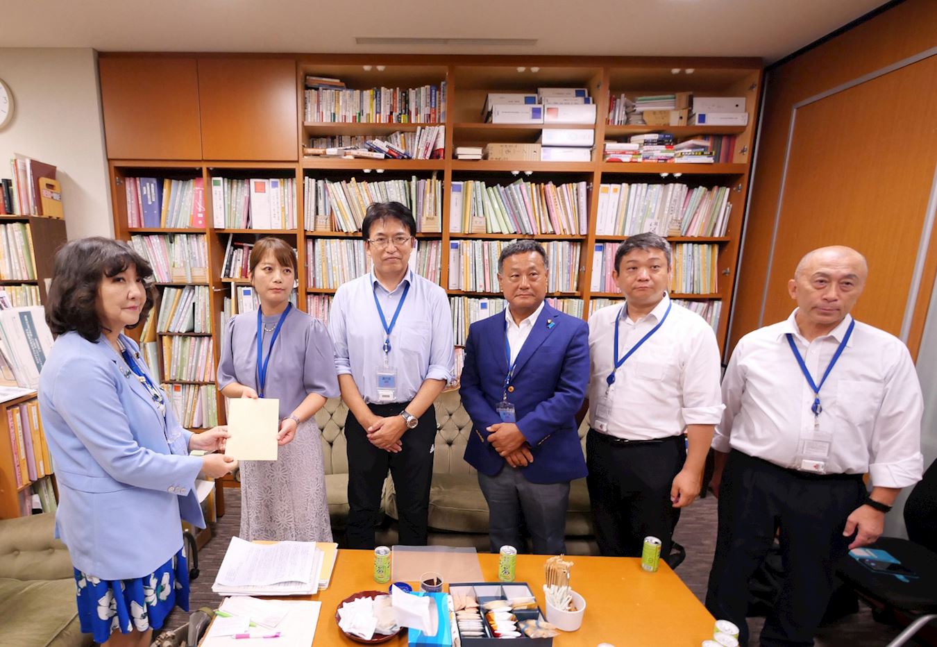 ![]() 图6:片山皐月议员(左一)接受刘希月递交的资料 |