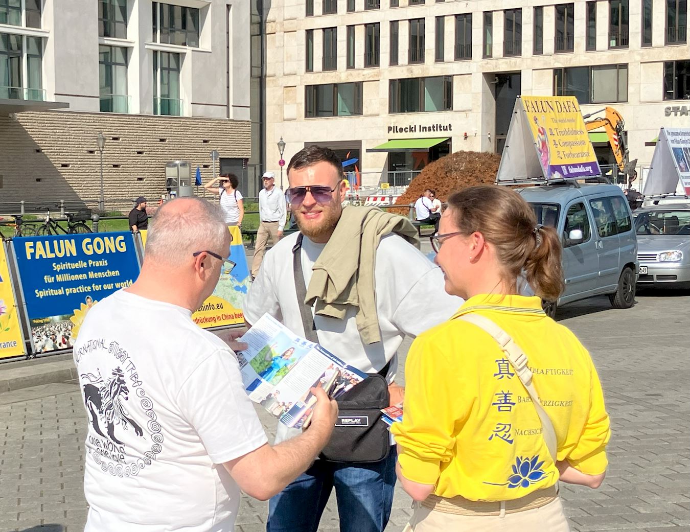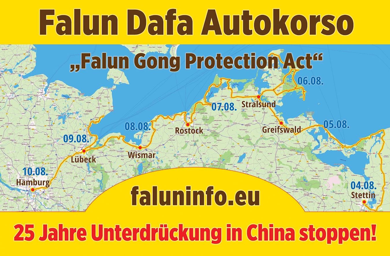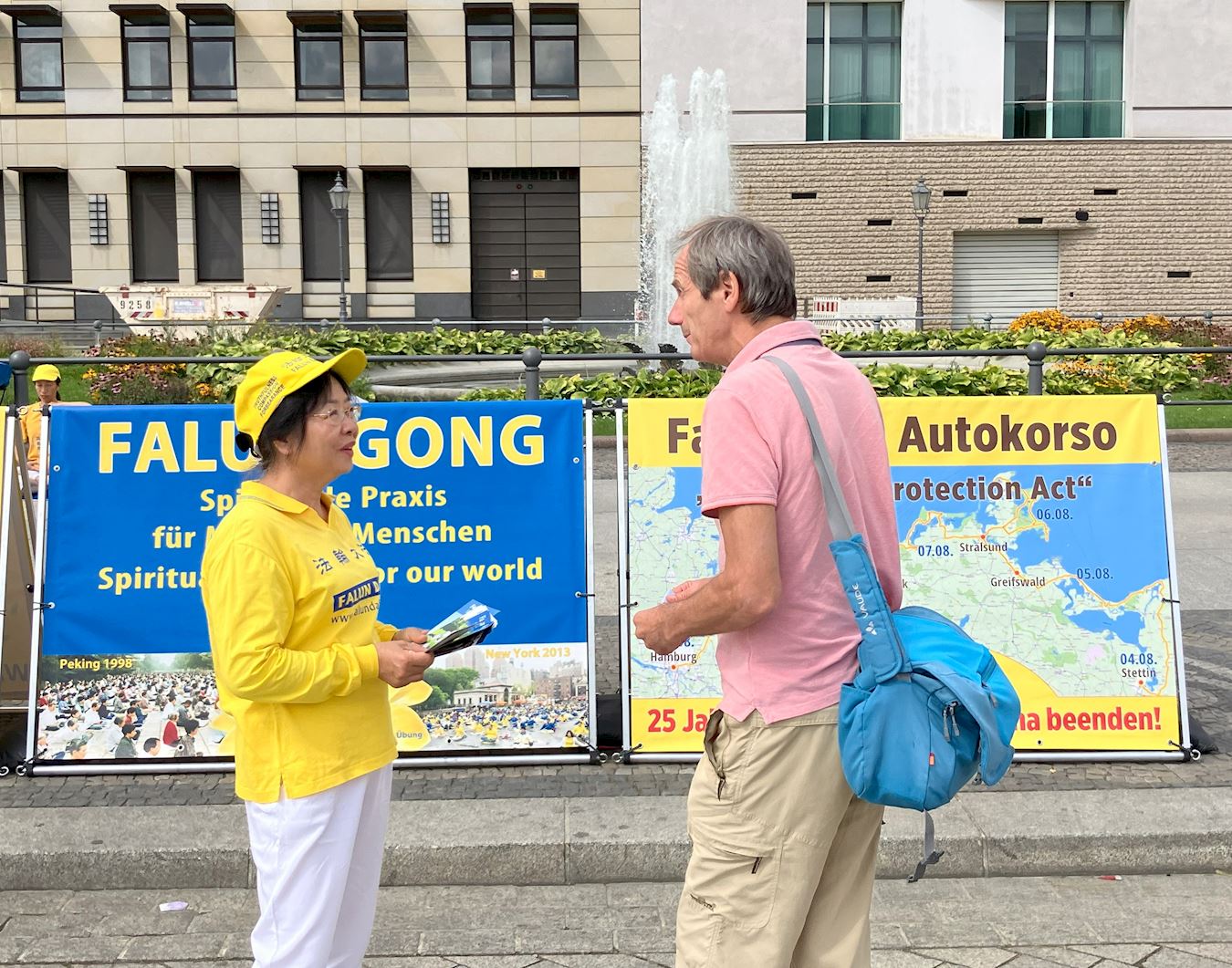 活动当天,部分法轮功学员还在柏林市中心进行了车队游行讲真相活动,吸引了很多柏林城的游客驻足观看和拍照或录影。此次车队游行活动历时近一个星期。车队从柏林出发,途径波兰第七大城市Stettin和波兰其它比邻城市,继而往西行驶途径德国北部毗邻波罗的海的多个沿海城市,最后到达德国知名港口城市汉堡。