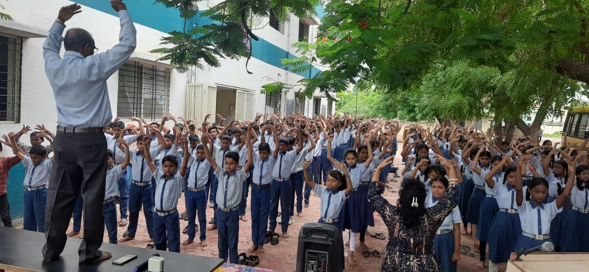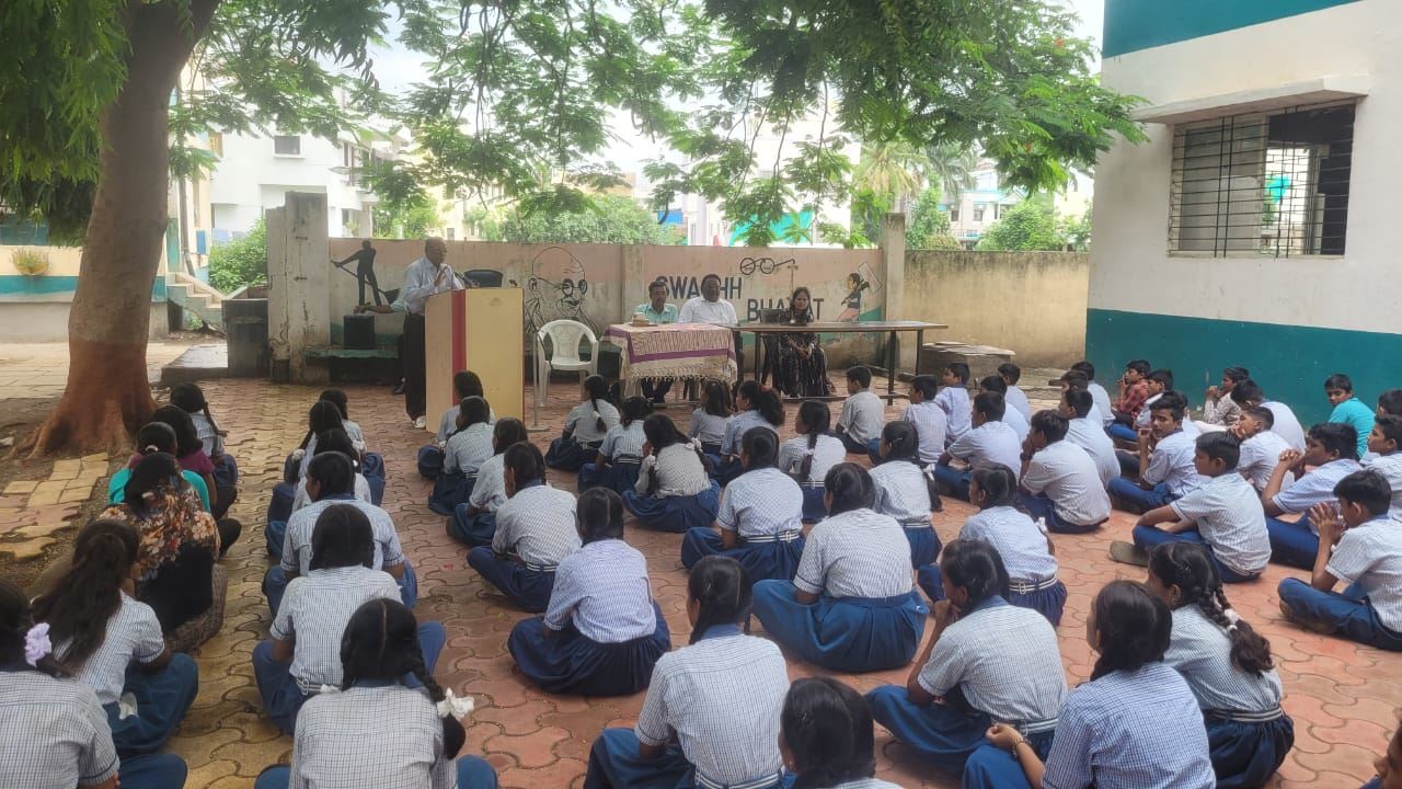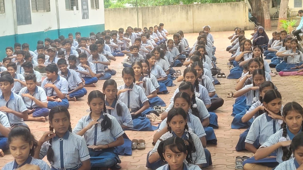八月一日早晨, 法轮功学员访问了位于布尔达纳(Buldhana)的夏尔达·德尼安皮斯学校(Sharda Dnyanpeeth school),校长乌尔卡·安塔卡(Ulka Antarkar)热情接待了法轮功学员,副校长德什潘德(Deshpande)组织了九百名学生和三十名老师列队学功,并听学员讲述了法轮功真相。