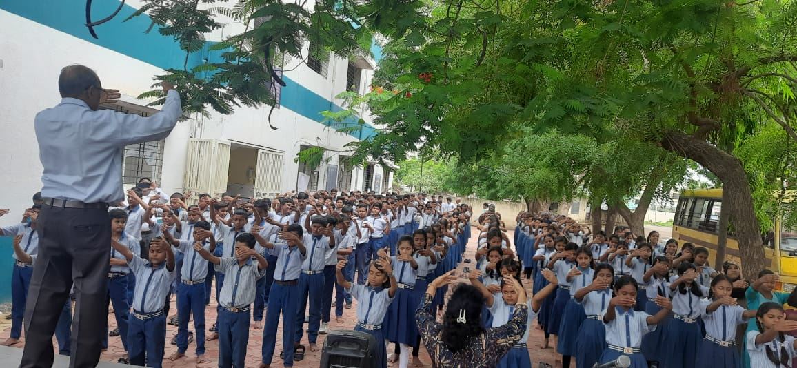 七月三十日上午,学员们来到查里斯冈市(Chalisgaon)的贾欣德中学(Jaihind Secondary and Higher Secondary School)。在此前一天,他们首先联络了校长卡兰(Khalane),向他讲述了法轮功真、善、忍的法理以及中共对法轮功的迫害,校长非常支持学员们,邀请他们第二天就来教功。
