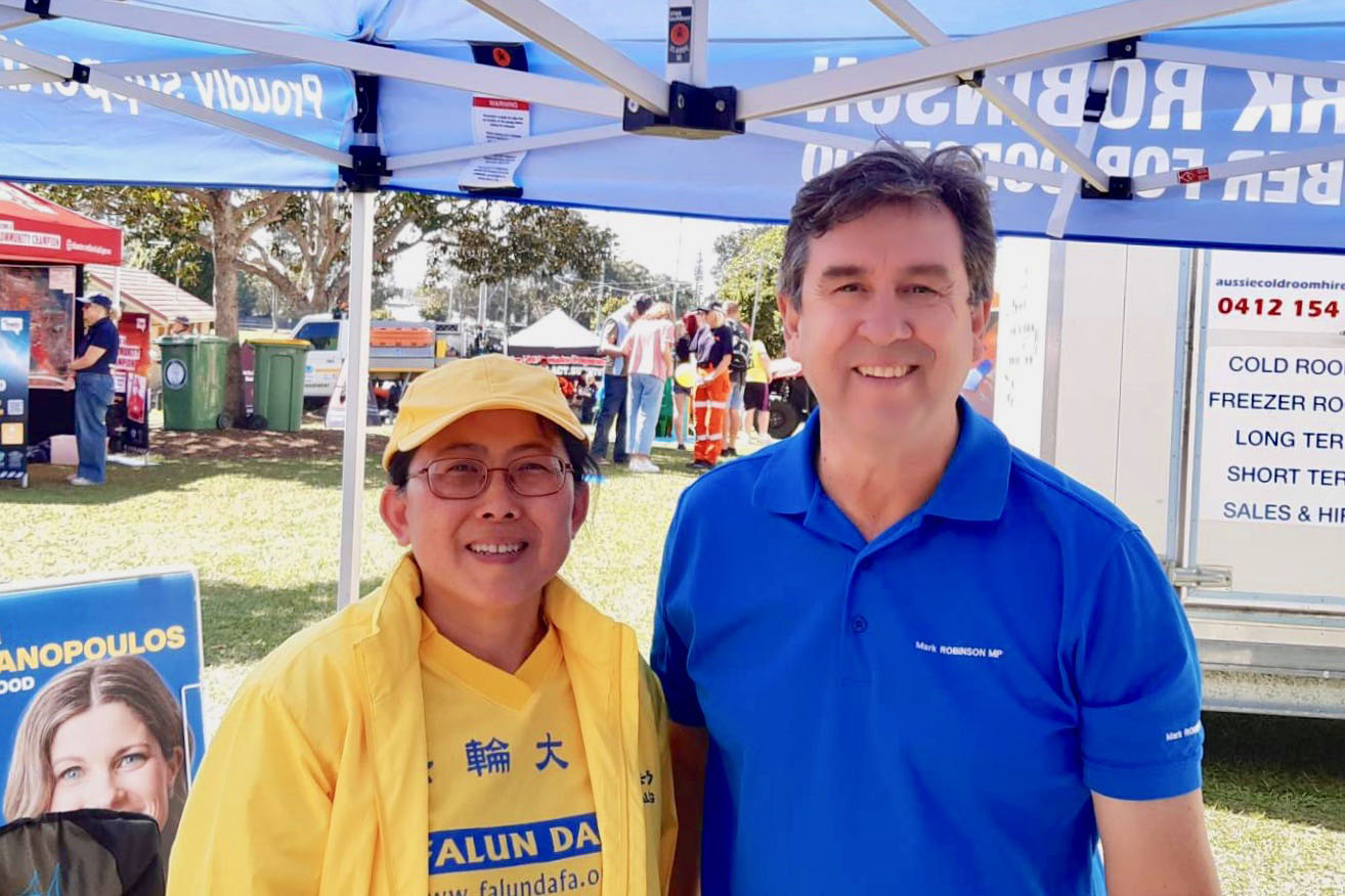 ![]() 图7:昆士兰州议员马克·鲁滨逊(Dr Mark Robinson MP)和法轮功学员合影 |