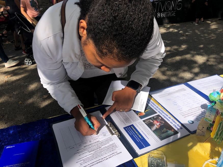 真相信息日 人们签名支持法轮功反迫害