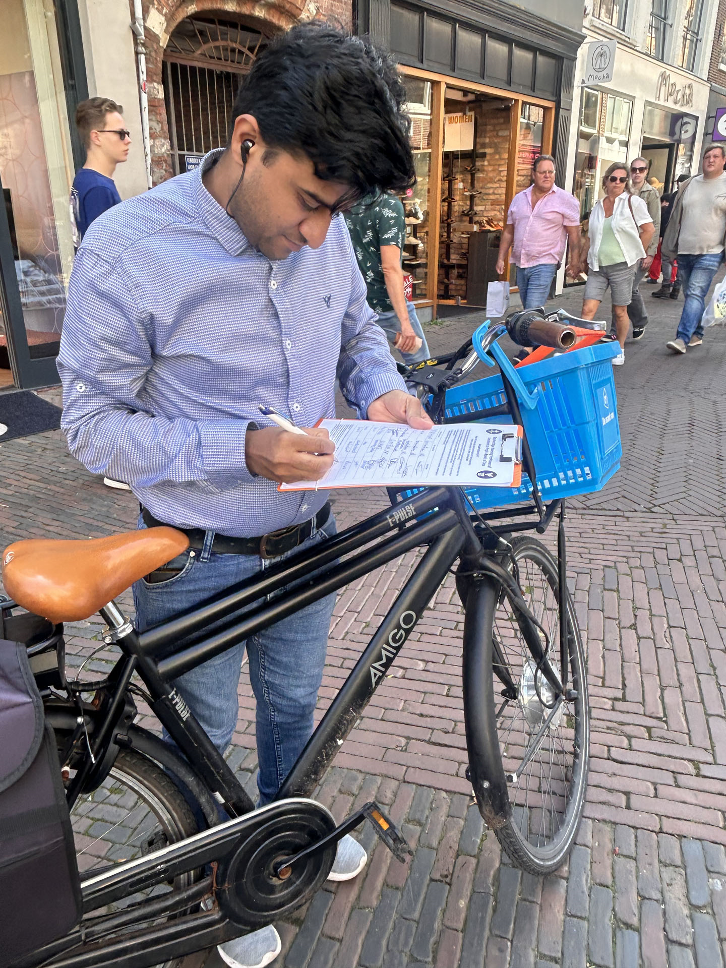 ![]() 图1:八月三十一日,学员们在哈勒姆市中心布置展板,派发传单,征集签名。 |