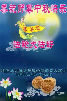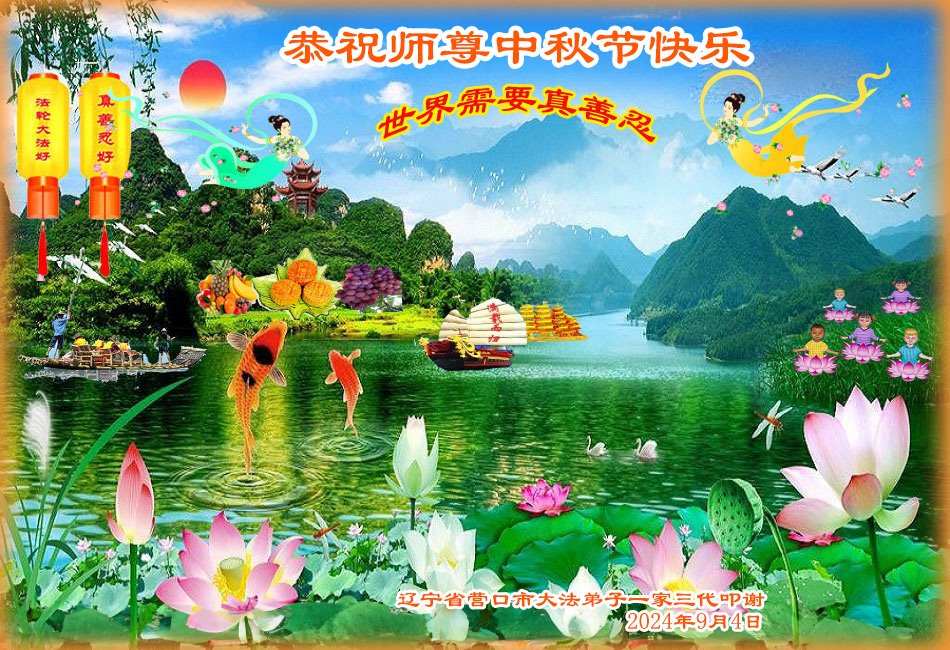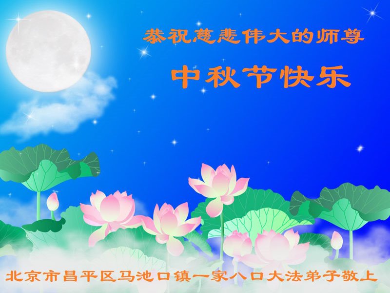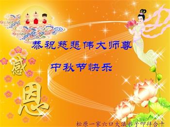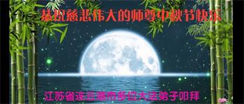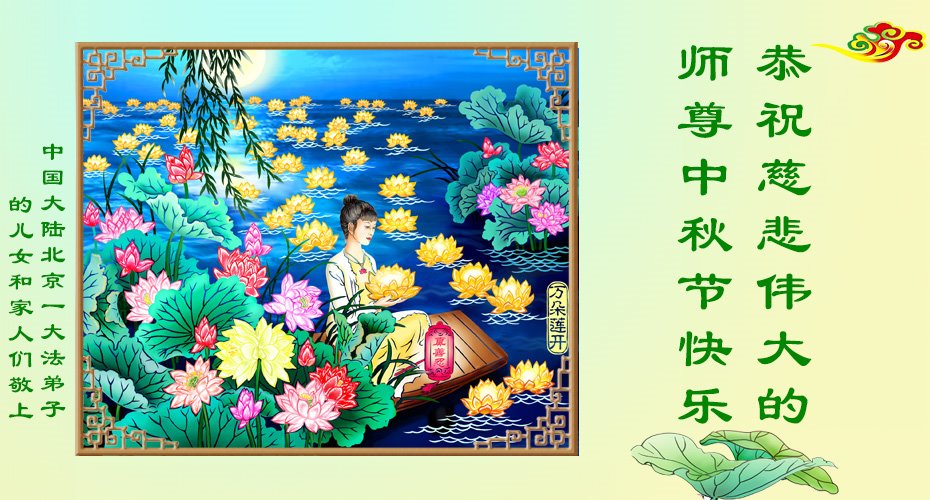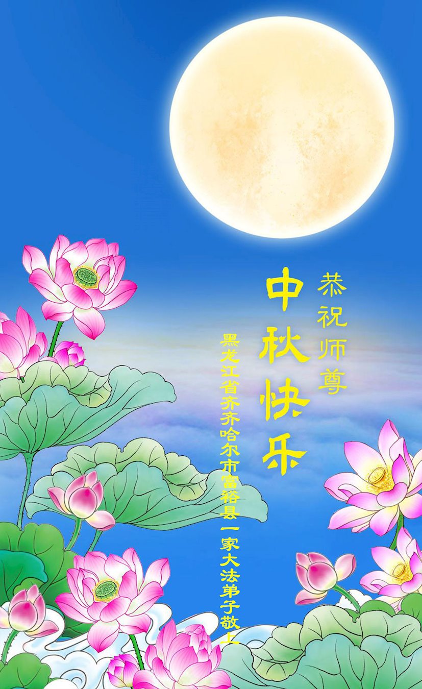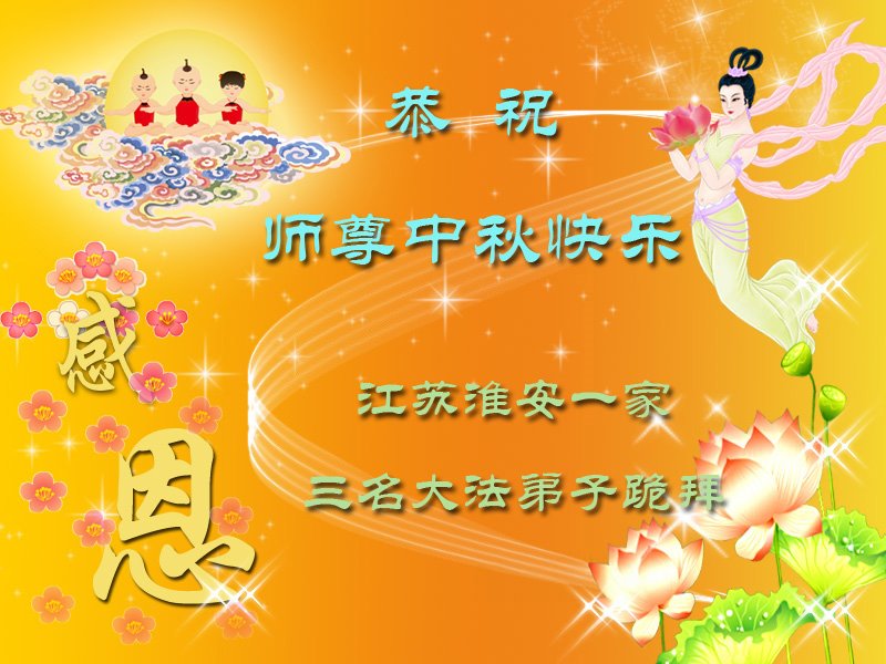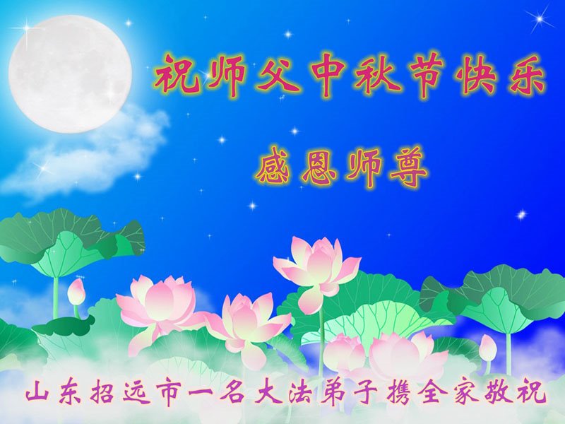大法师父您好!大法师父辛苦了!谢谢大法师父!我们全家恭祝慈悲伟大的大法师父中秋节快乐!法轮大法好!真善忍好!我们也会按照真、善、忍去做。