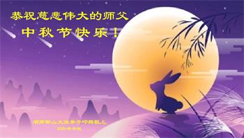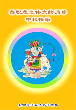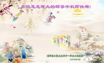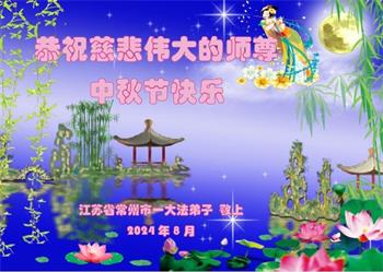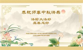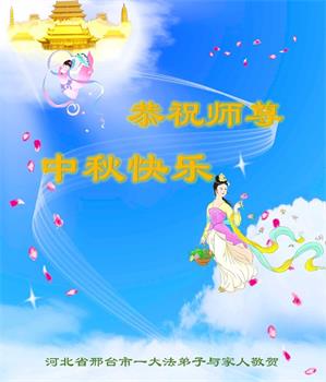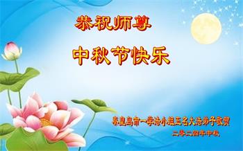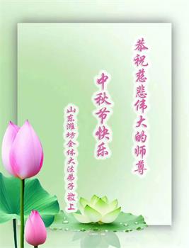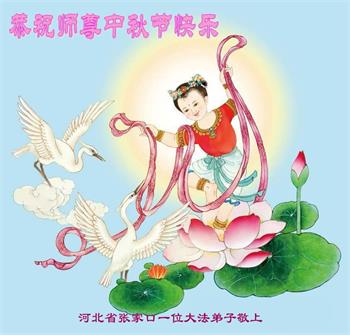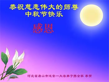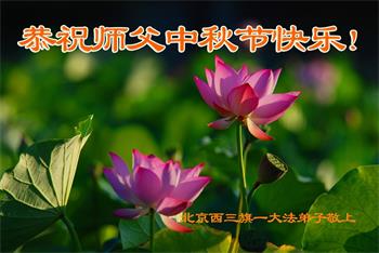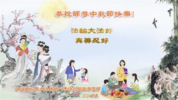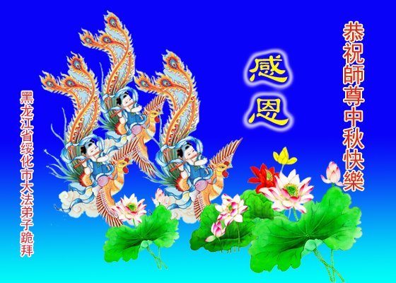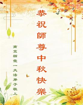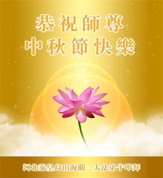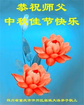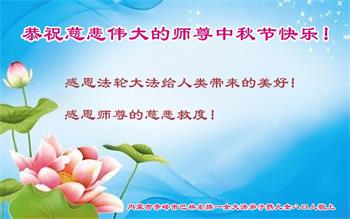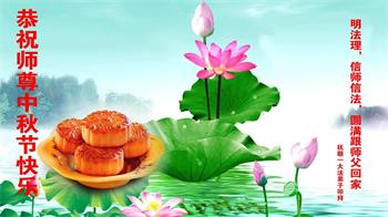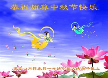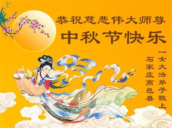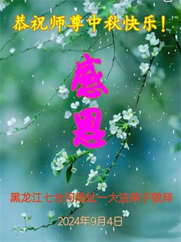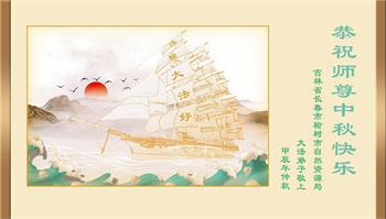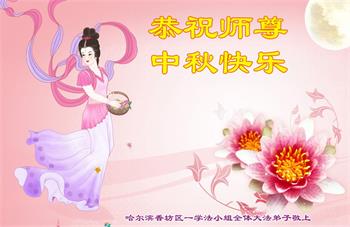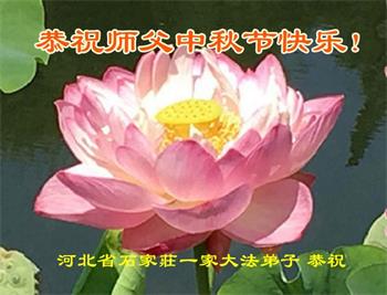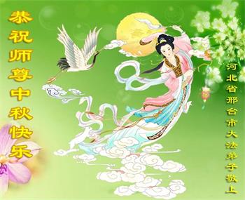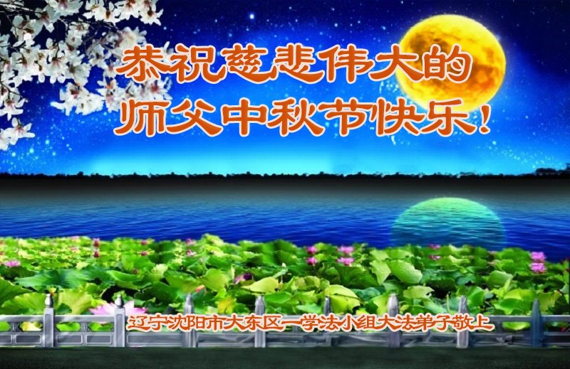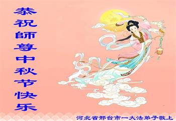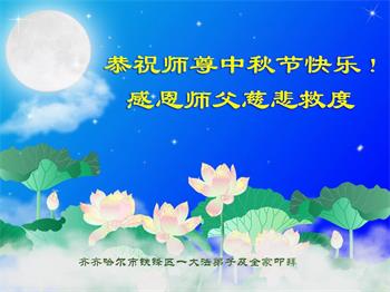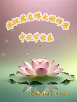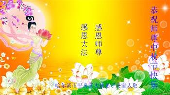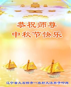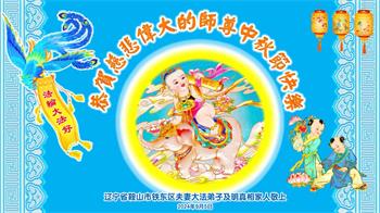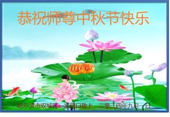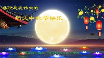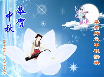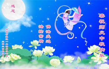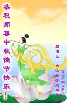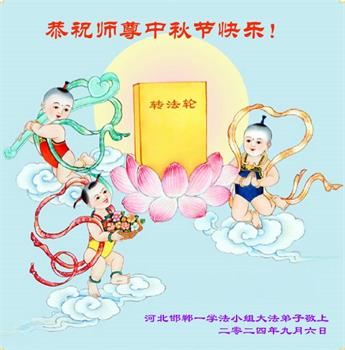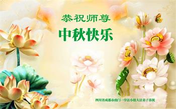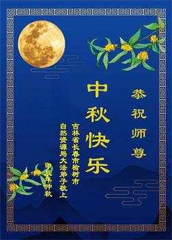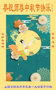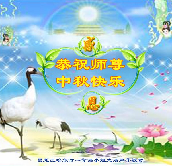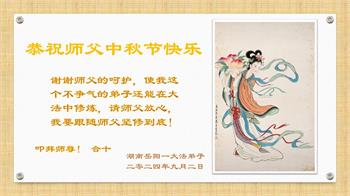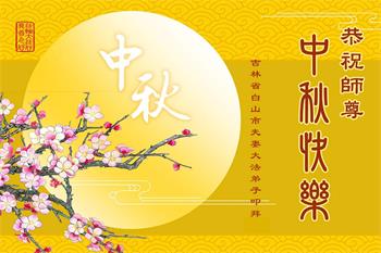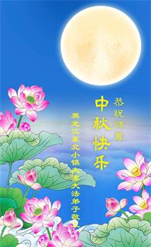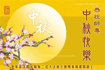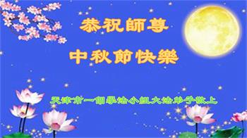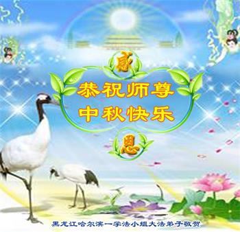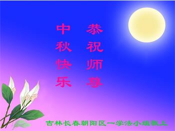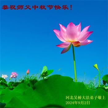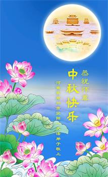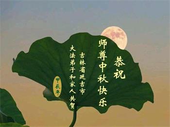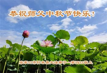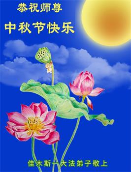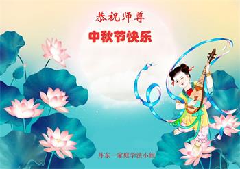 师父您好,我是新得法的学员。来到阿姨家有幸得遇大法,我的心情特别激动,我太幸运了。我跟阿姨一起学法、一起炼功、一起出去讲真相救人,大法太好了。中秋佳节到了,在此恭祝师父中秋节快乐!