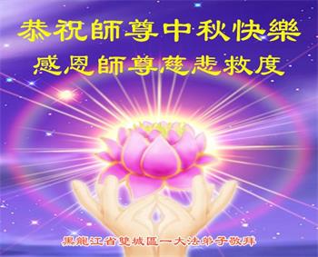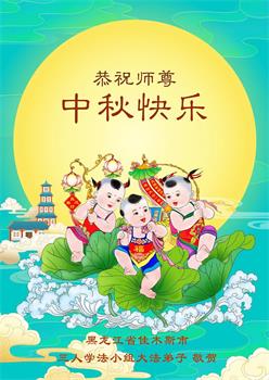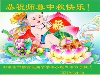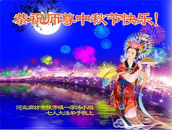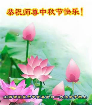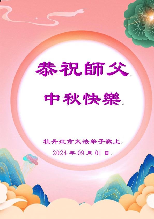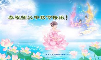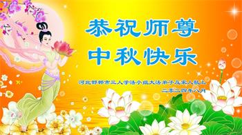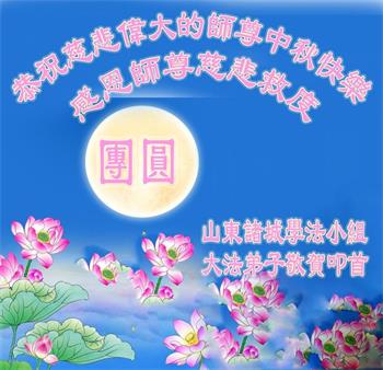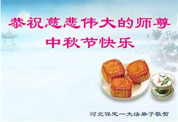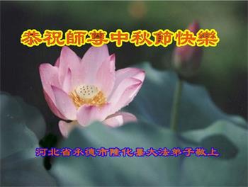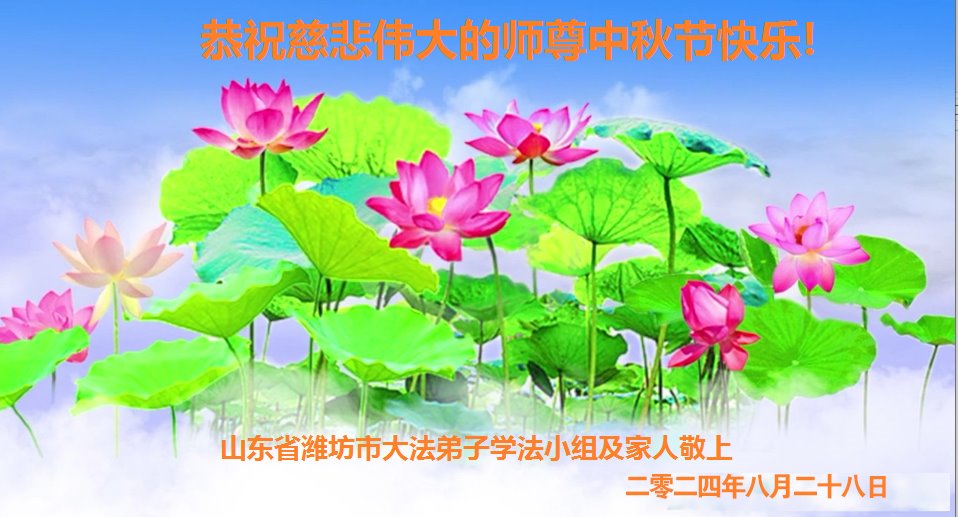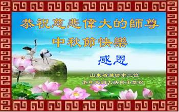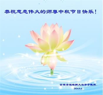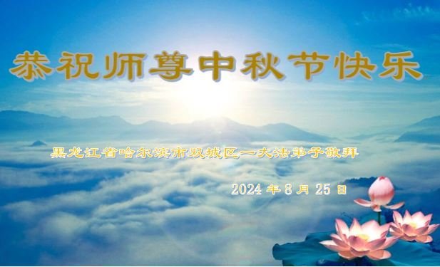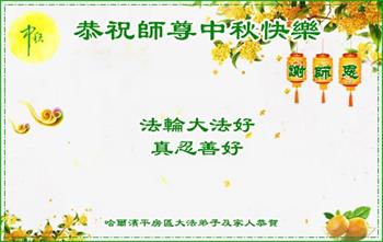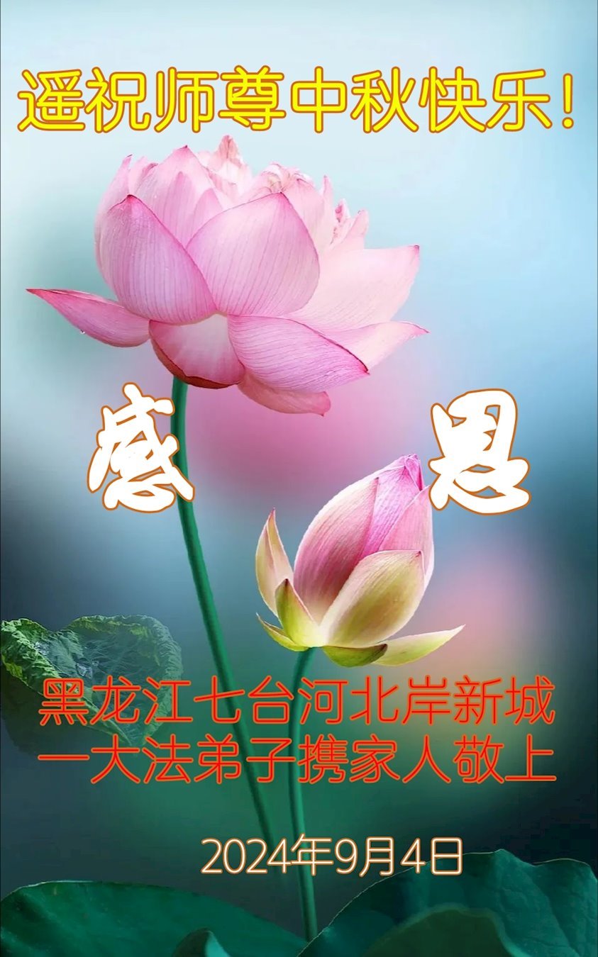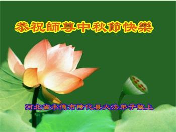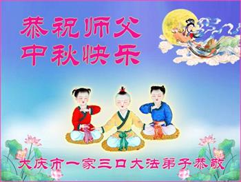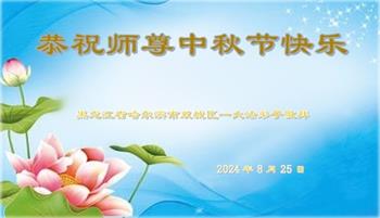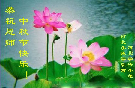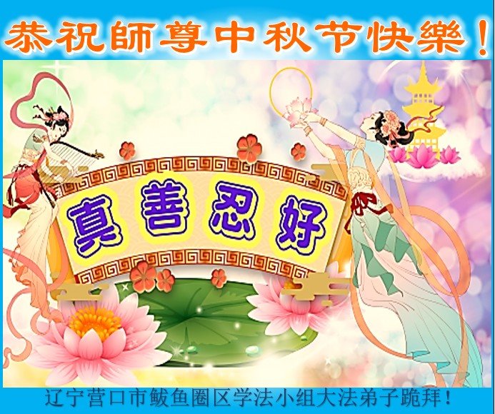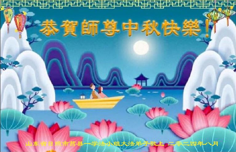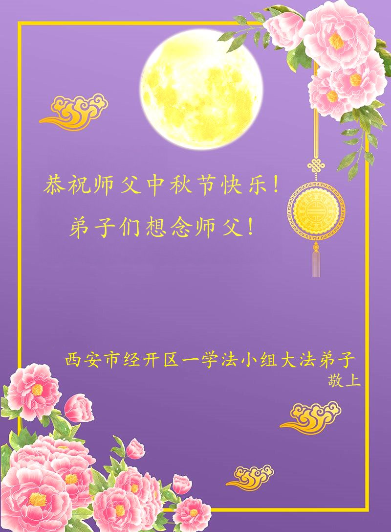 师父您好,我是新得法的学员。来到阿姨家有幸得遇大法,我的心情特别激动,我太幸运了。我跟阿姨一起学法、一起炼功、一起出去讲真相救人,大法太好了。中秋佳节到了,在此恭祝师父中秋节快乐!