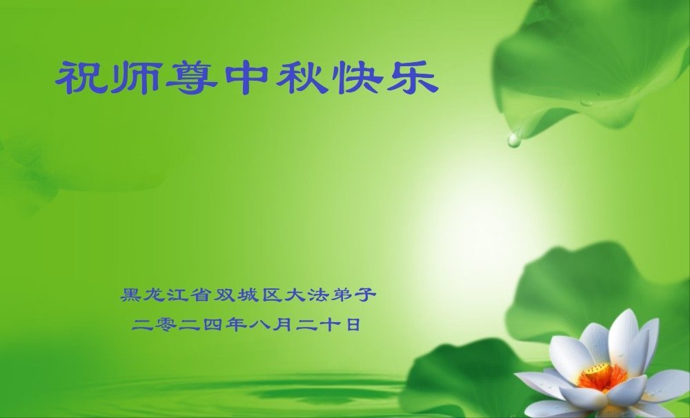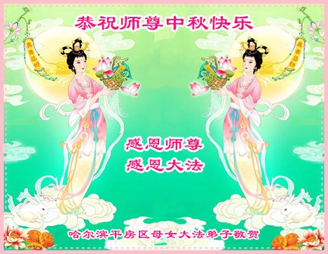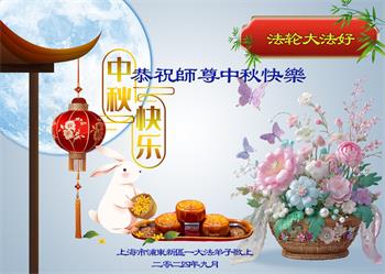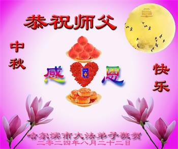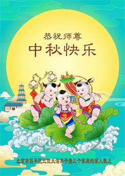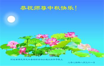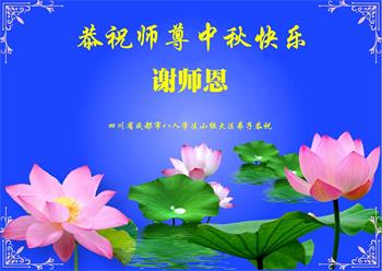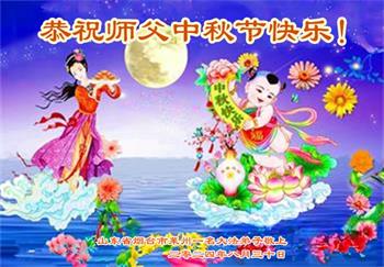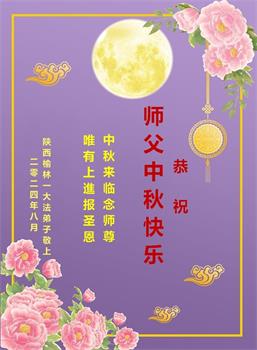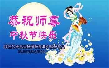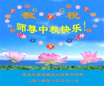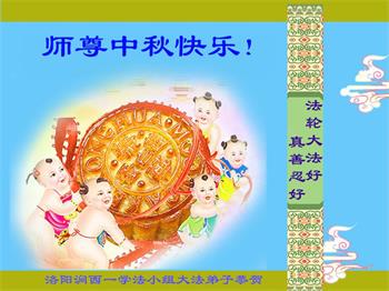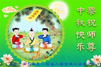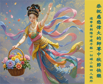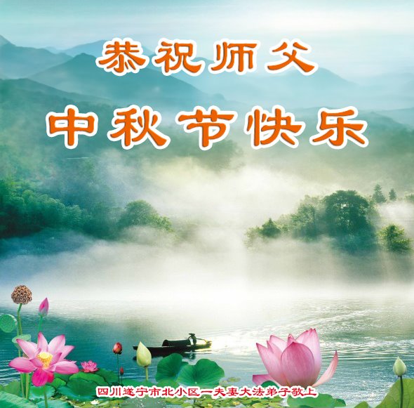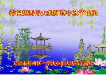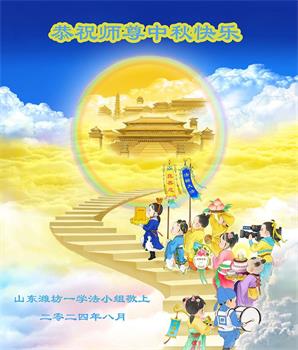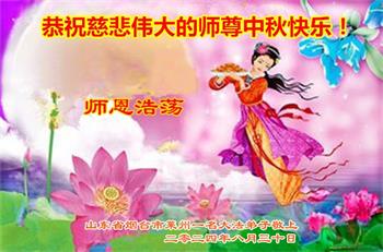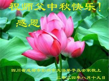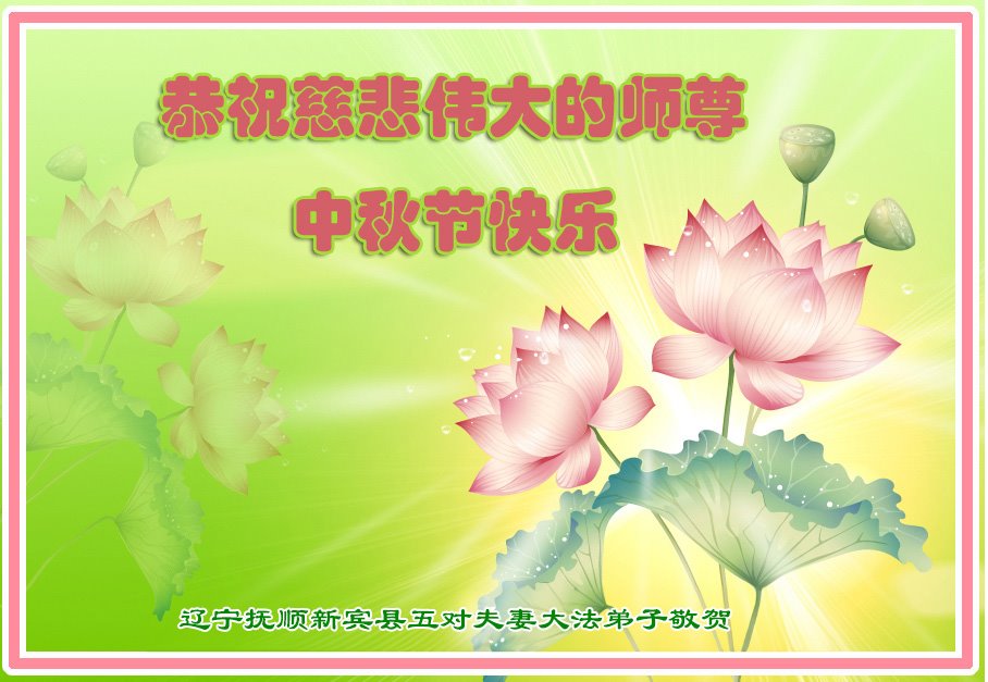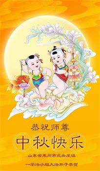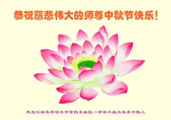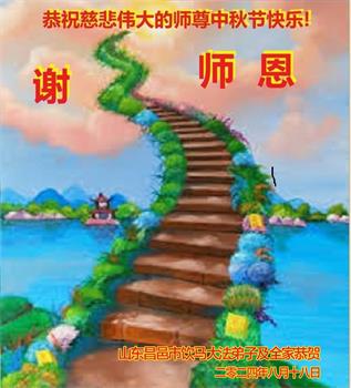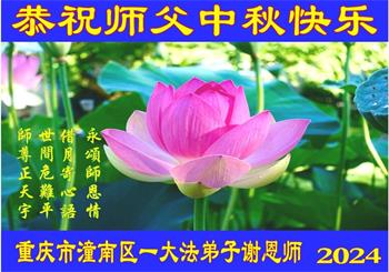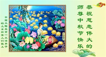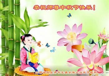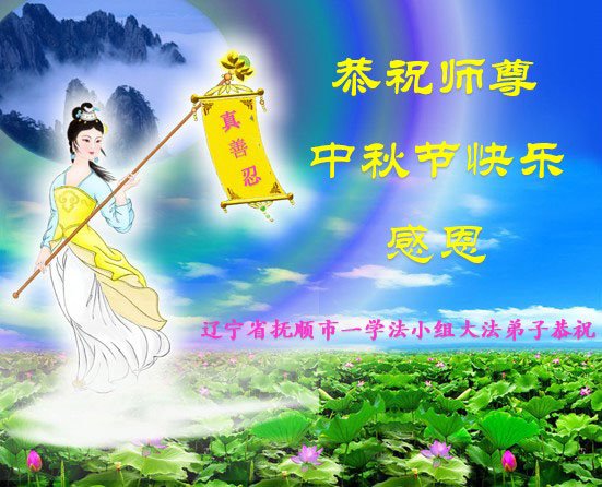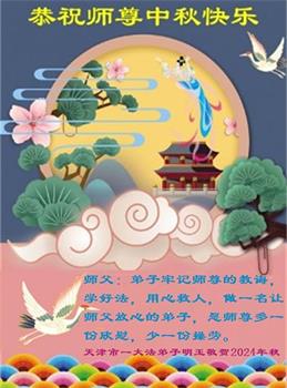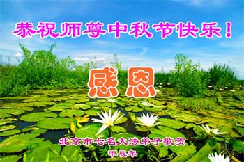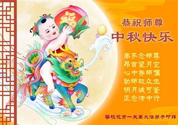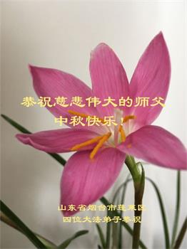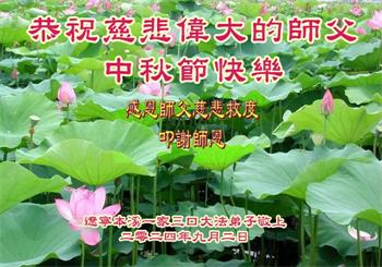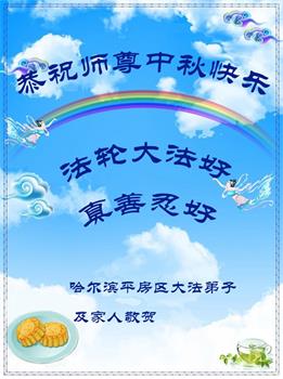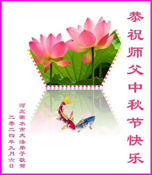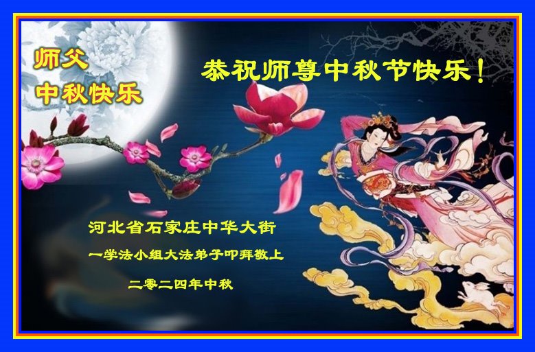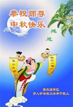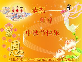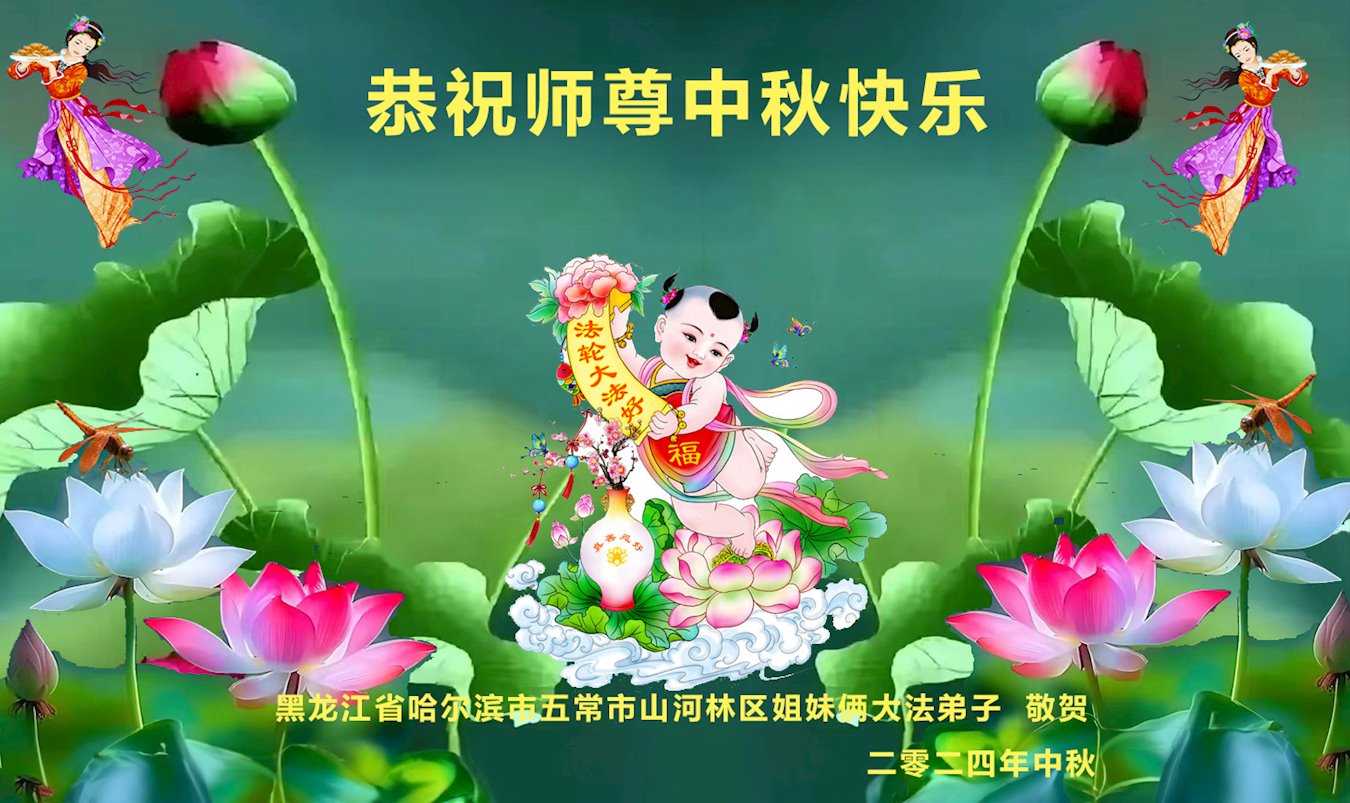 师父您好,我是新得法的学员。来到阿姨家有幸得遇大法,我的心情特别激动,我太幸运了。我跟阿姨一起学法、一起炼功、一起出去讲真相救人,大法太好了。中秋佳节到了,在此恭祝师父中秋节快乐!