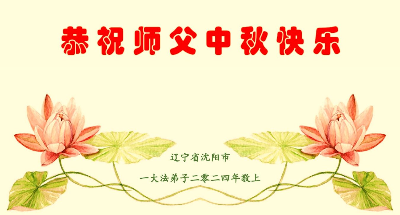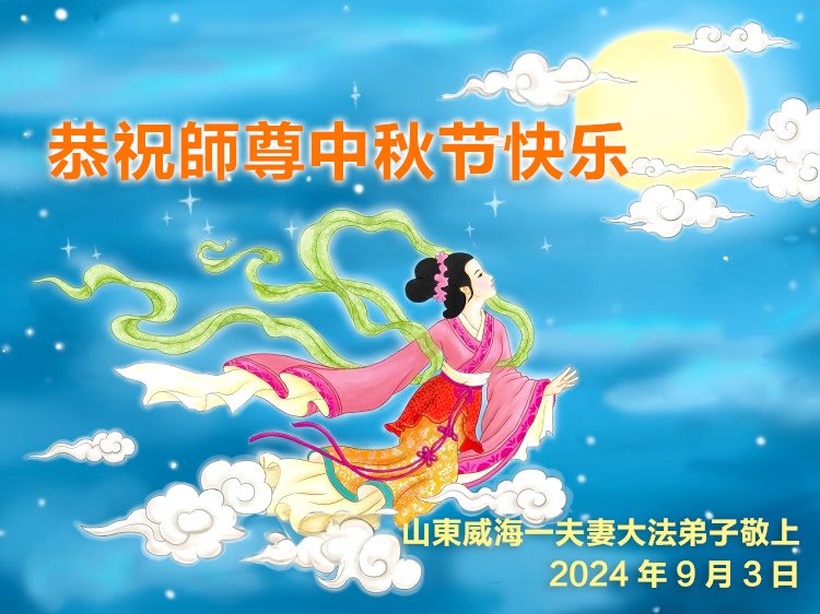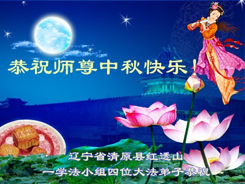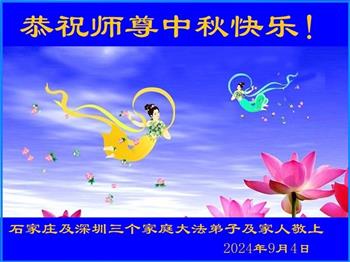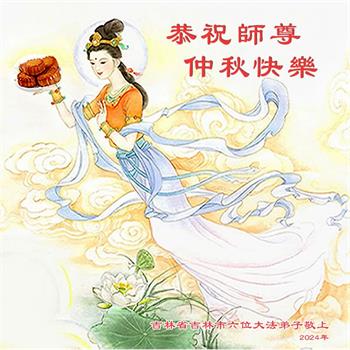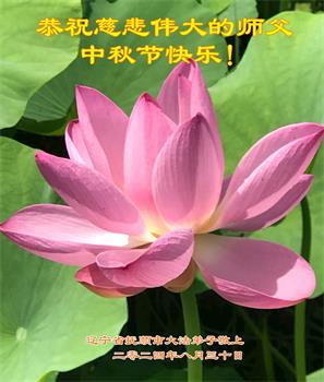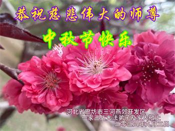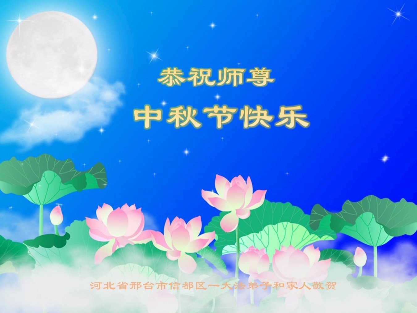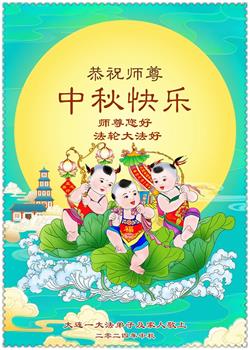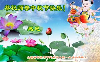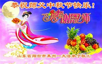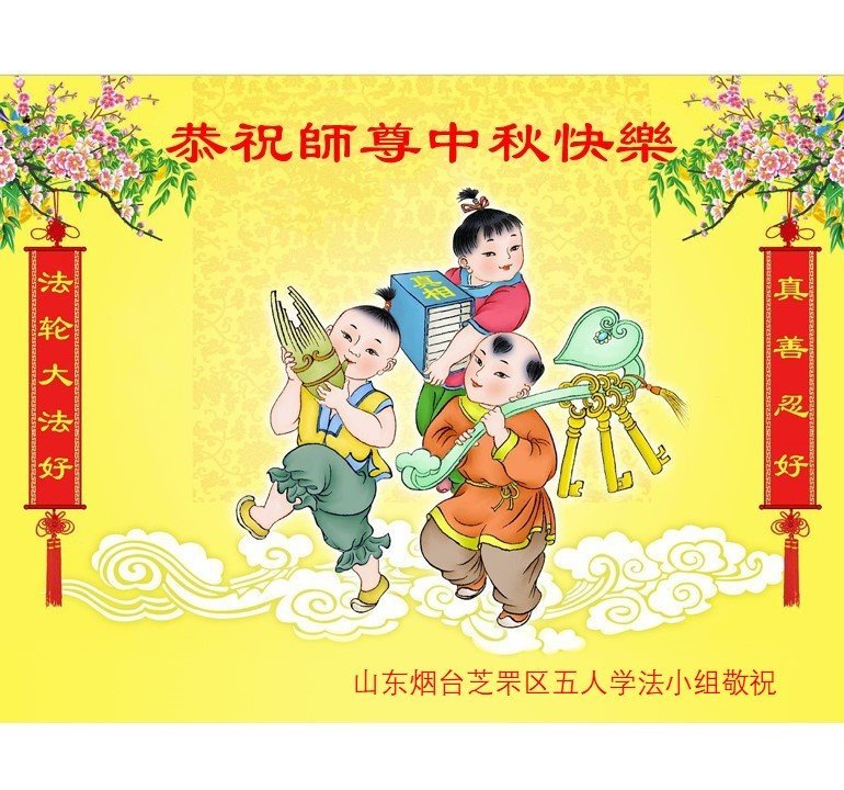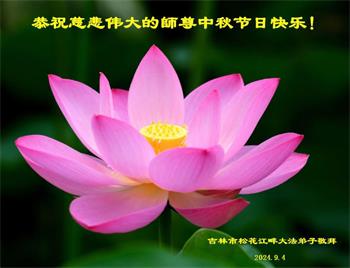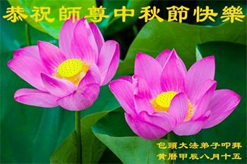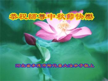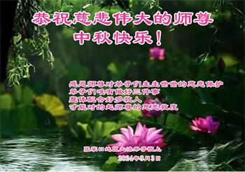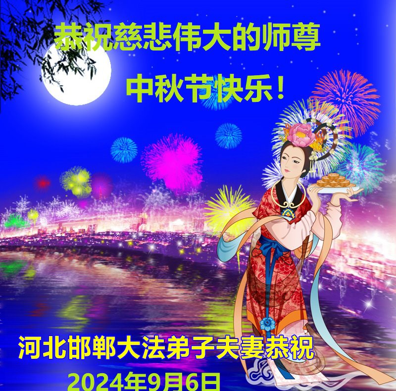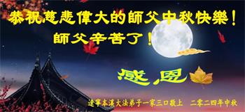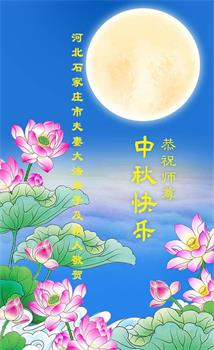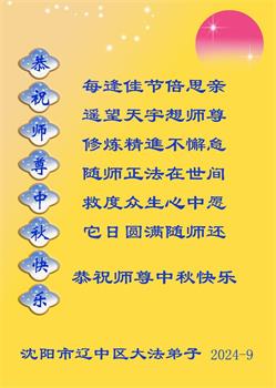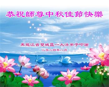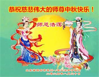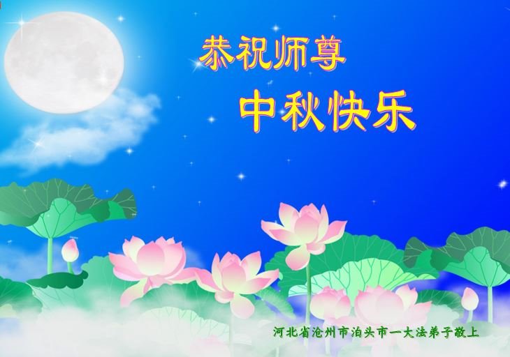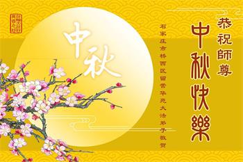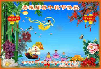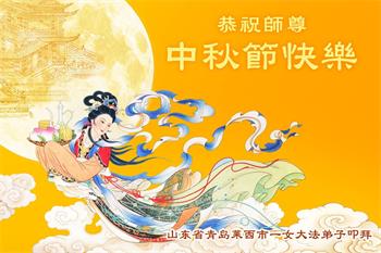 师父您好,我是新得法的学员。来到阿姨家有幸得遇大法,我的心情特别激动,我太幸运了。我跟阿姨一起学法、一起炼功、一起出去讲真相救人,大法太好了。中秋佳节到了,在此恭祝师父中秋节快乐!