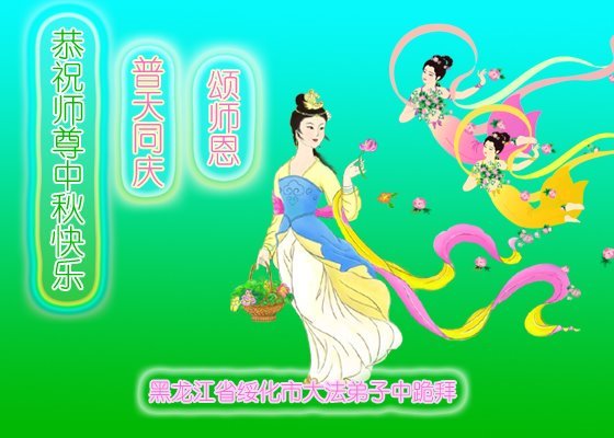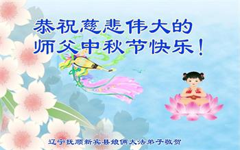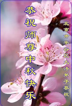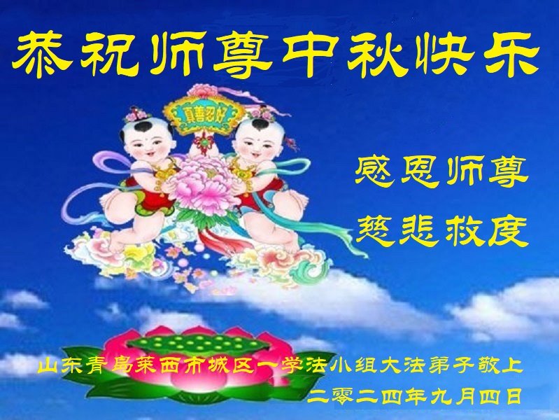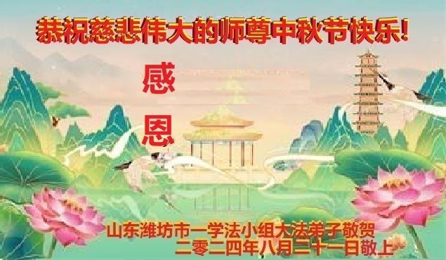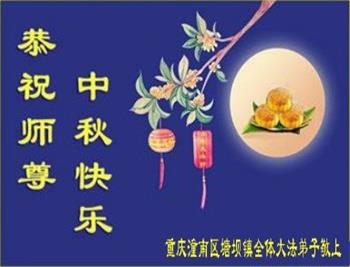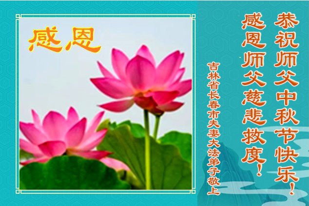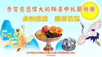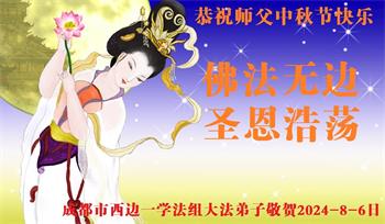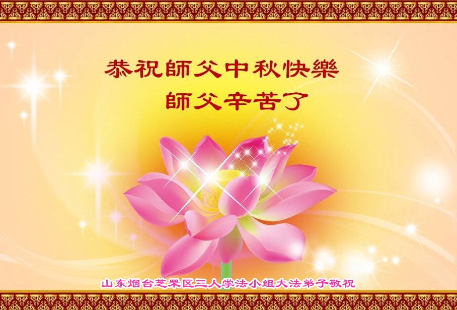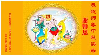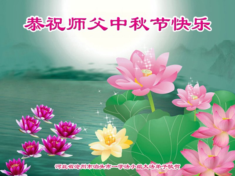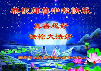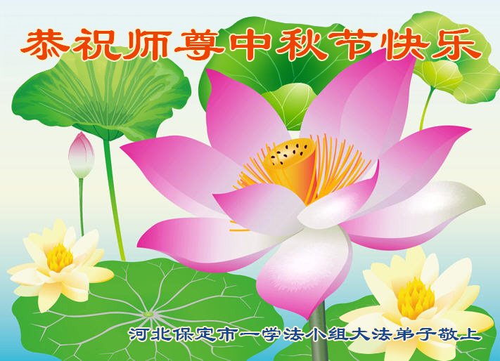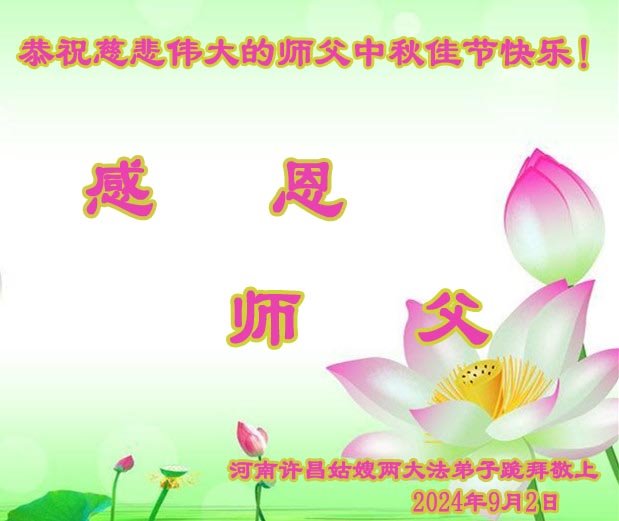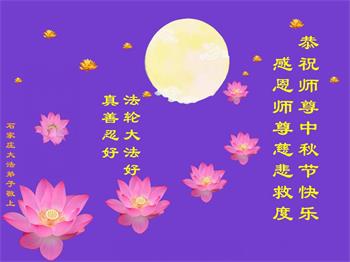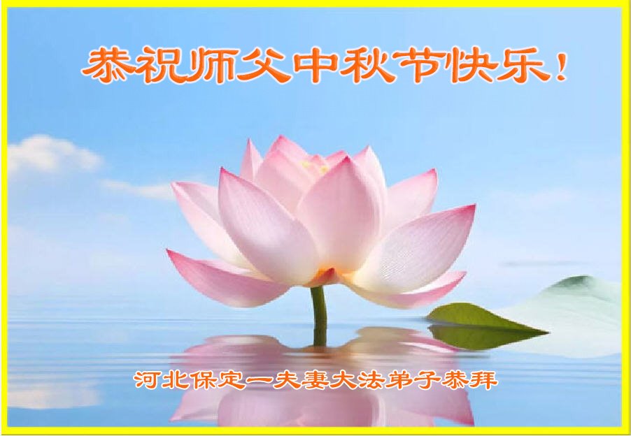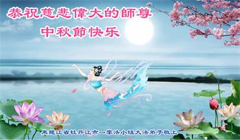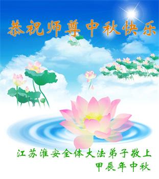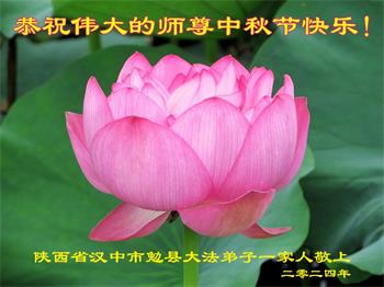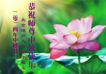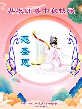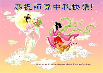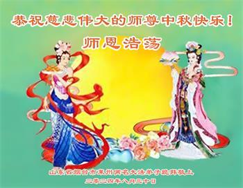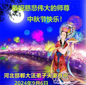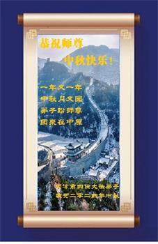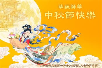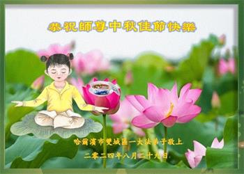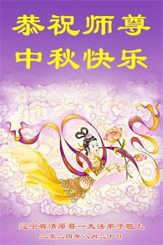 师父您好,我是新得法的学员。来到阿姨家有幸得遇大法,我的心情特别激动,我太幸运了。我跟阿姨一起学法、一起炼功、一起出去讲真相救人,大法太好了。中秋佳节到了,在此恭祝师父中秋节快乐!