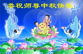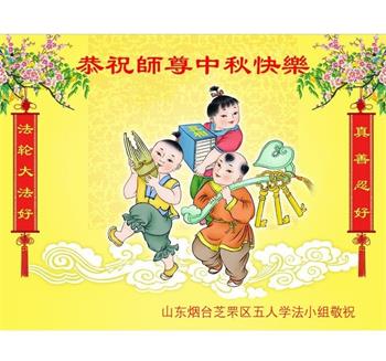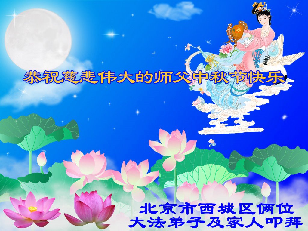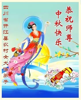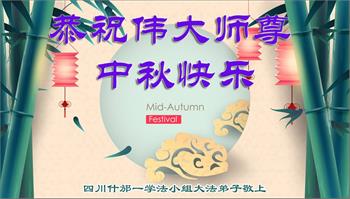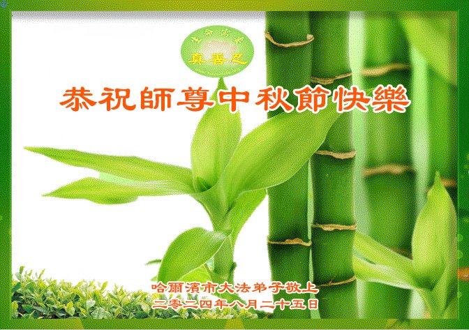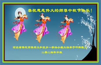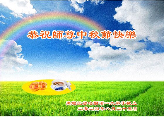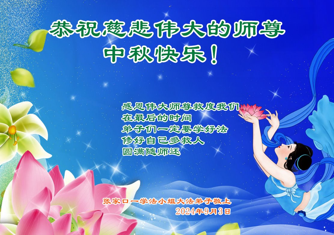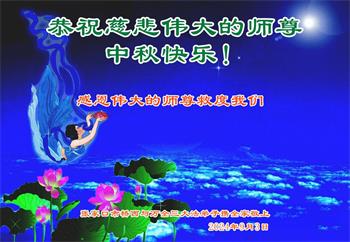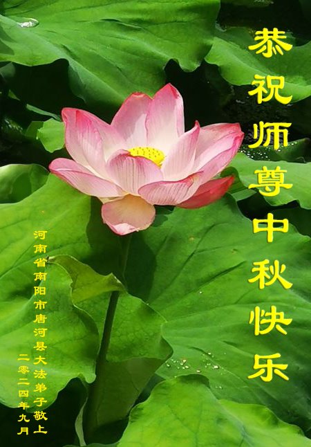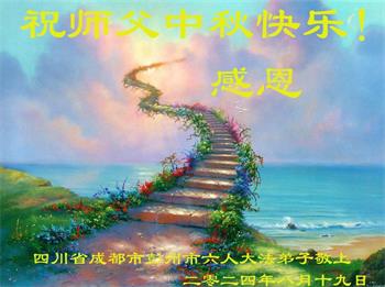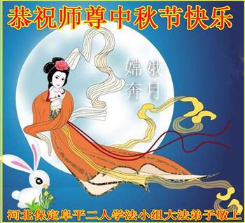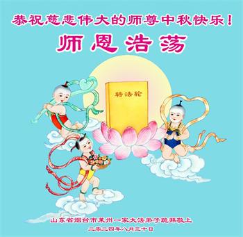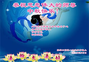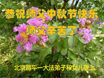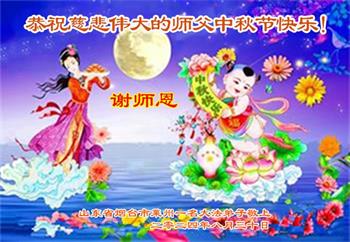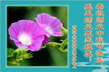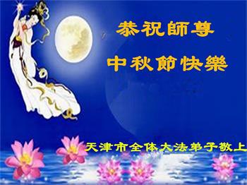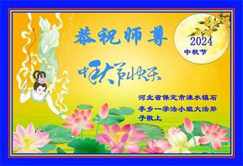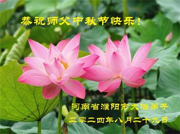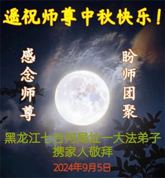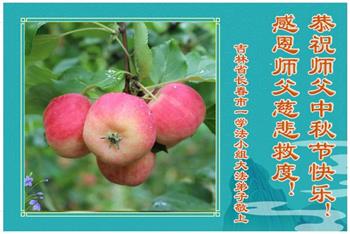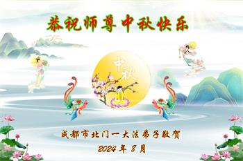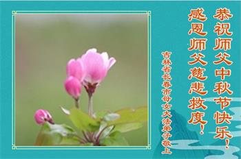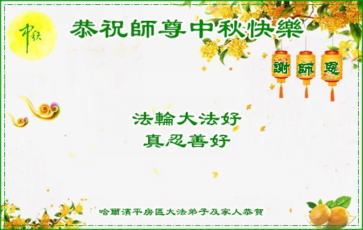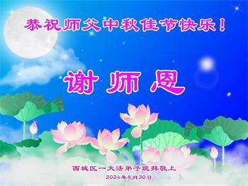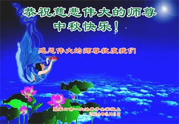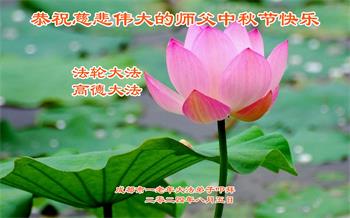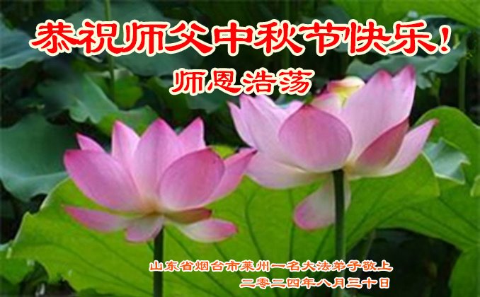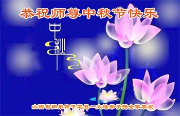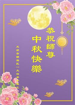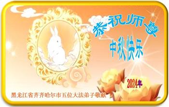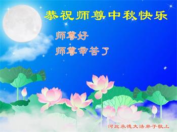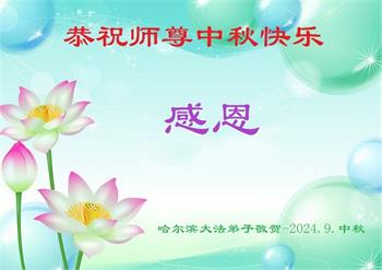 师父您好,我是新得法的学员。来到阿姨家有幸得遇大法,我的心情特别激动,我太幸运了。我跟阿姨一起学法、一起炼功、一起出去讲真相救人,大法太好了。中秋佳节到了,在此恭祝师父中秋节快乐!