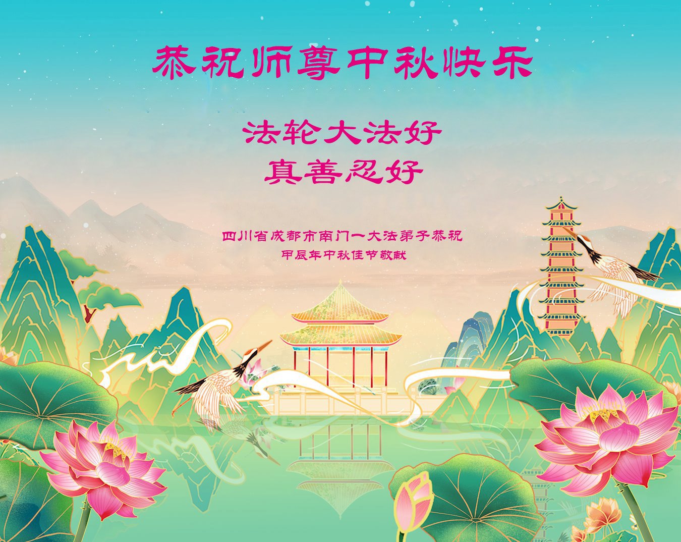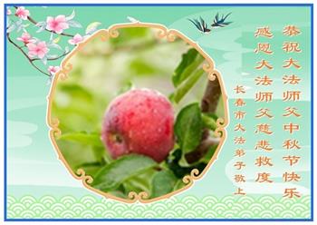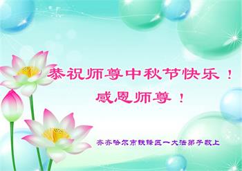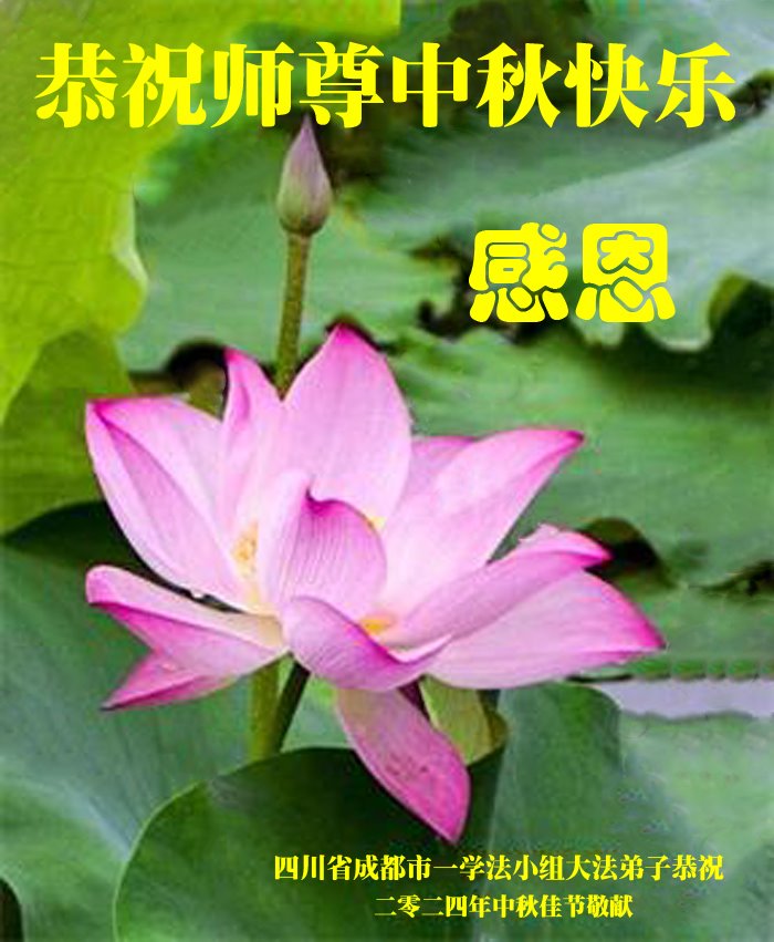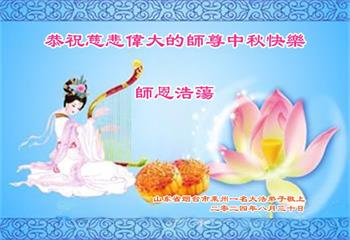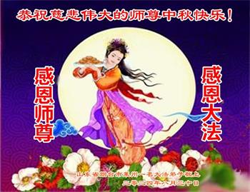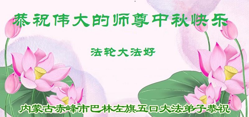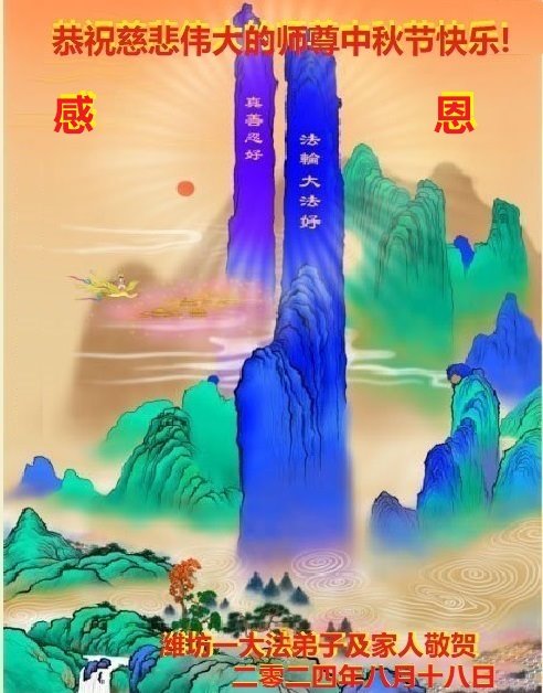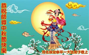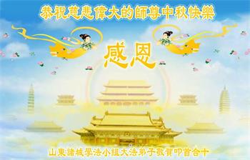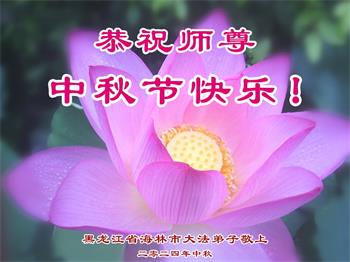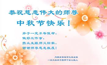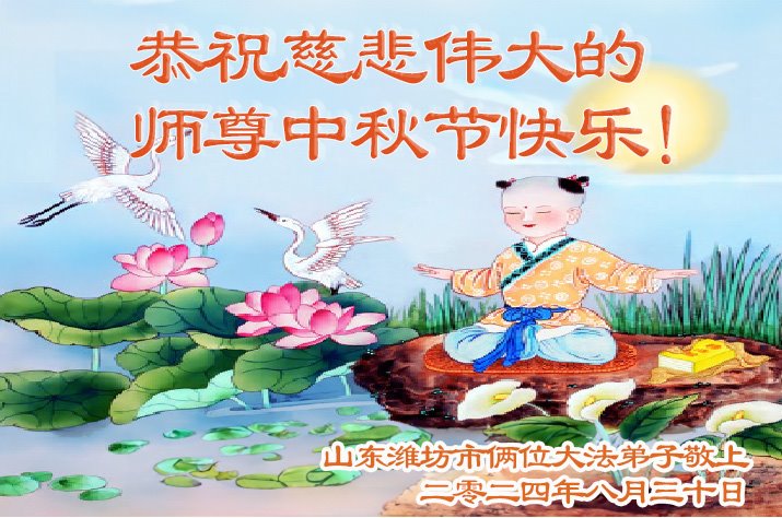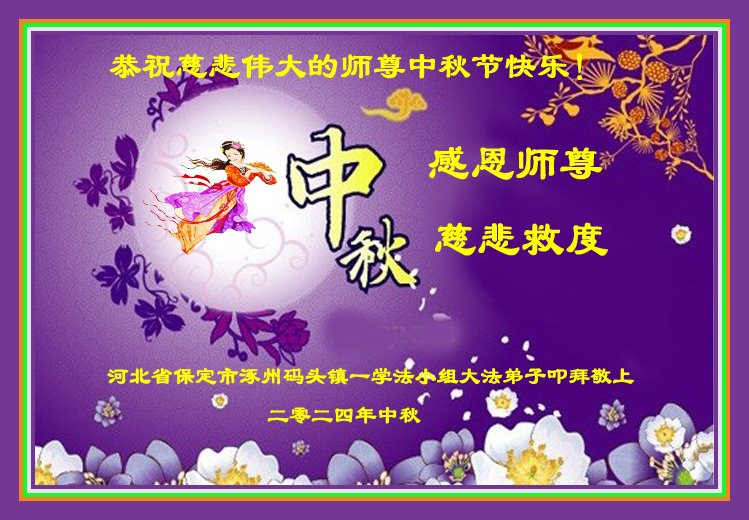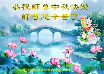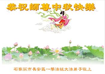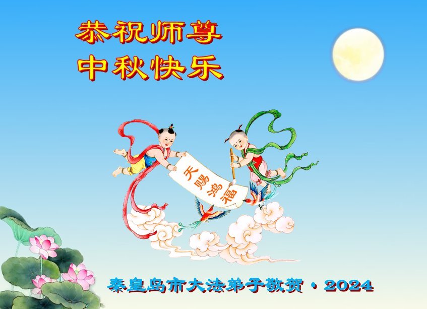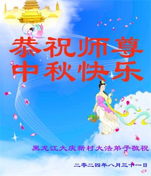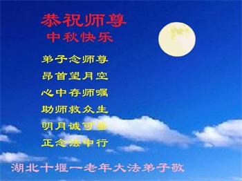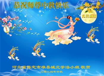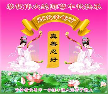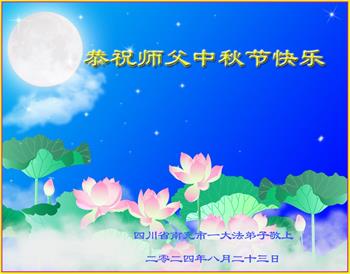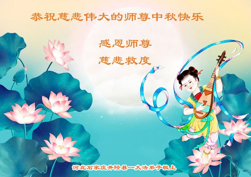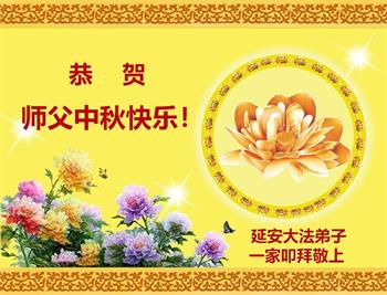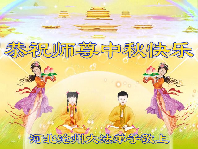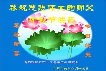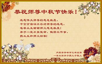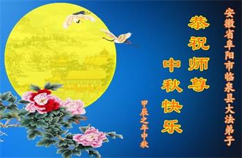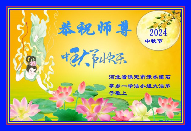 师父您好,我是新得法的学员。来到阿姨家有幸得遇大法,我的心情特别激动,我太幸运了。我跟阿姨一起学法、一起炼功、一起出去讲真相救人,大法太好了。中秋佳节到了,在此恭祝师父中秋节快乐!