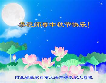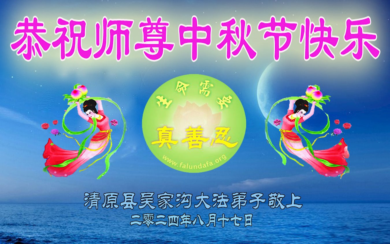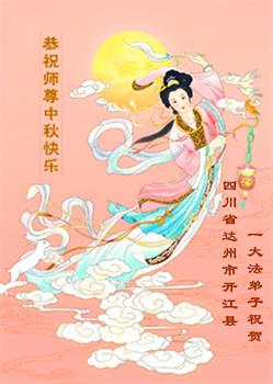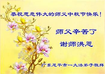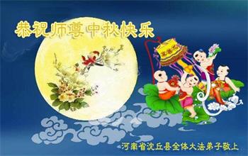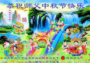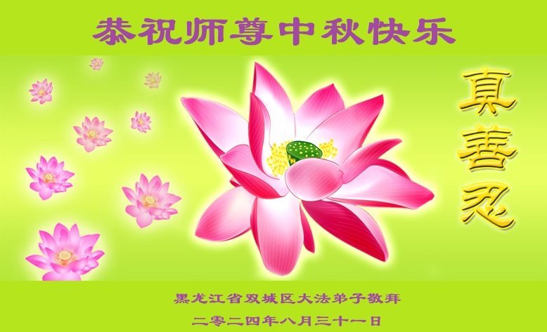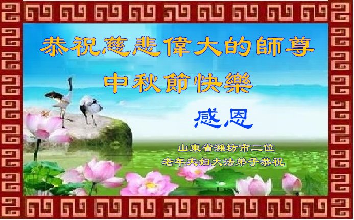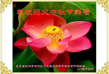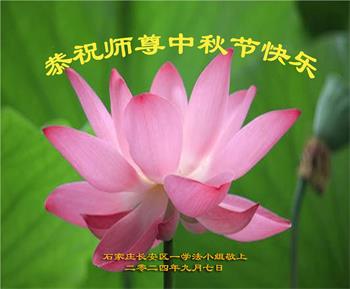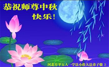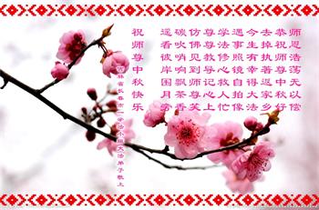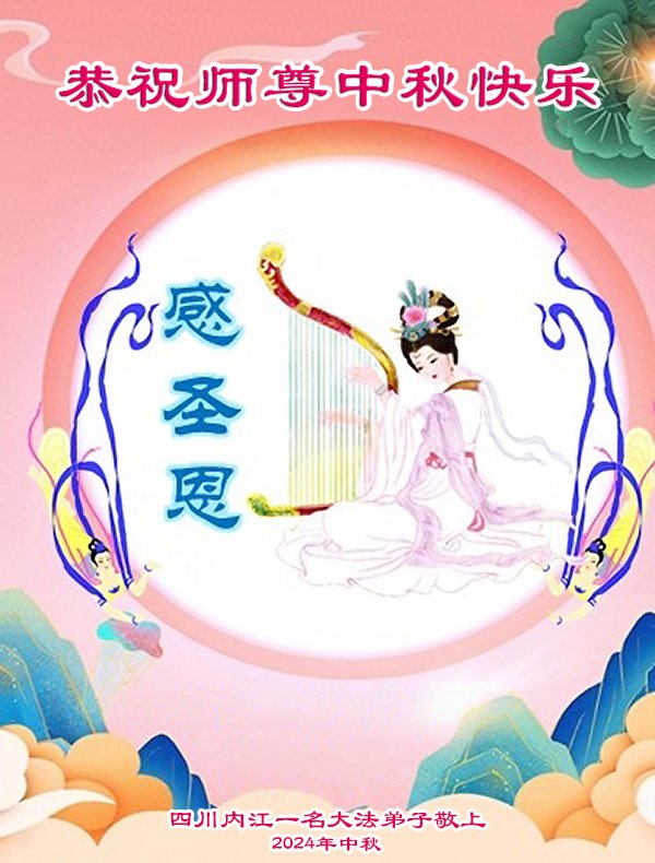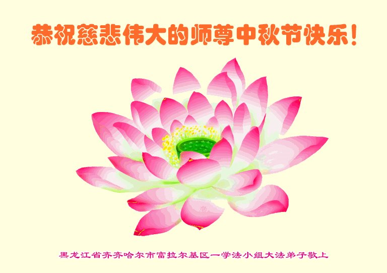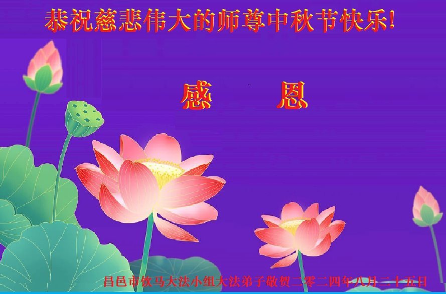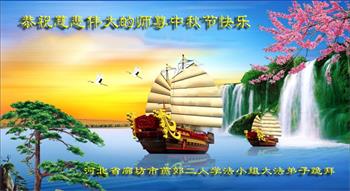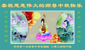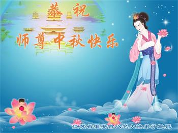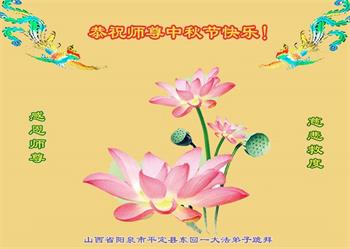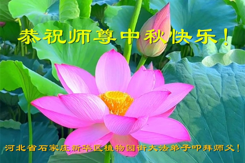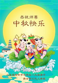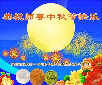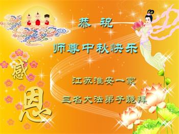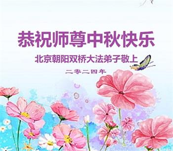 师父您好,我是新得法的学员。来到阿姨家有幸得遇大法,我的心情特别激动,我太幸运了。我跟阿姨一起学法、一起炼功、一起出去讲真相救人,大法太好了。中秋佳节到了,在此恭祝师父中秋节快乐!