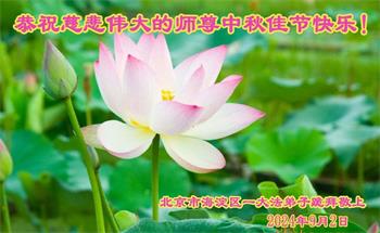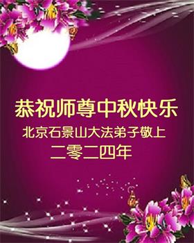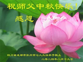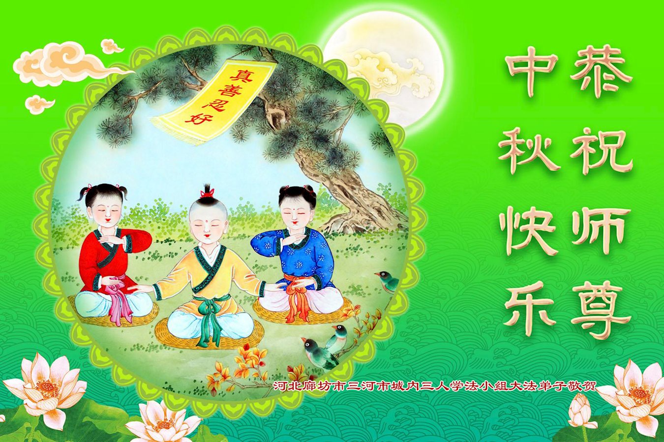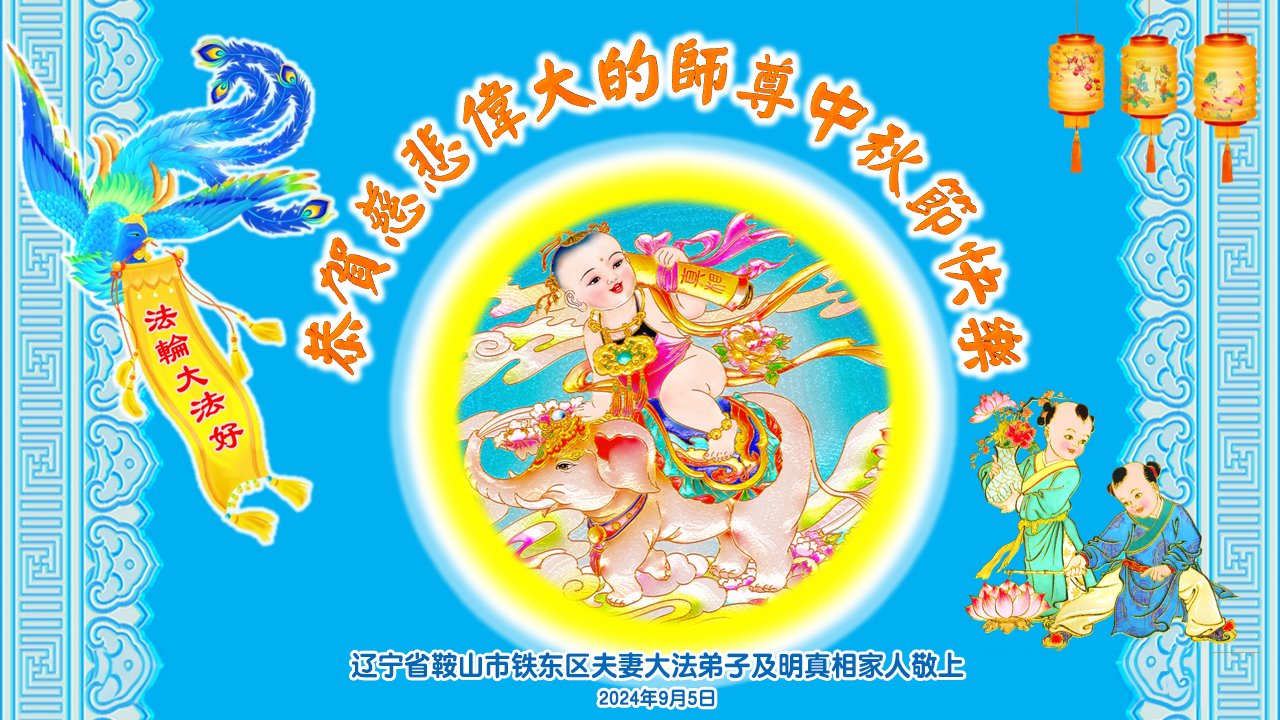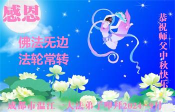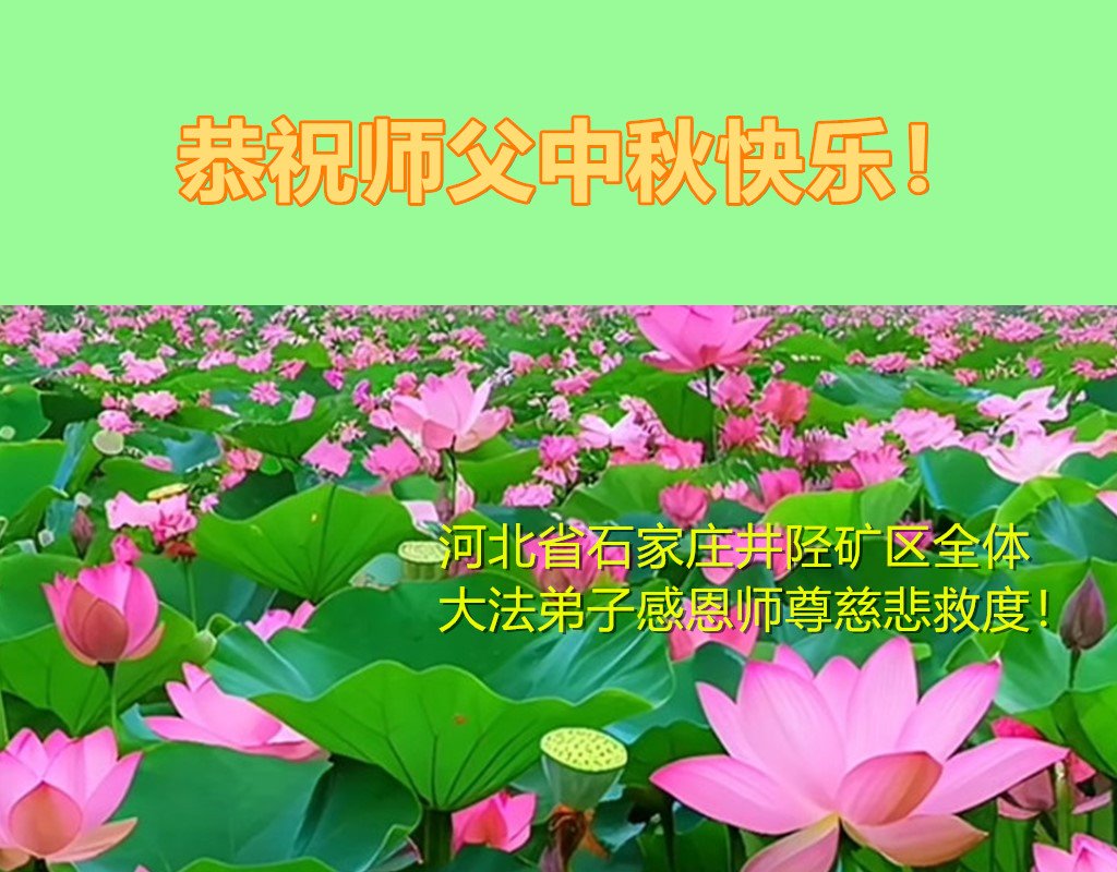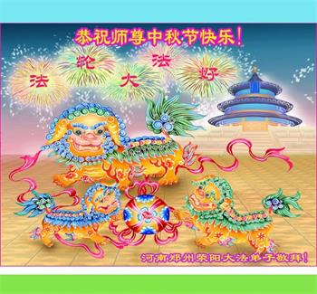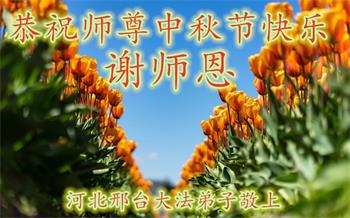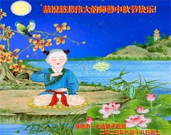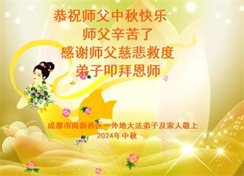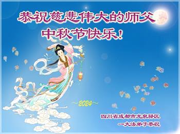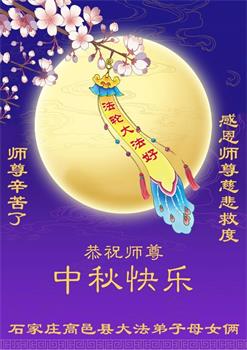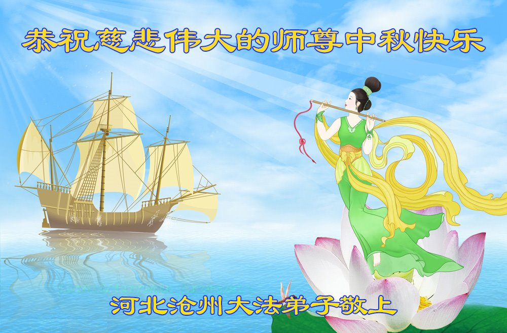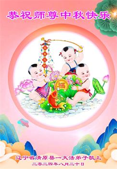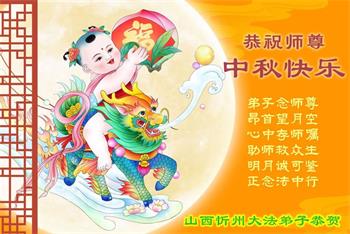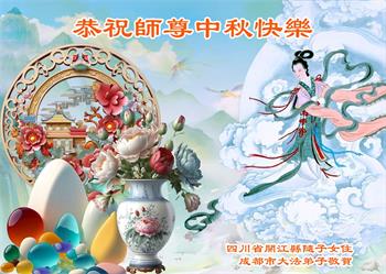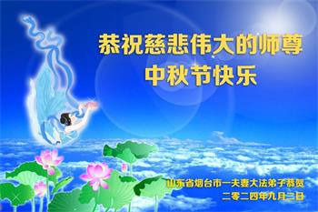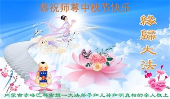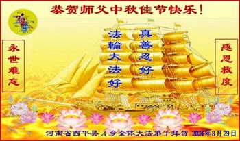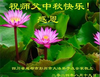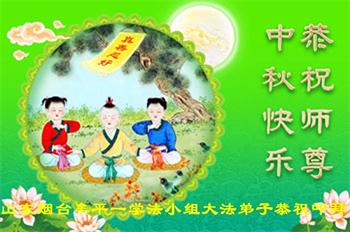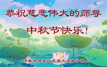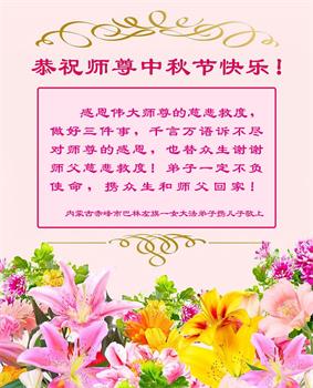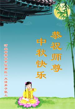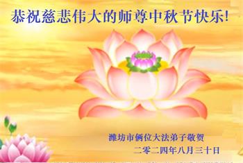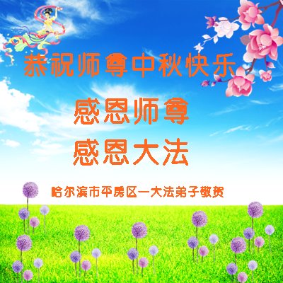 师父您好,我是新得法的学员。来到阿姨家有幸得遇大法,我的心情特别激动,我太幸运了。我跟阿姨一起学法、一起炼功、一起出去讲真相救人,大法太好了。中秋佳节到了,在此恭祝师父中秋节快乐!