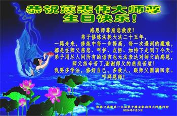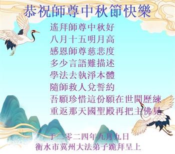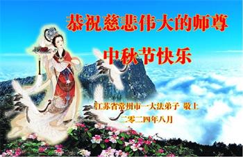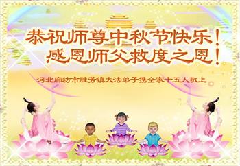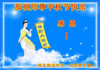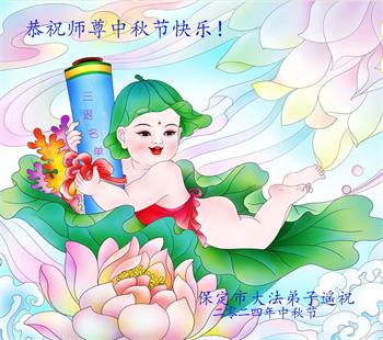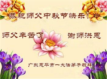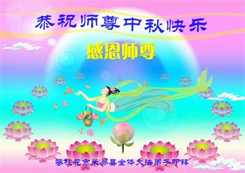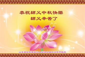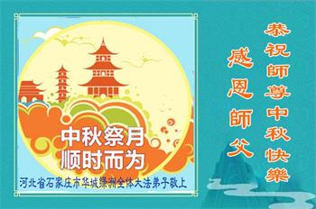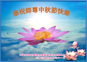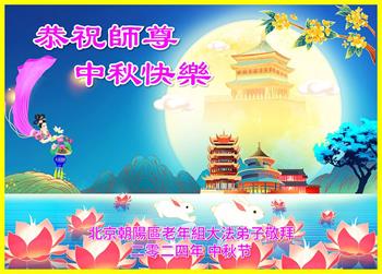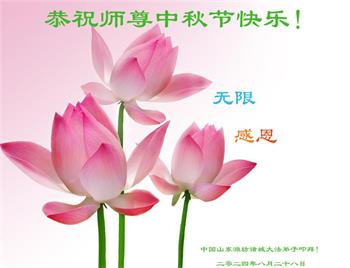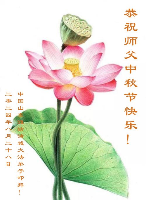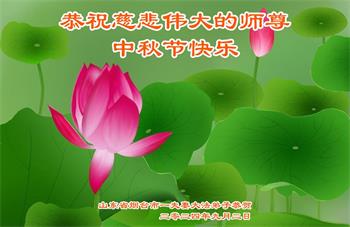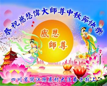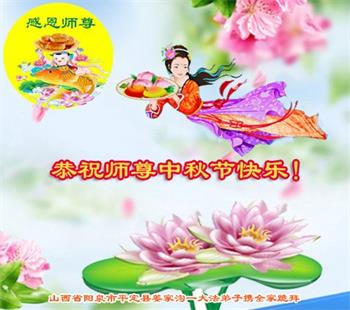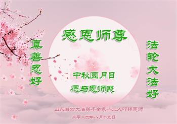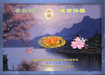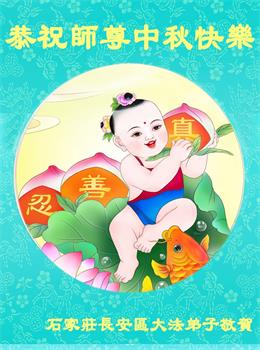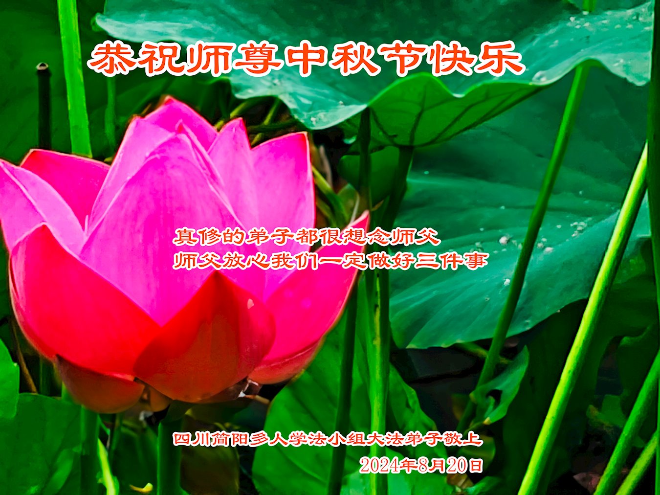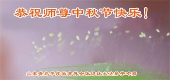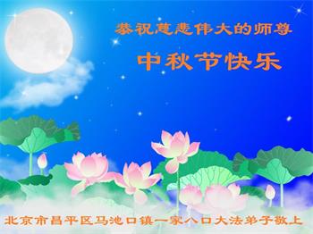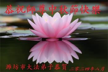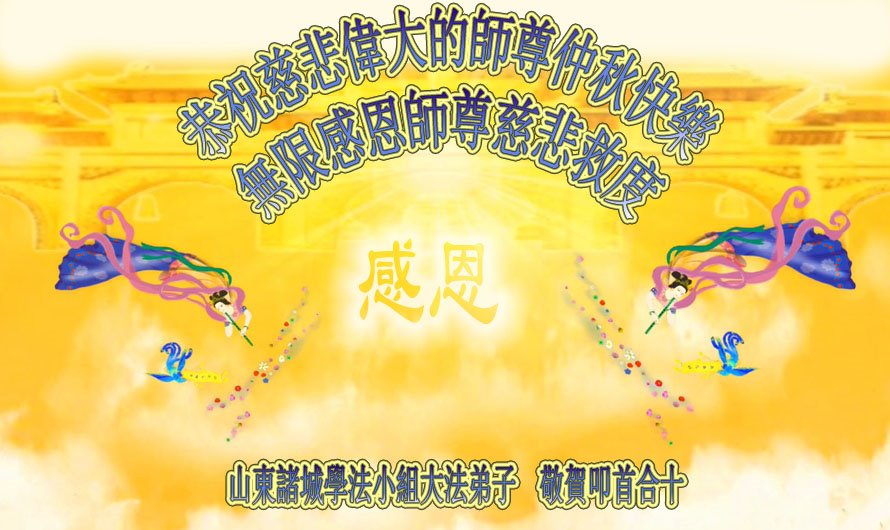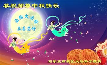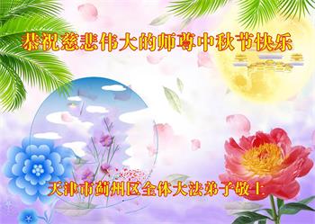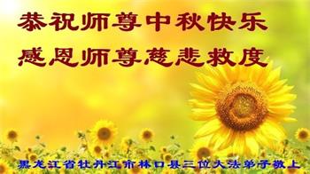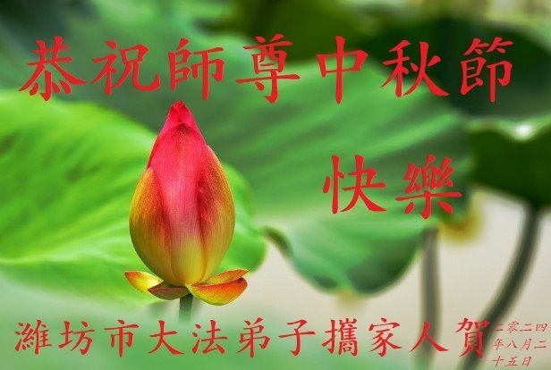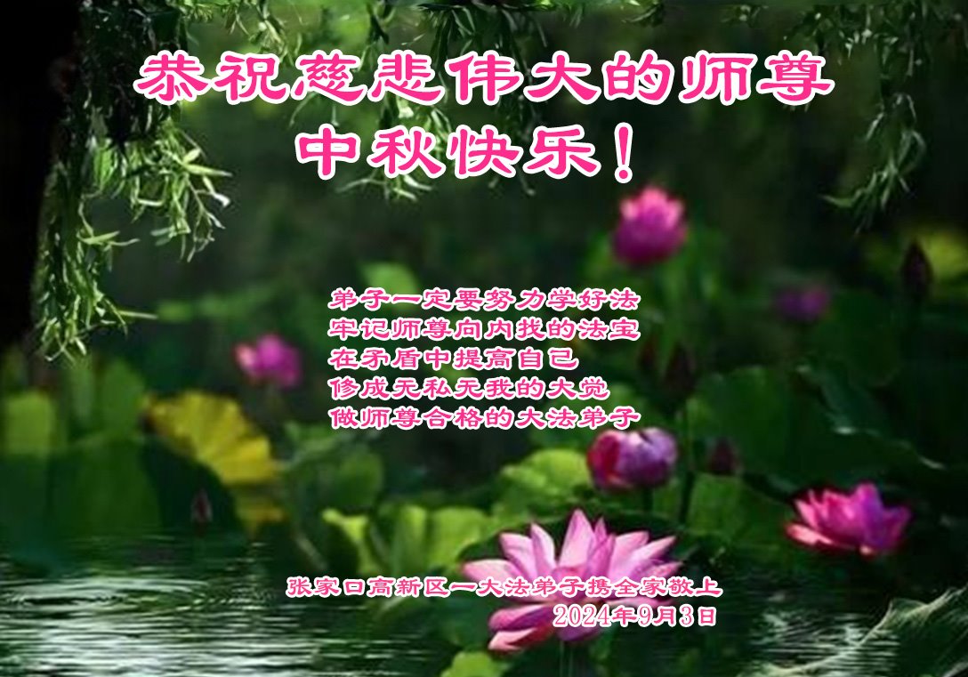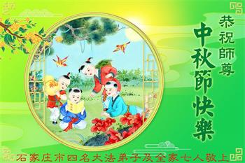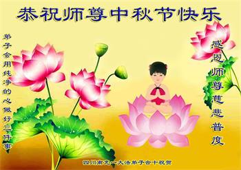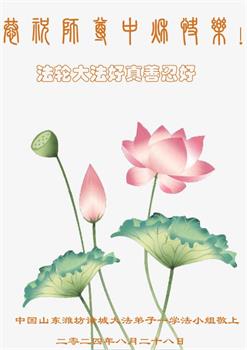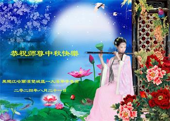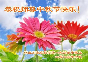 师父您好,我是新得法的学员。来到阿姨家有幸得遇大法,我的心情特别激动,我太幸运了。我跟阿姨一起学法、一起炼功、一起出去讲真相救人,大法太好了。中秋佳节到了,在此恭祝师父中秋节快乐!