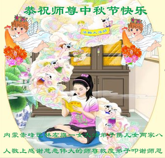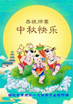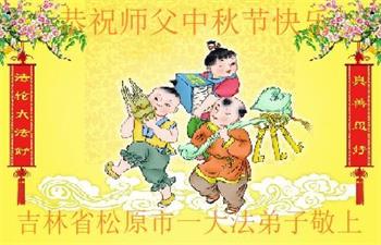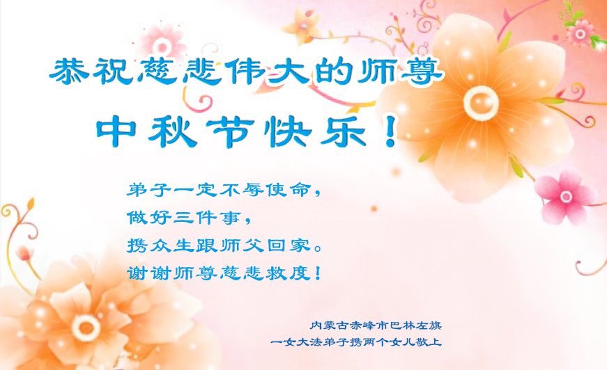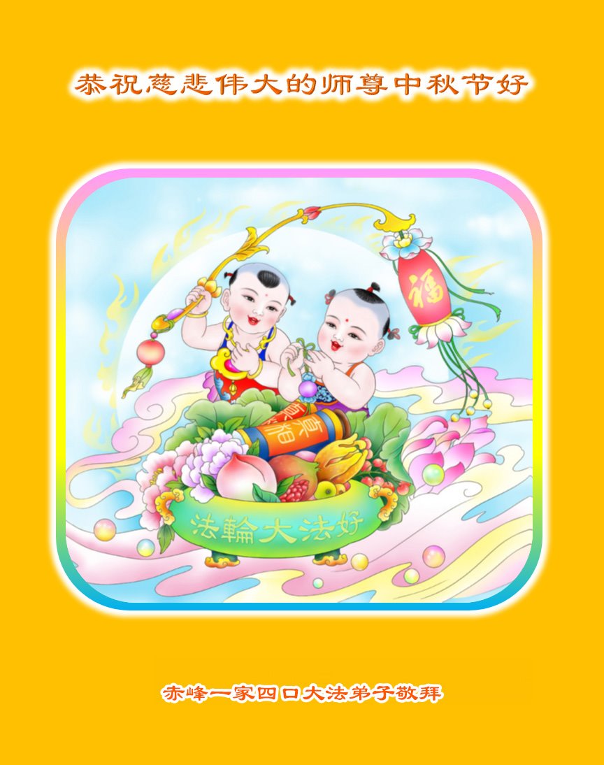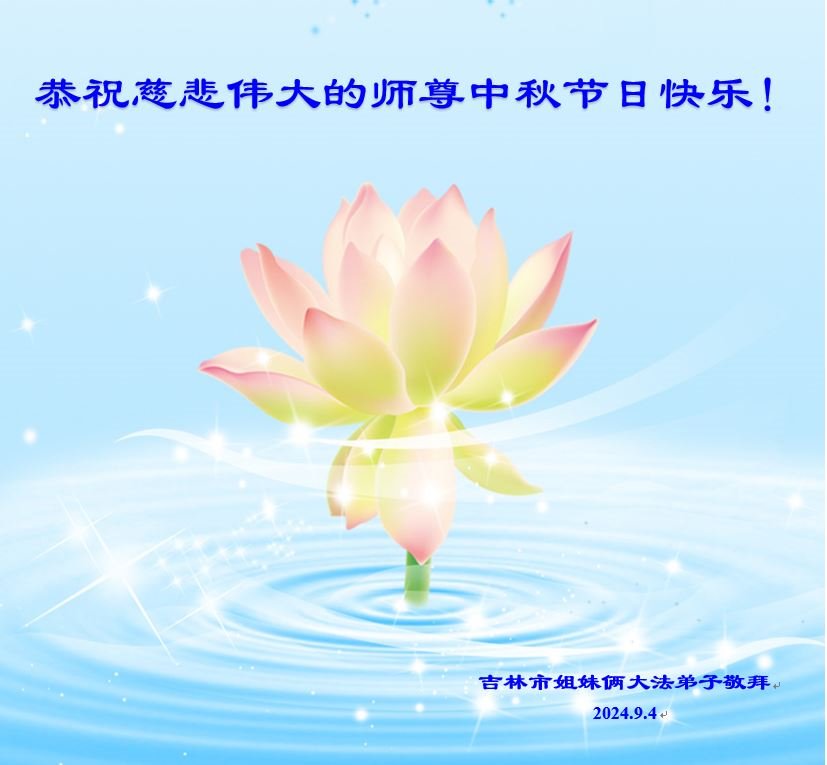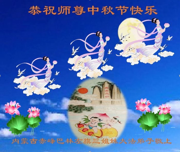 我们的妈妈是大法弟子,我们虽然现在还没有修炼,但常听妈妈读经文。在中秋节到来之际,我们姐妹俩恭祝大法师父您中秋节快乐!天天开心!