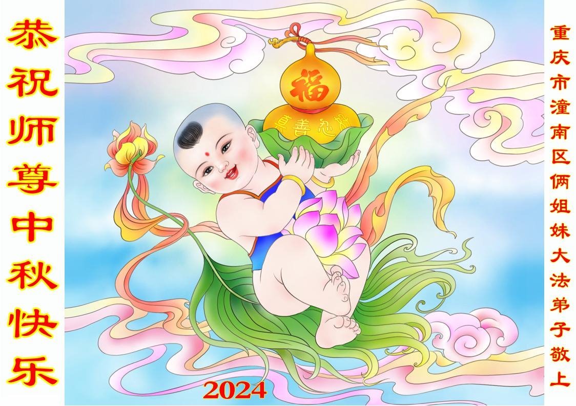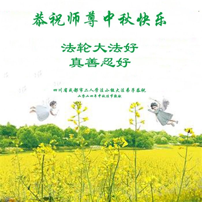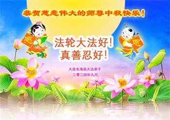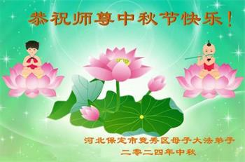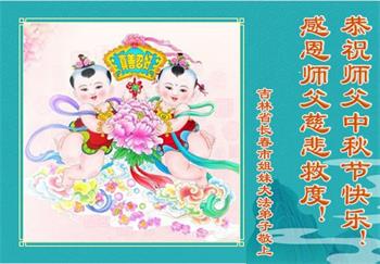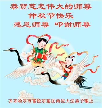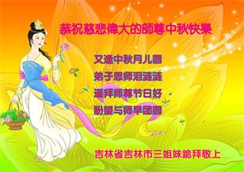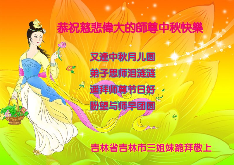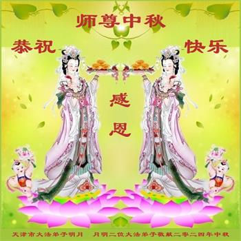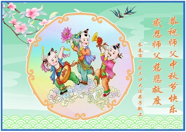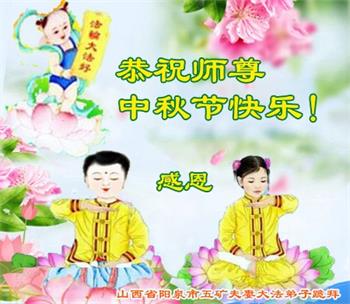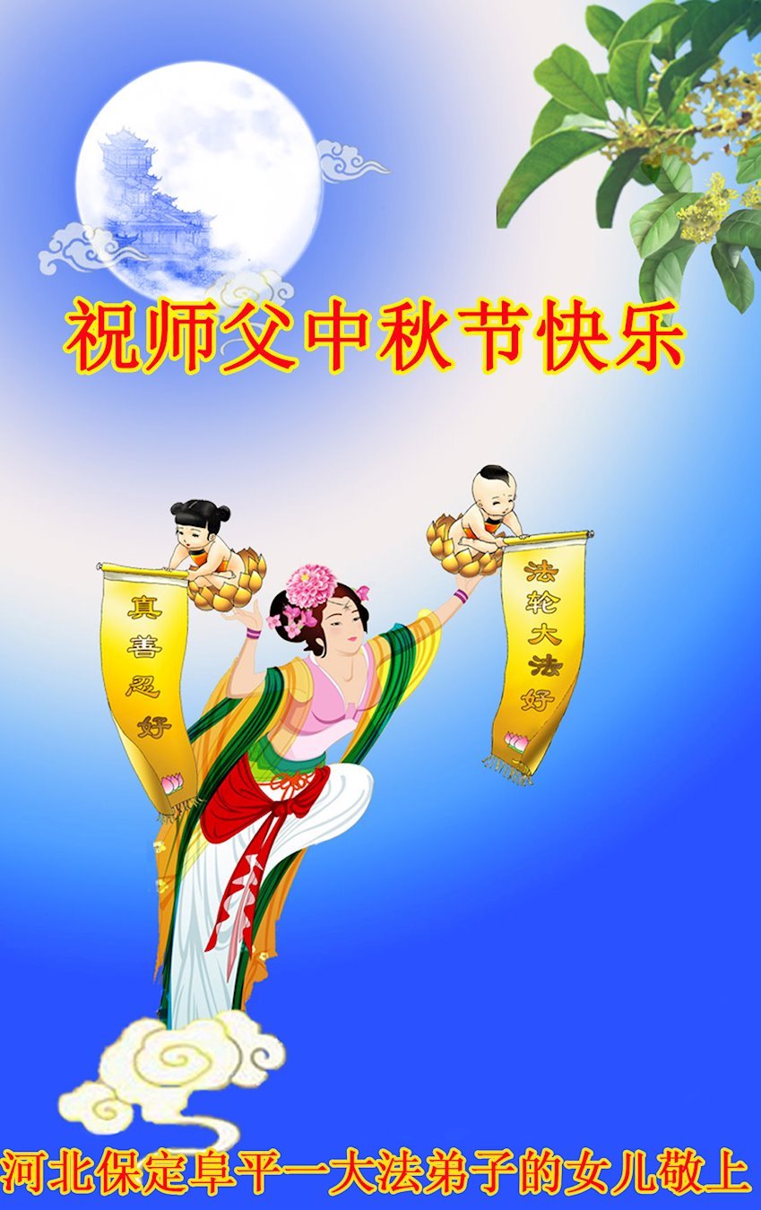 我们的妈妈是大法弟子,我们虽然现在还没有修炼,但常听妈妈读经文。在中秋节到来之际,我们姐妹俩恭祝大法师父您中秋节快乐!天天开心!