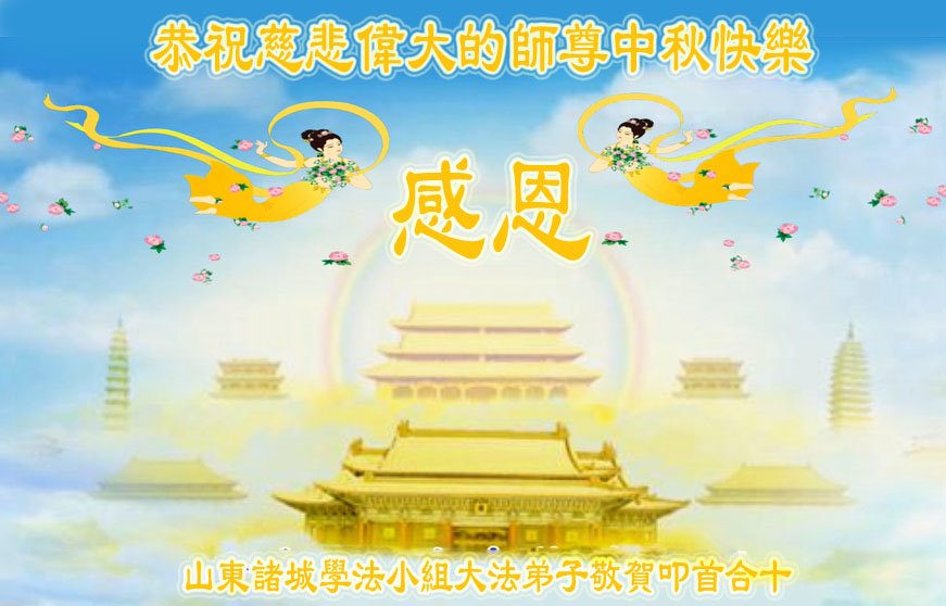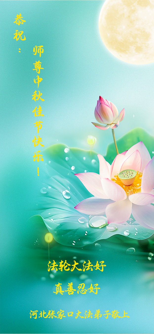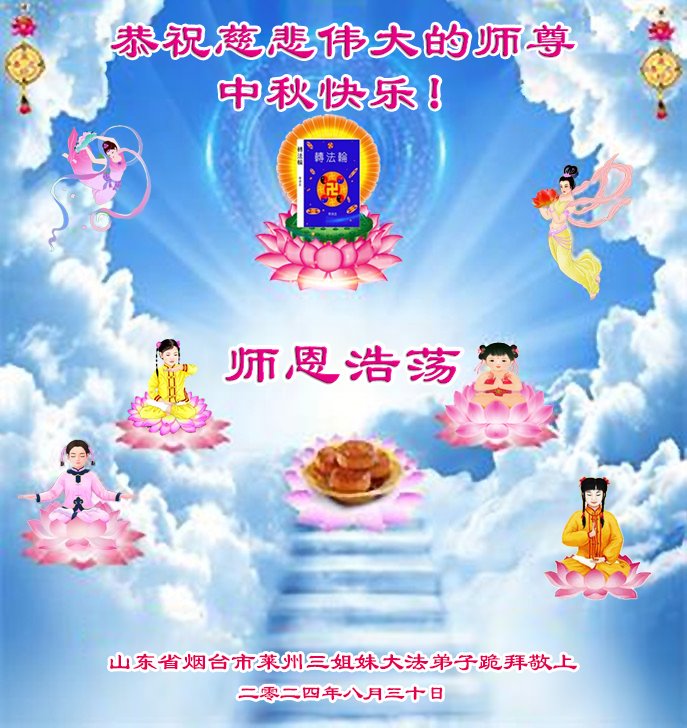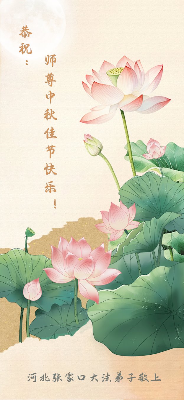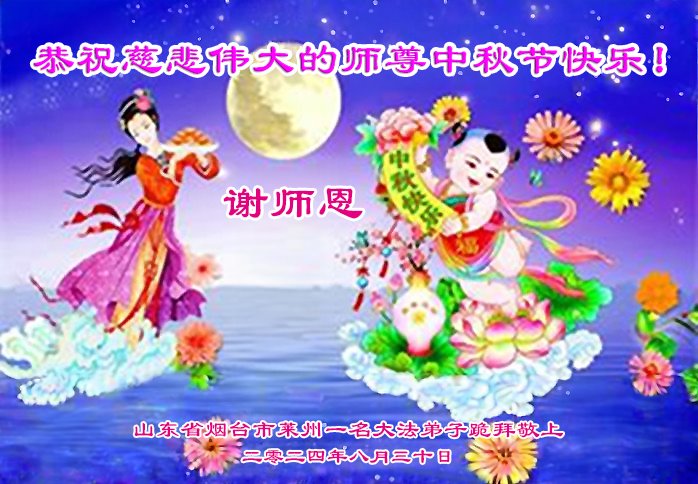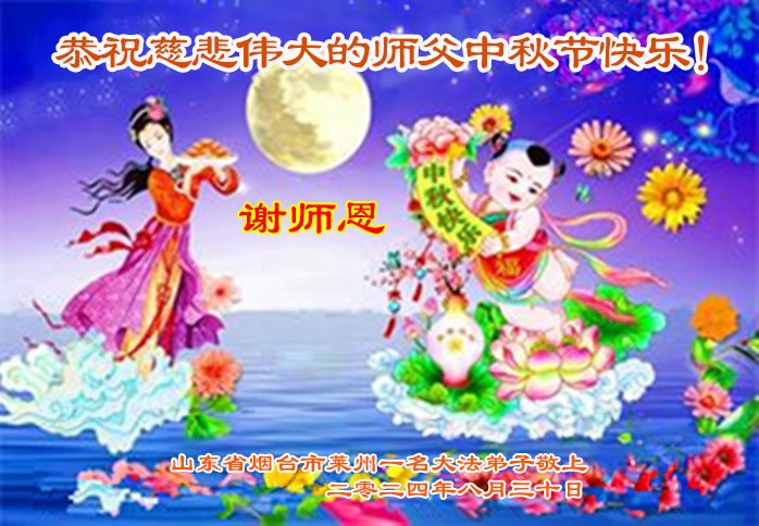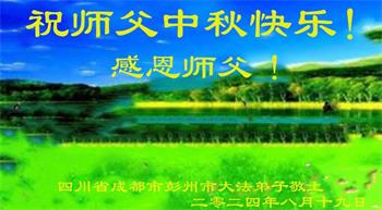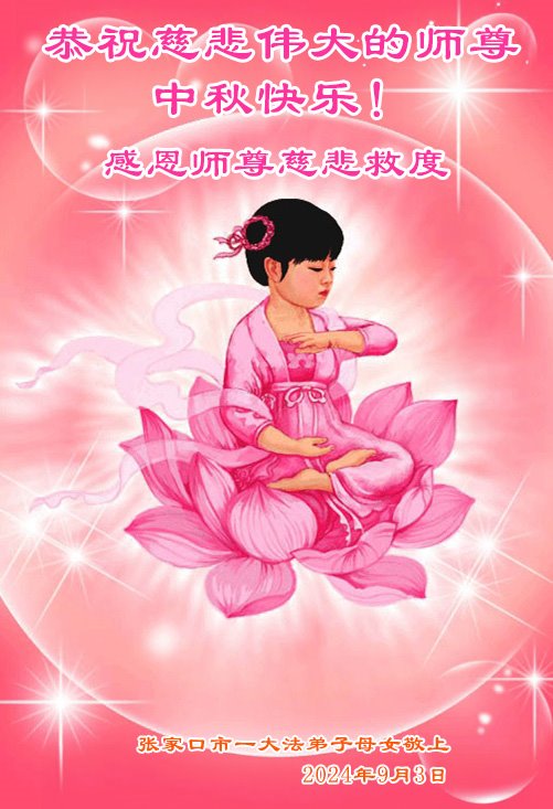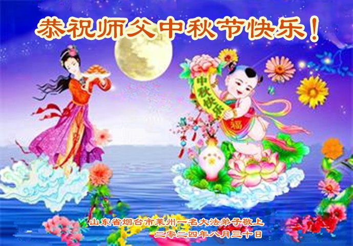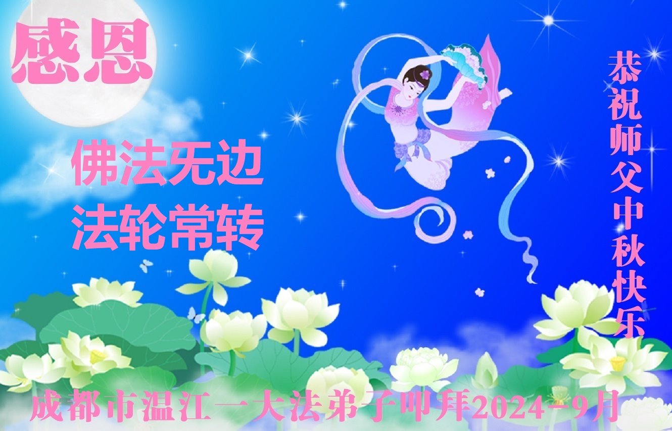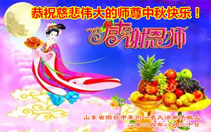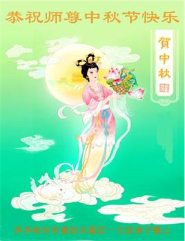 在中秋节到来之际,弟子叩拜师父!我是新学员,学法不久,师父给我净化了身体,达到了无病一身轻的状态,成为了众神都羡慕的生命!我珍惜这万古机缘,一定多学法,努力做好师父要求的三件事,让师父少操心。感恩师父慈悲救度!恭祝师父中秋快乐!
