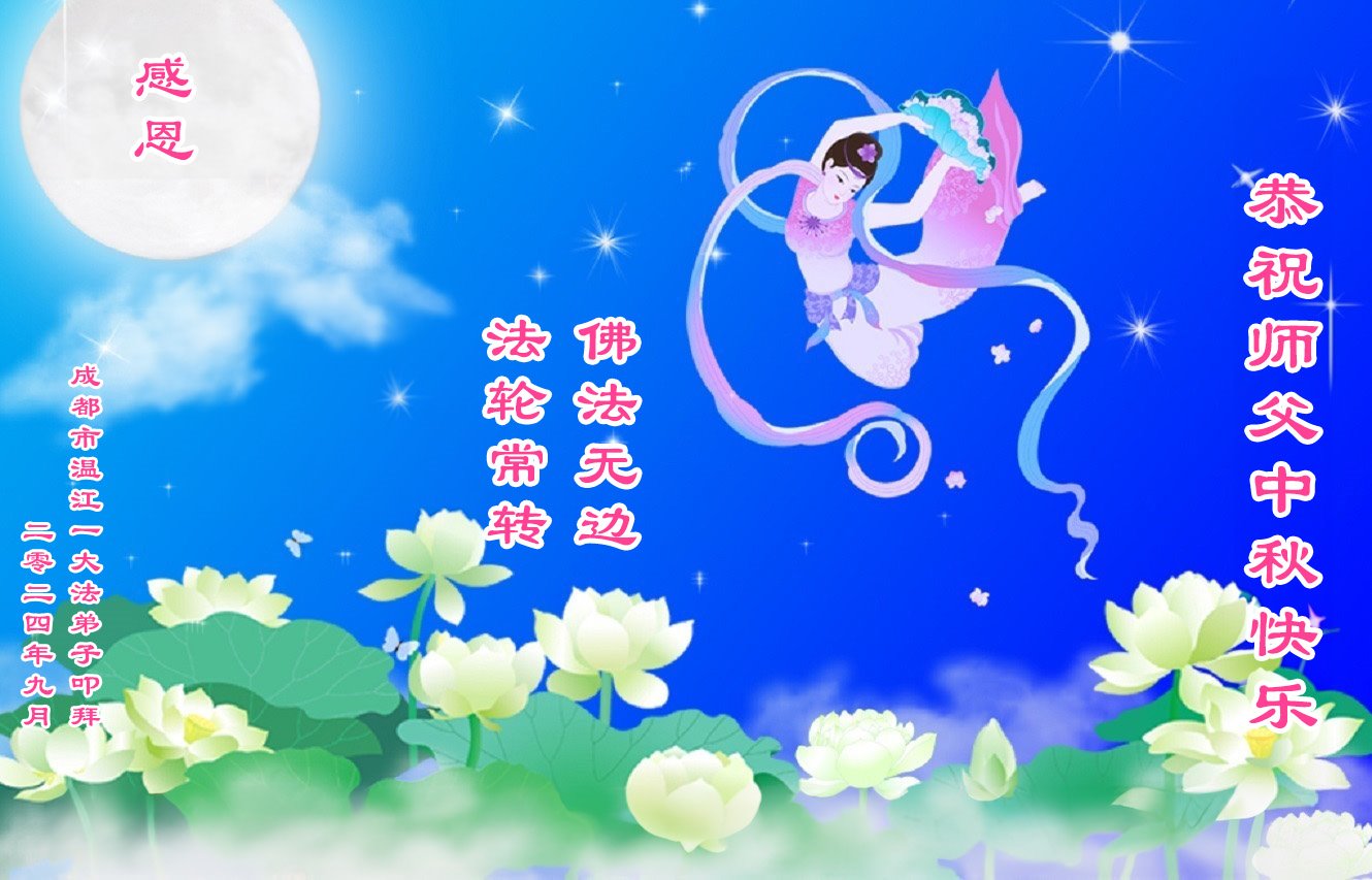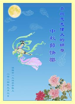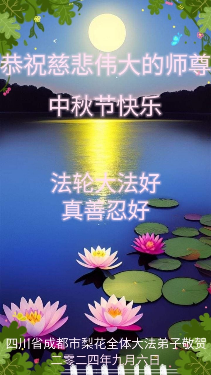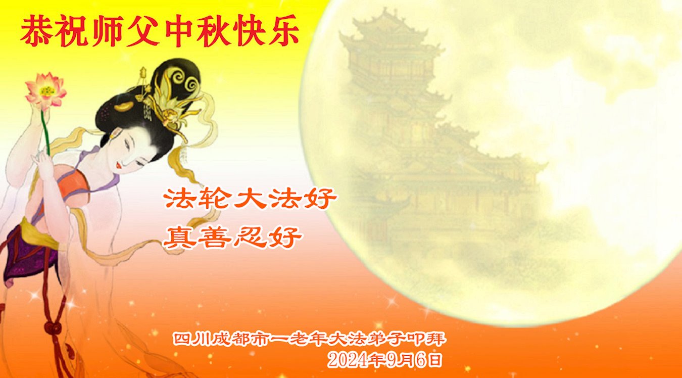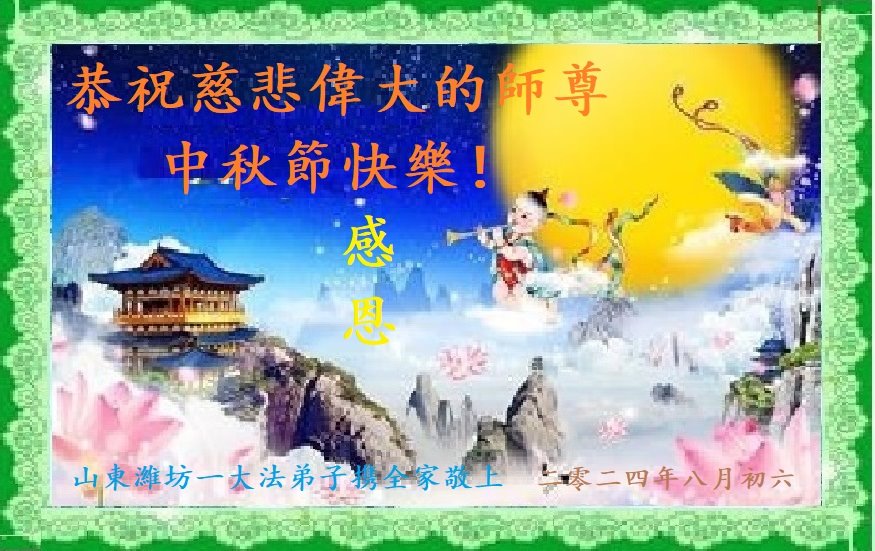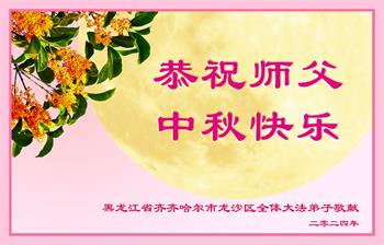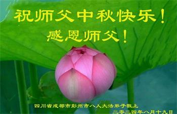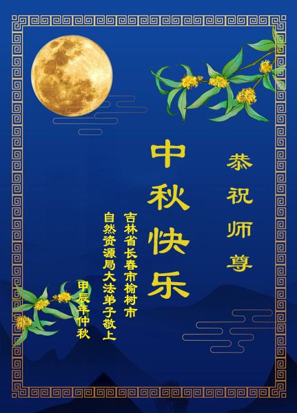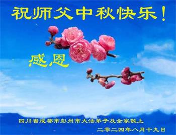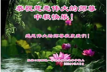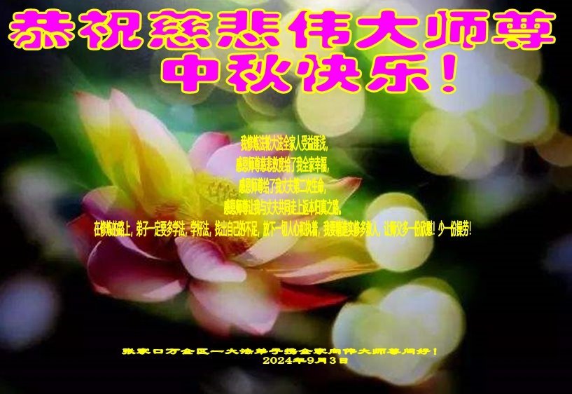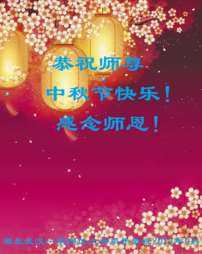 【明慧网二零二四年九月十五日】(明慧网通讯员综合报道)金秋桂花香,甲辰月又圆。中国大陆众多明真相的民众在中秋佳节之际,向法轮功创始人李洪志先生发来节日问候,恭祝李大师中秋快乐!衷心感谢李大师的指引与解救!