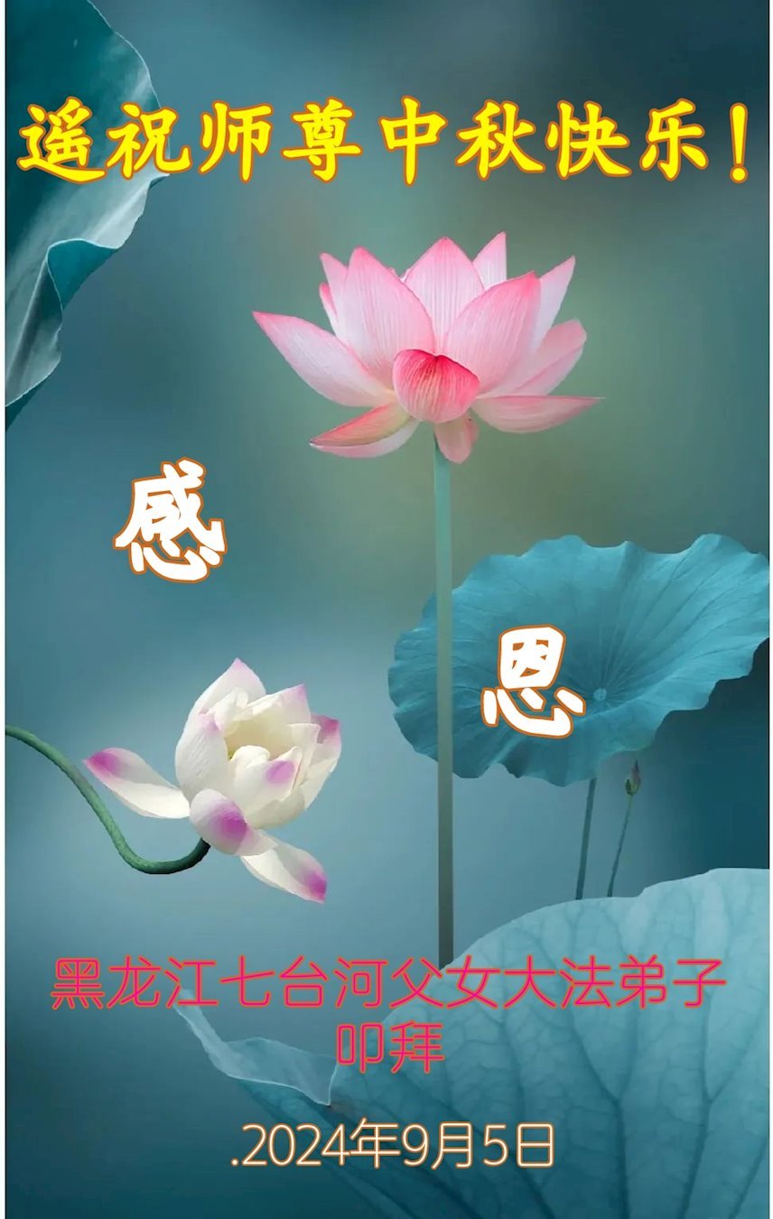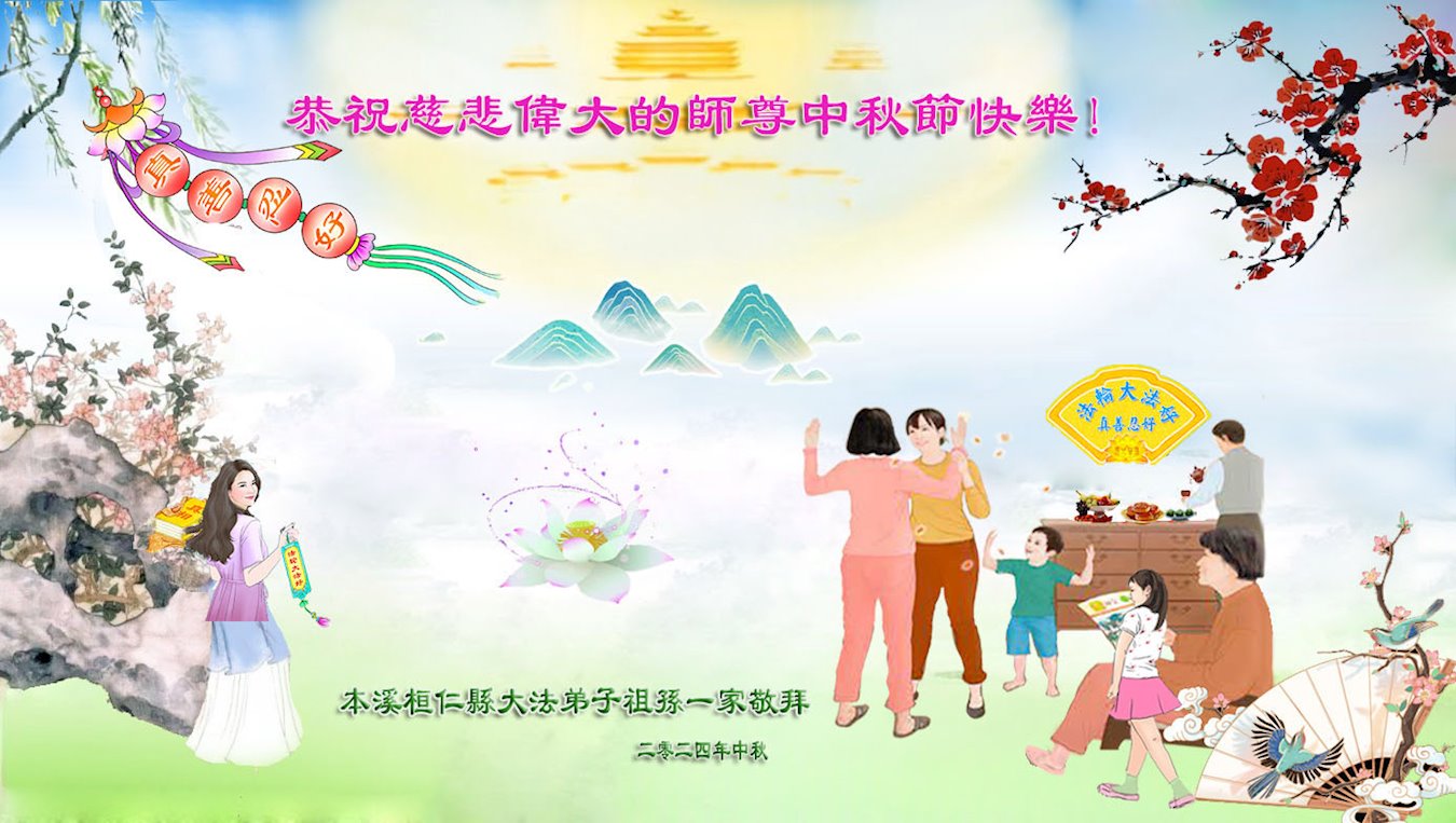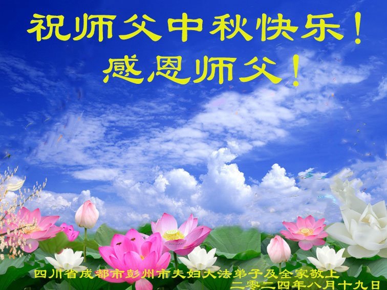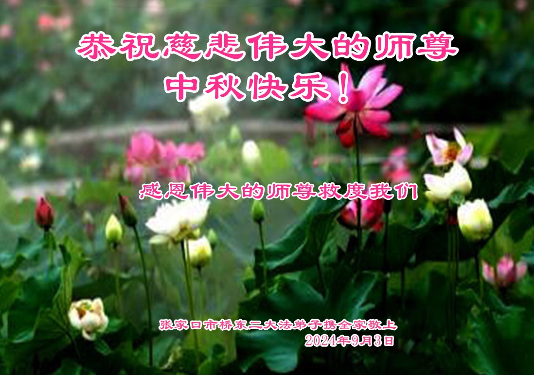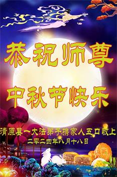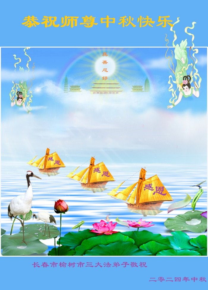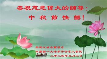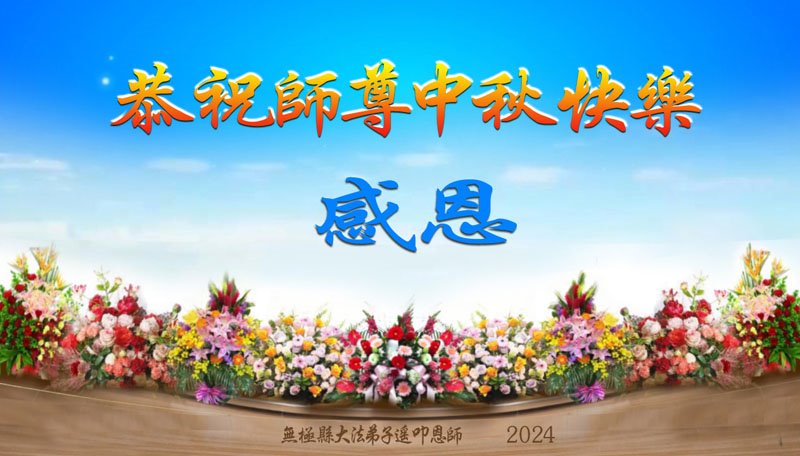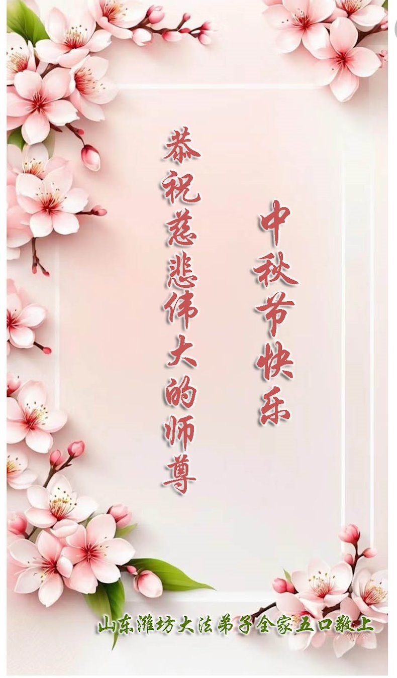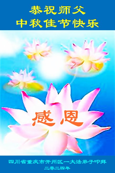 【明慧网二零二四年九月十五日】(明慧网通讯员综合报道)金秋桂花香,甲辰月又圆。中国大陆众多明真相的民众在中秋佳节之际,向法轮功创始人李洪志先生发来节日问候,恭祝李大师中秋快乐!衷心感谢李大师的指引与解救!