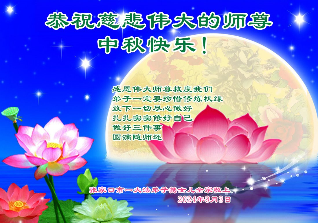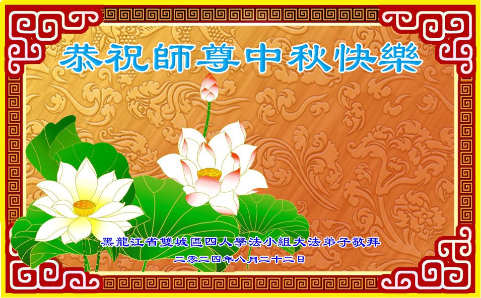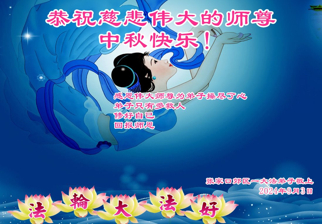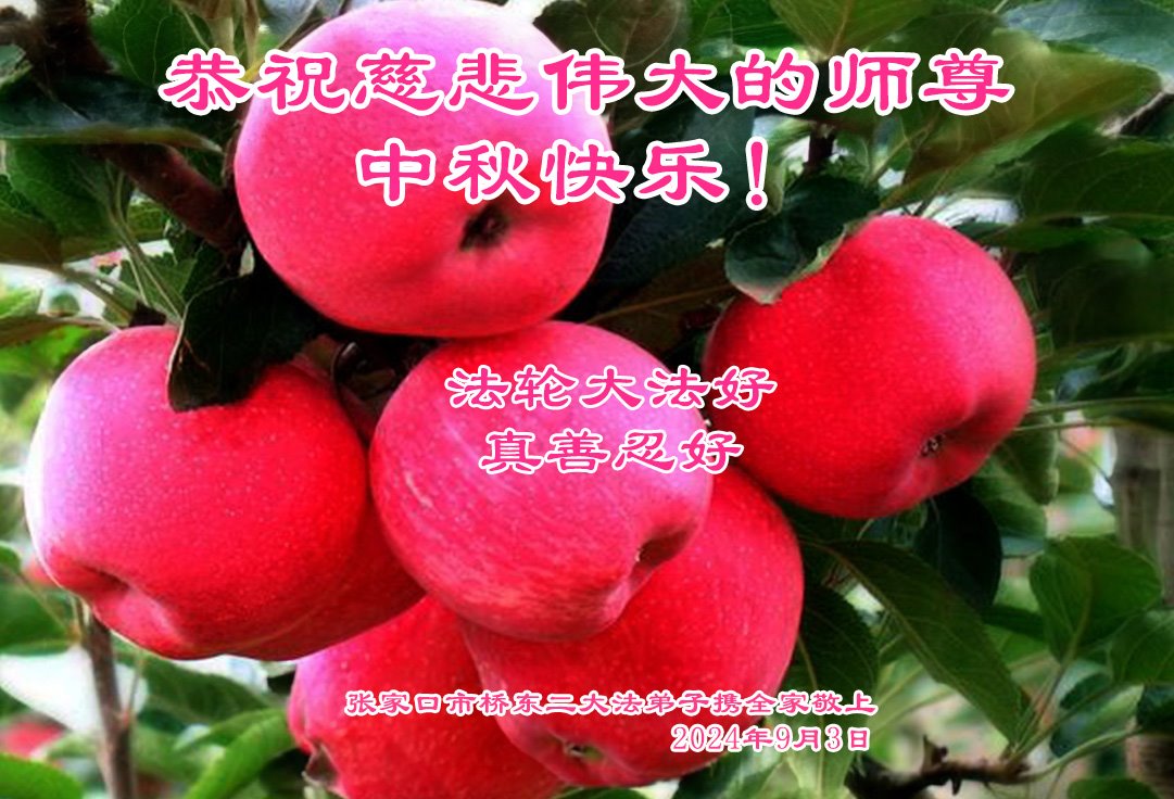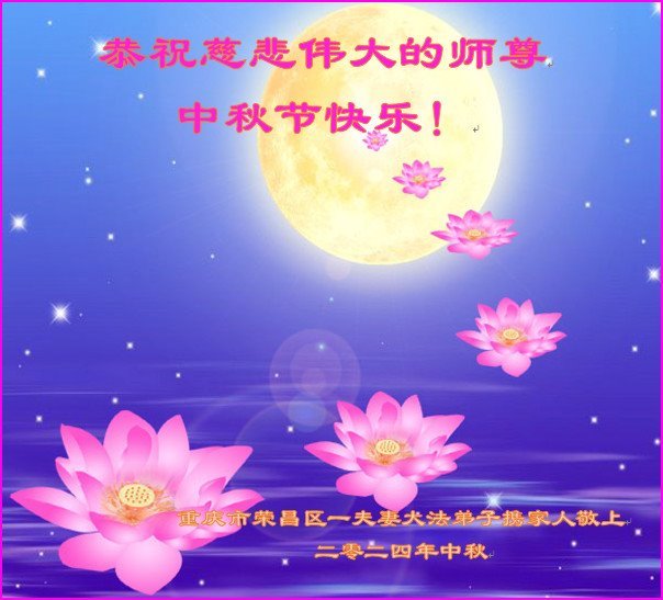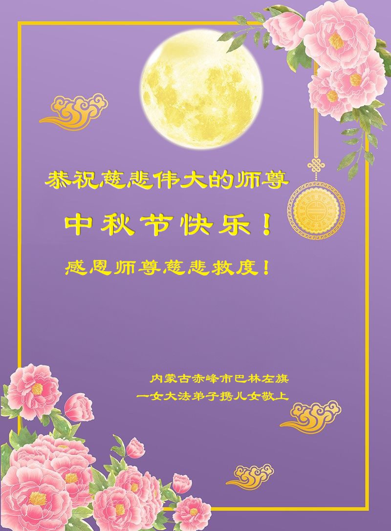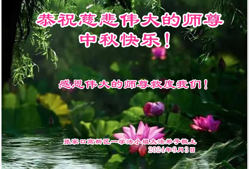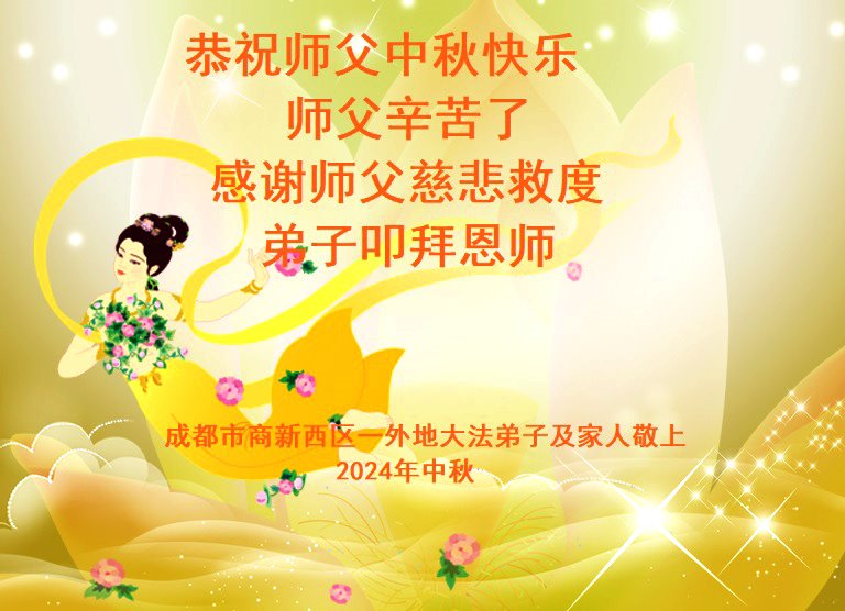 【明慧网二零二四年九月十五日】(明慧网通讯员综合报道)金秋桂花香,甲辰月又圆。中国大陆众多明真相的民众在中秋佳节之际,向法轮功创始人李洪志先生发来节日问候,恭祝李大师中秋快乐!衷心感谢李大师的指引与解救!