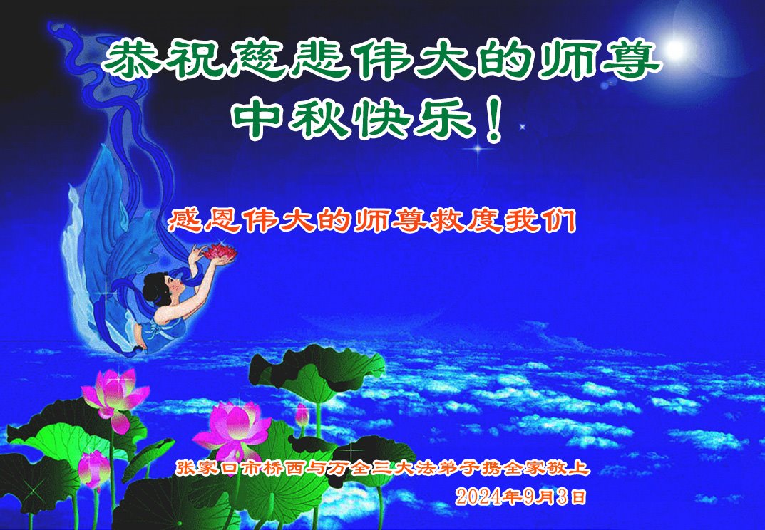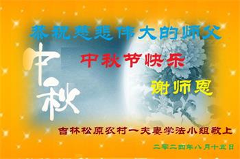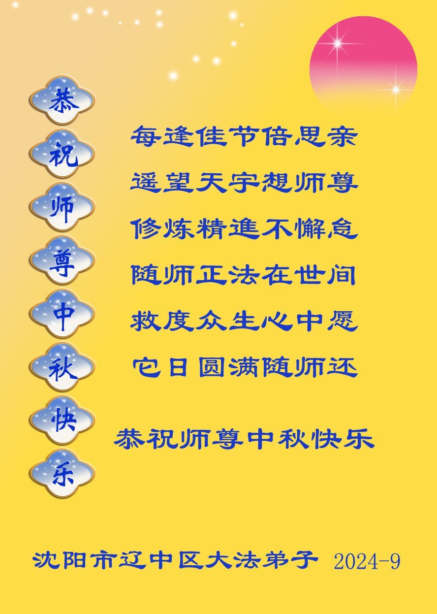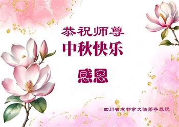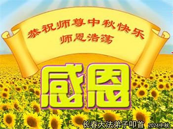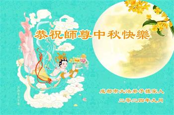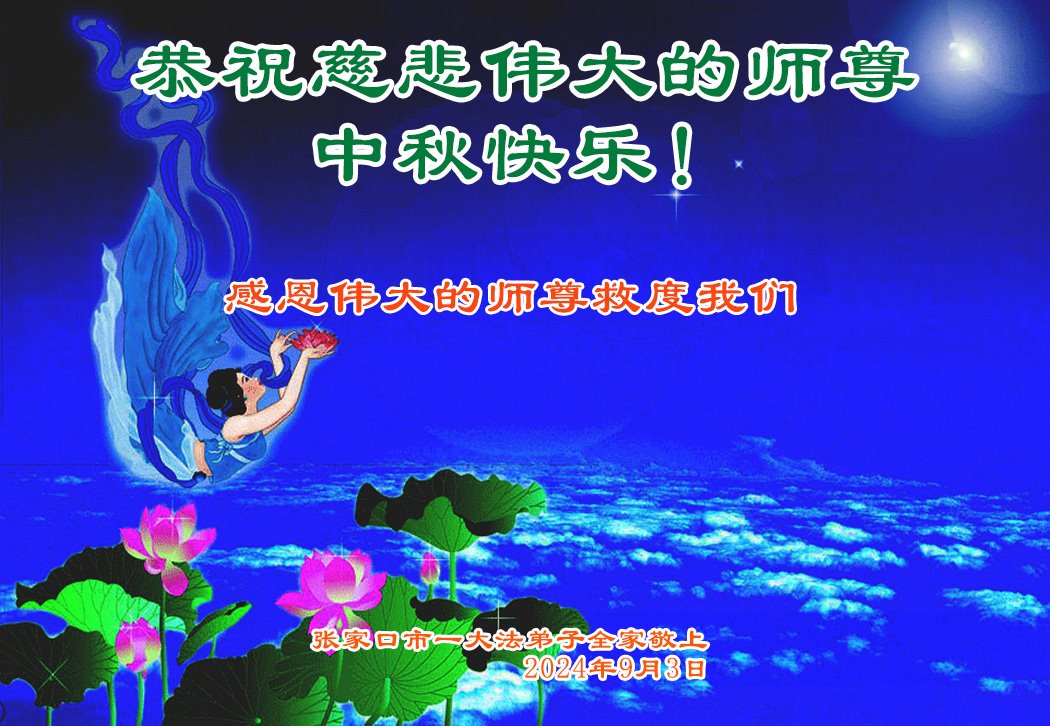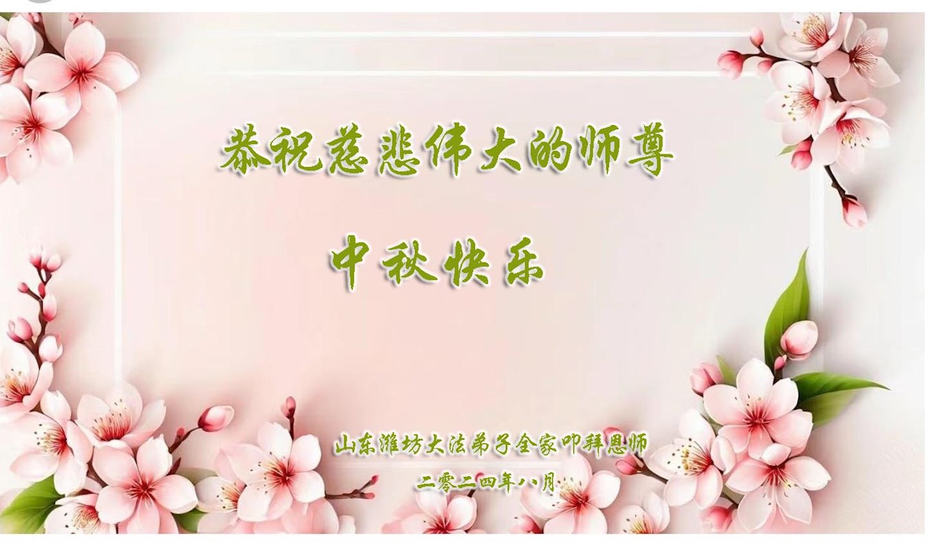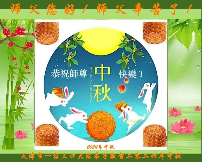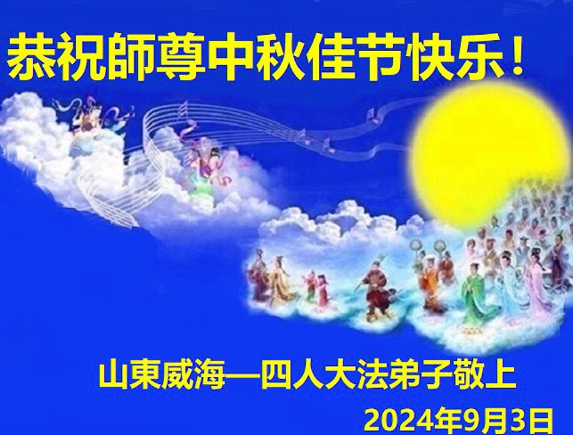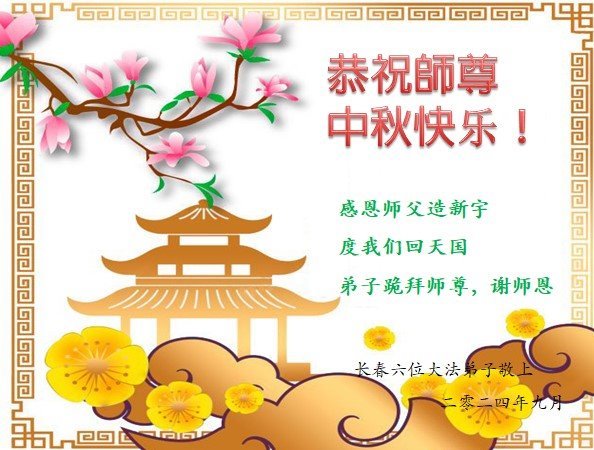【明慧网二零二四年九月十五日】(明慧网通讯员综合报道)金秋桂花香,甲辰月又圆。中国大陆众多明真相的民众在中秋佳节之际,向法轮功创始人李洪志先生发来节日问候,恭祝李大师中秋快乐!衷心感谢李大师的指引与解救!