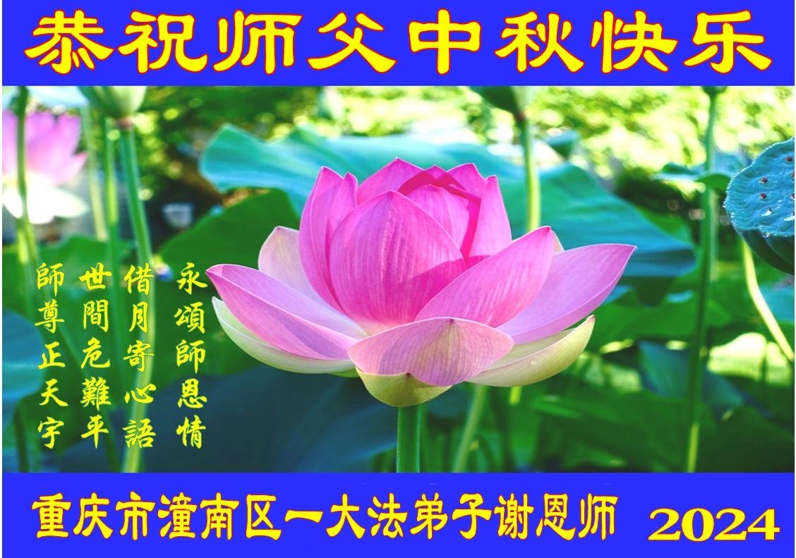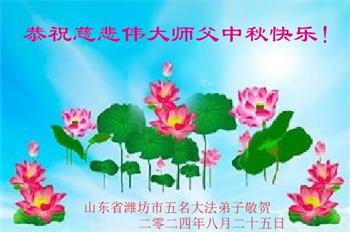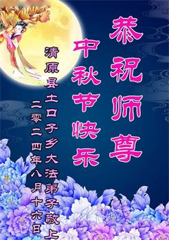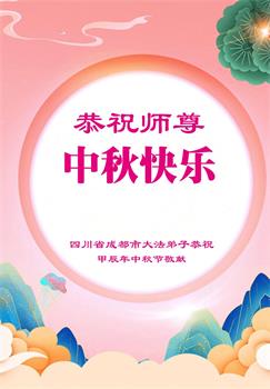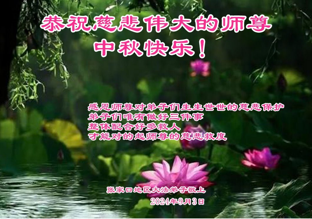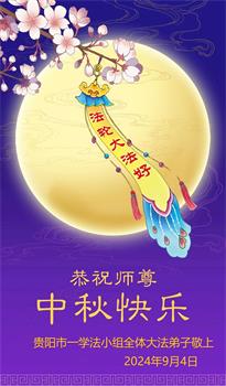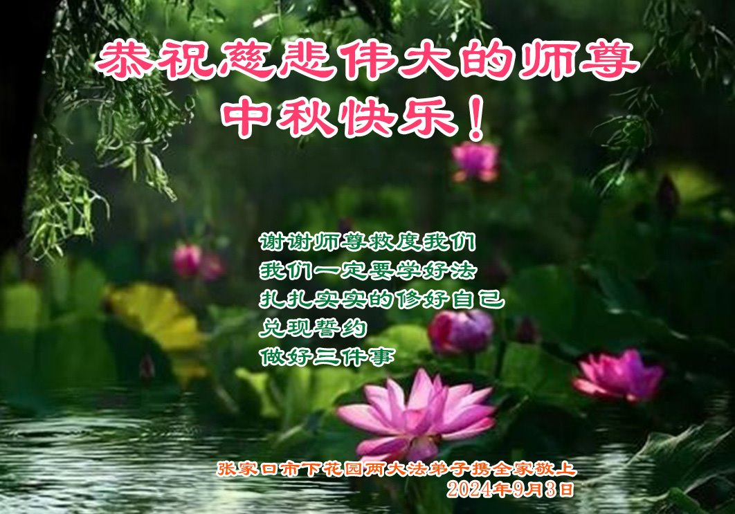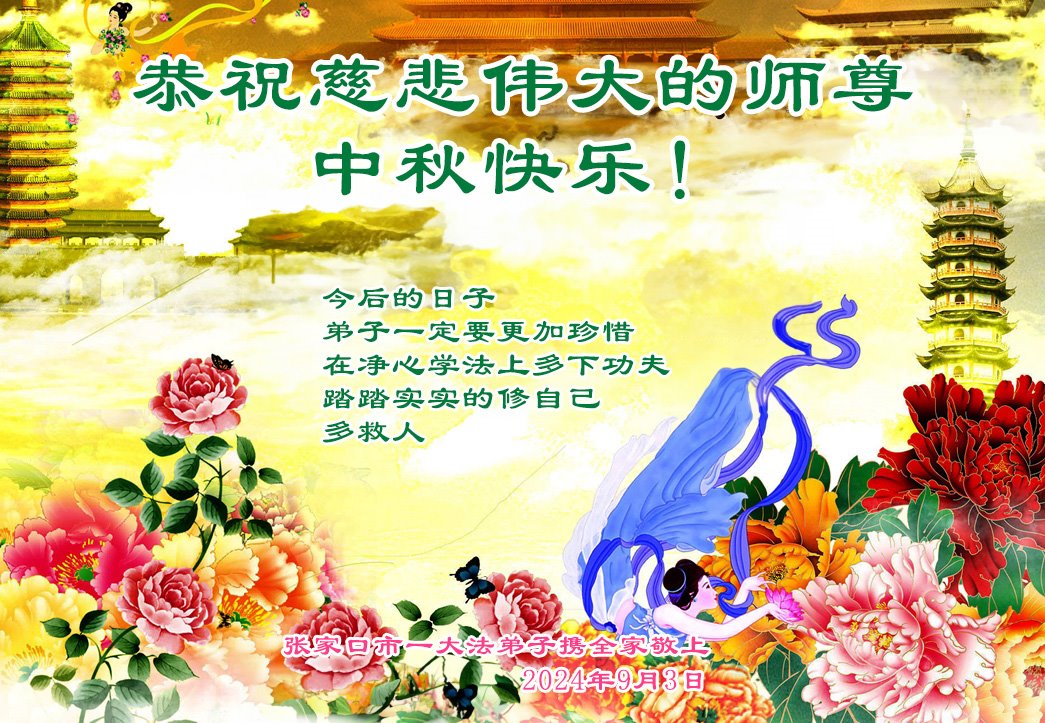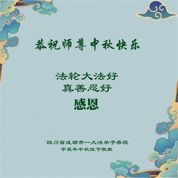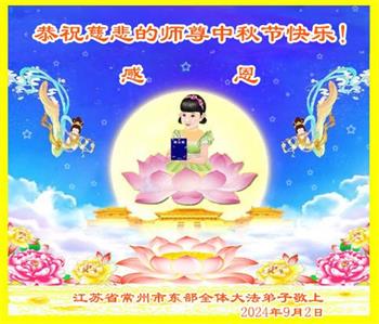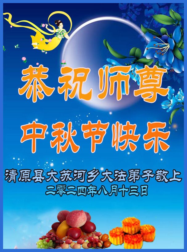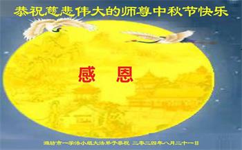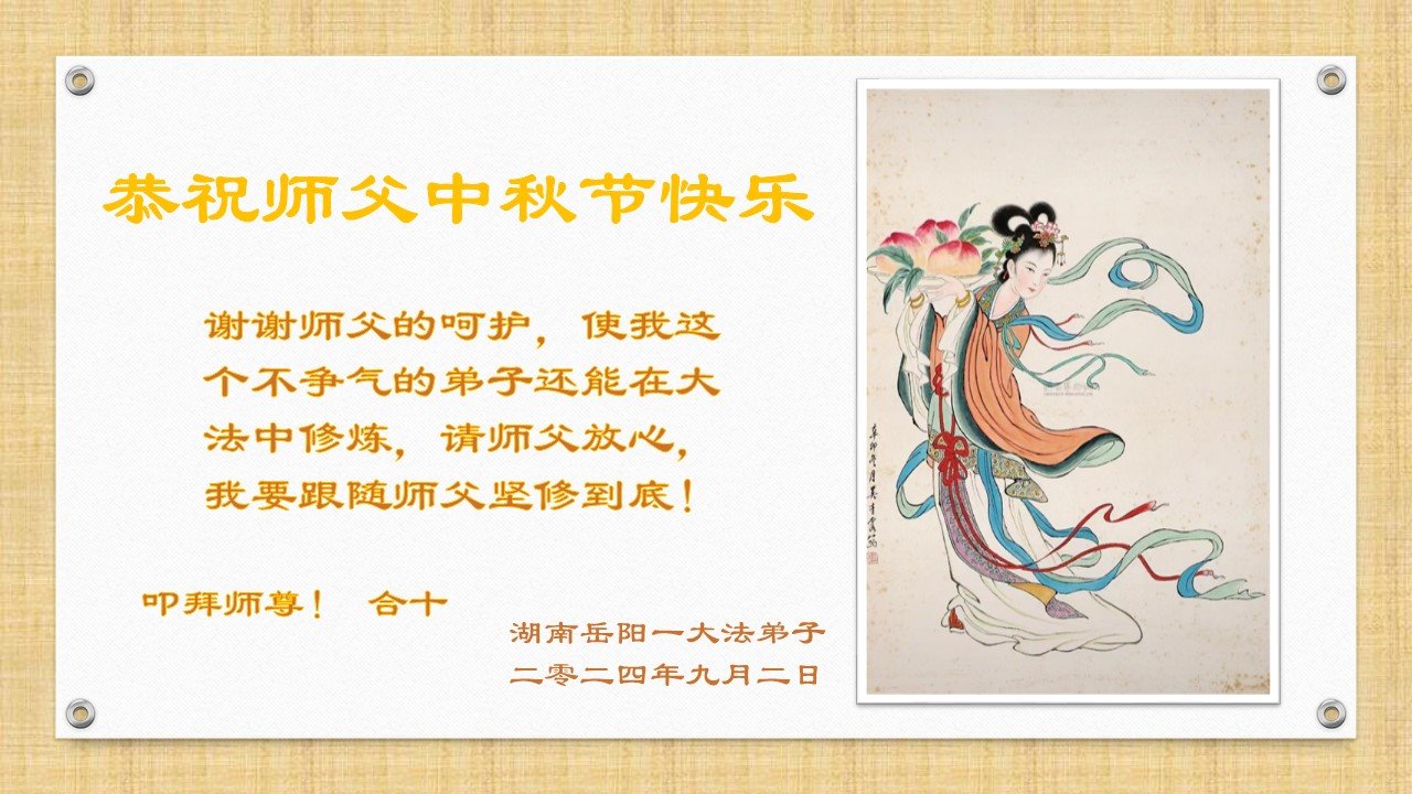【明慧网二零二四年九月十五日】(明慧网通讯员综合报道)金秋桂花香,甲辰月又圆。中国大陆众多明真相的民众在中秋佳节之际,向法轮功创始人李洪志先生发来节日问候,恭祝李大师中秋快乐!衷心感谢李大师的指引与解救!