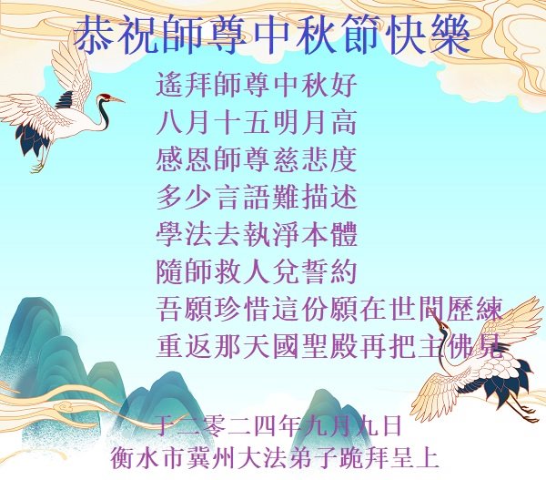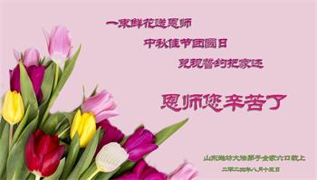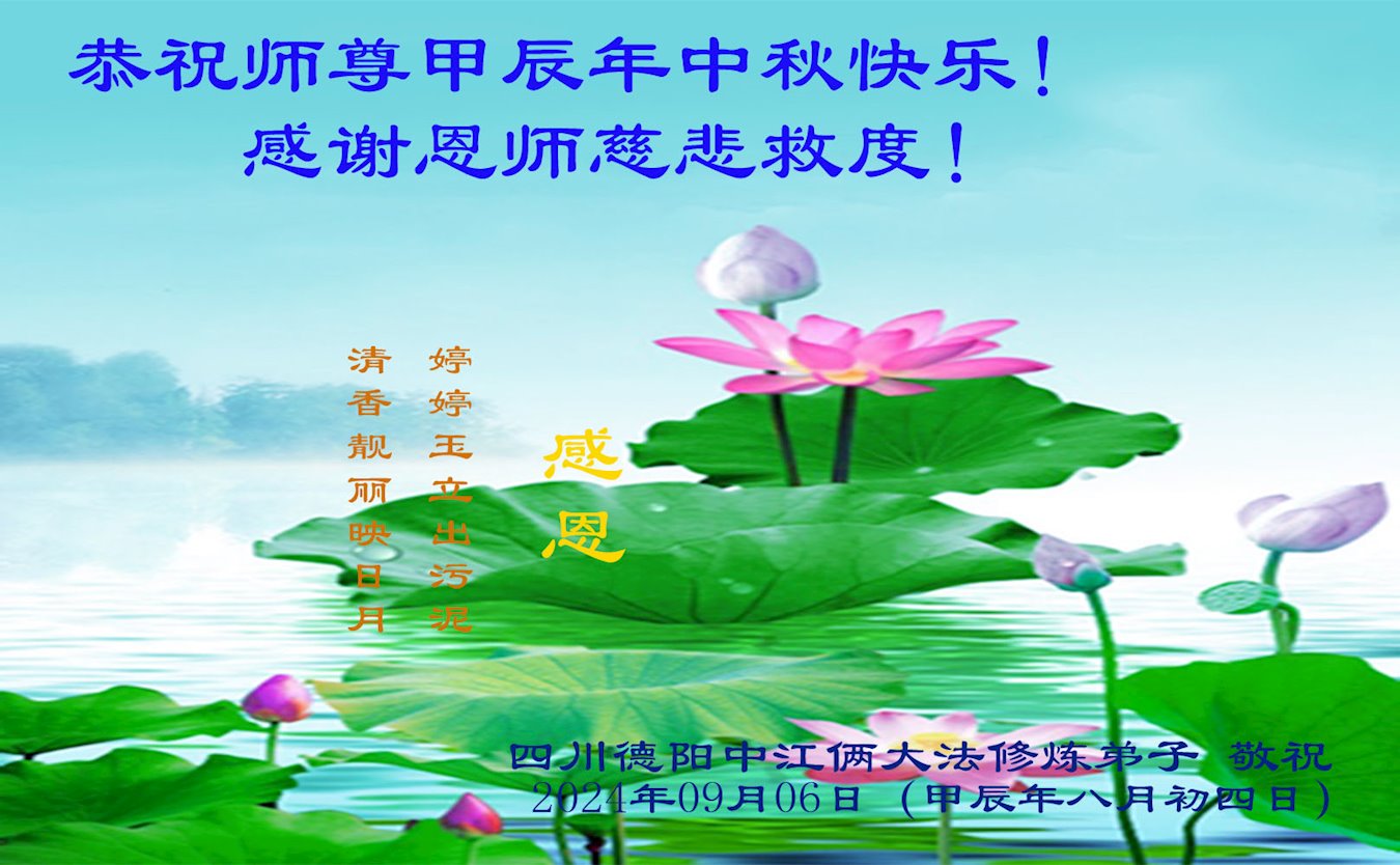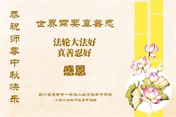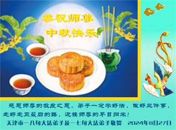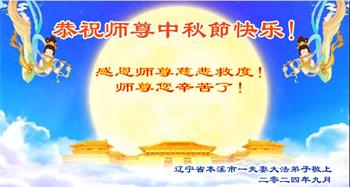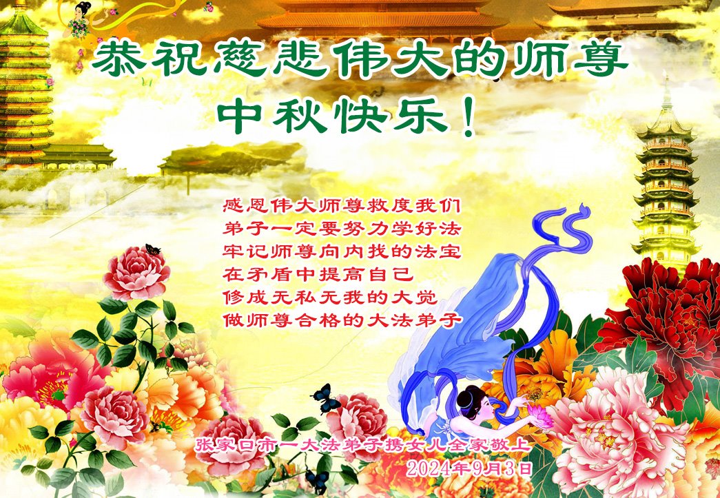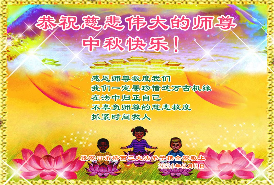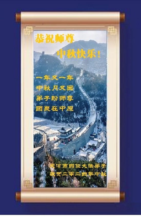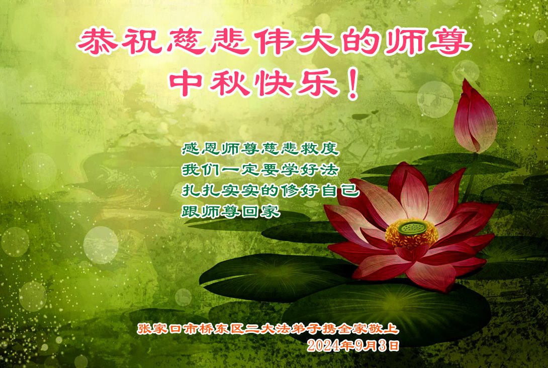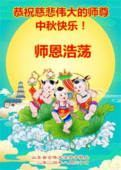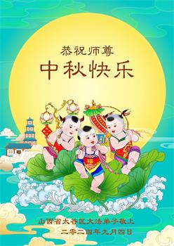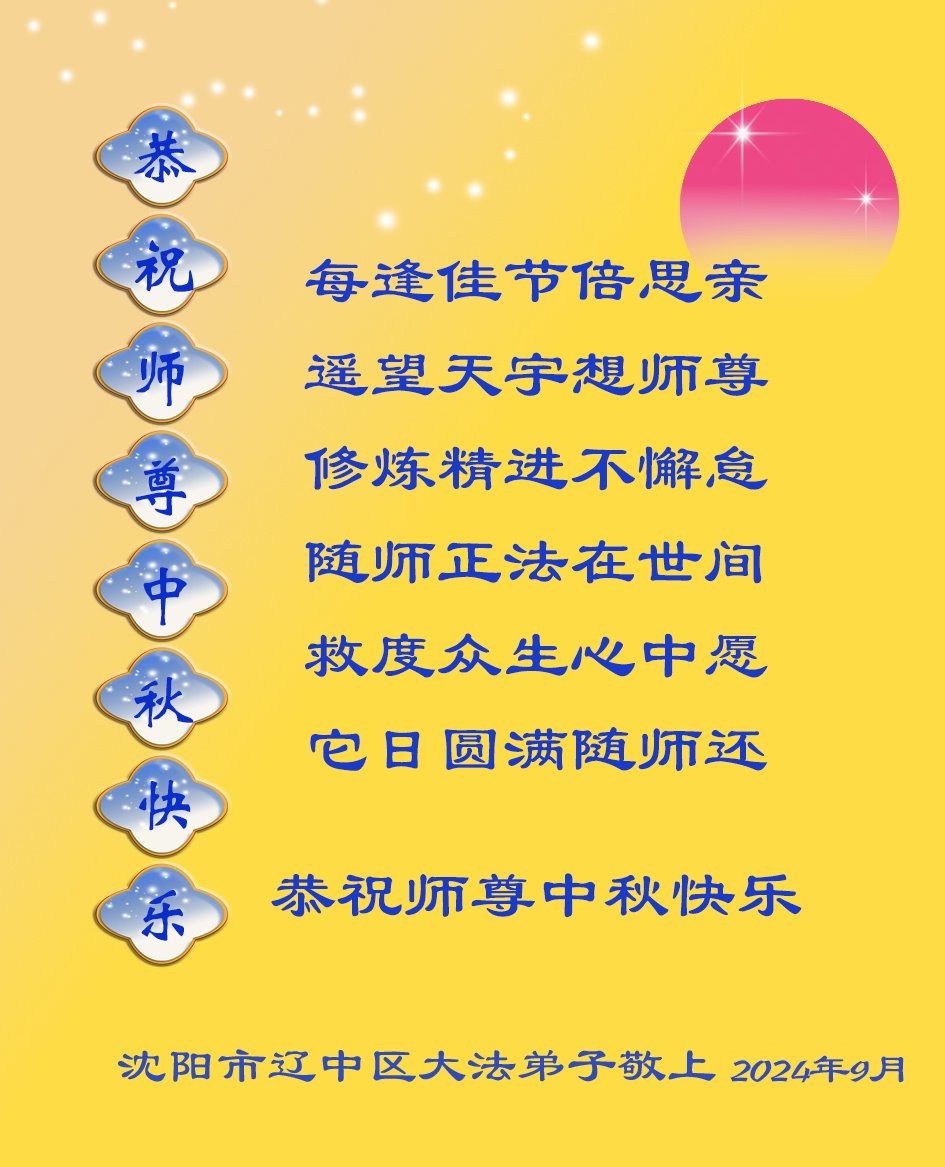 【明慧网二零二四年九月十五日】(明慧网通讯员综合报道)金秋桂花香,甲辰月又圆。中国大陆众多明真相的民众在中秋佳节之际,向法轮功创始人李洪志先生发来节日问候,恭祝李大师中秋快乐!衷心感谢李大师的指引与解救!