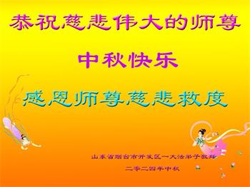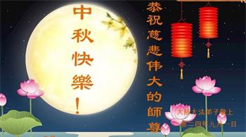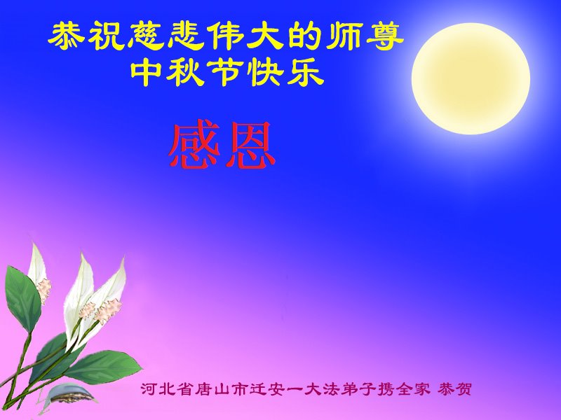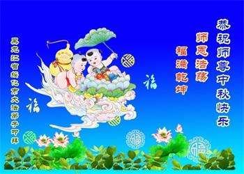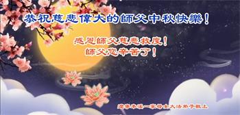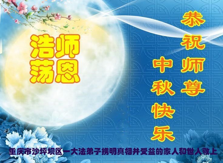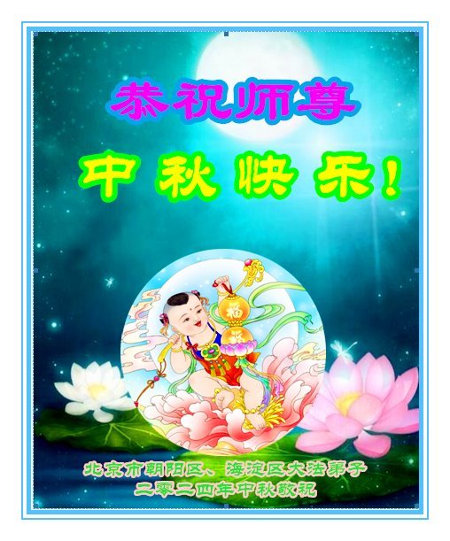 恭祝李大师中秋节愉快!感恩李大师对众生慈爱!众生叩谢大师救苦救难,苍宇处处为真善忍喝彩!