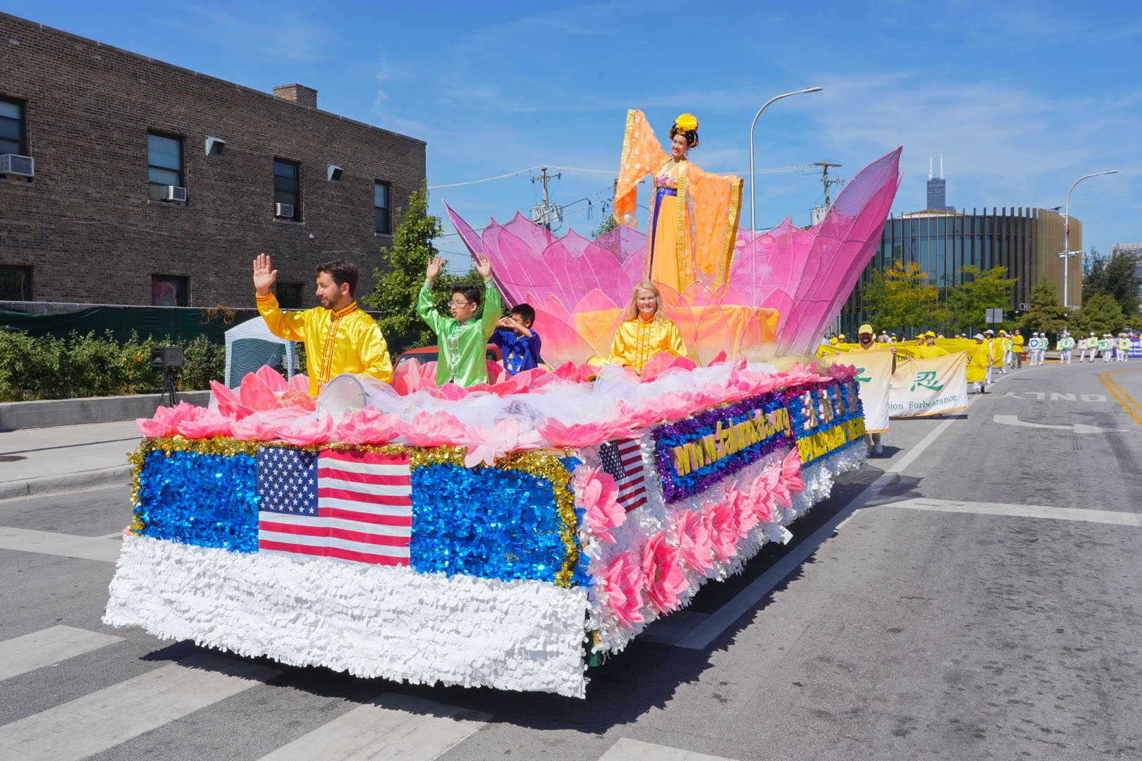 游行始于芝加哥中国城的地标之一:中山公园。中山公园是上个世纪七十年代中期为为纪念孙中山所建,一直是这里华人的聚集之地,也是每年法轮功真相游行的起点。游行队伍以“法轮大法”和“真、善、忍”的旌旗方阵开道,紧随其后的是唐鼓方阵和花车,还有展示法轮功功法的炼功方阵、身着白衣的悼念被中共迫害致死法轮功学员的悼念方阵,以及呼吁“停止迫害法轮功”的反迫害方阵。游行所到之处得到了很多居民和游客的鼓励和支持。