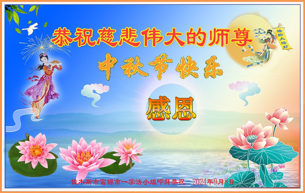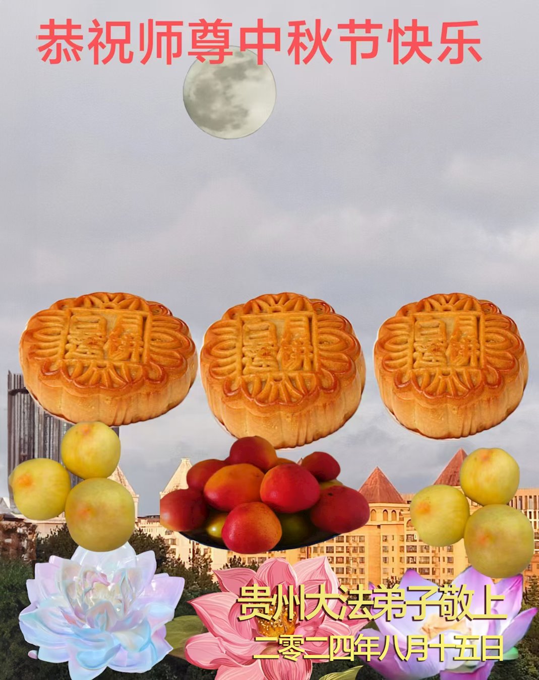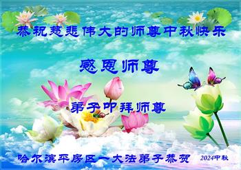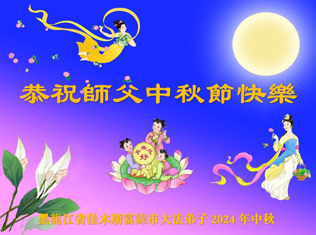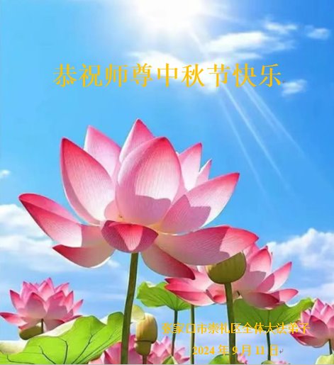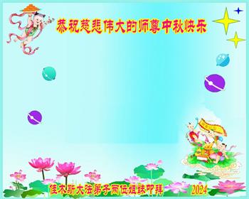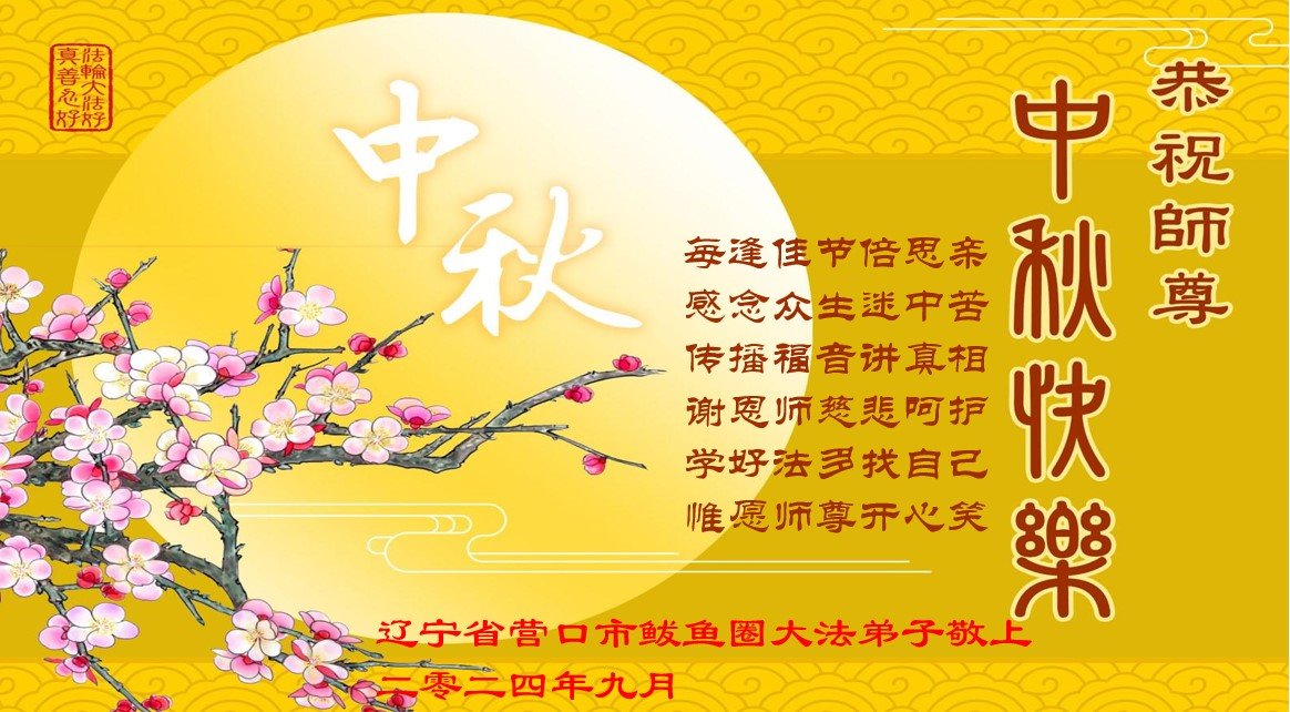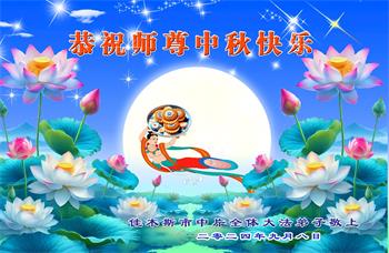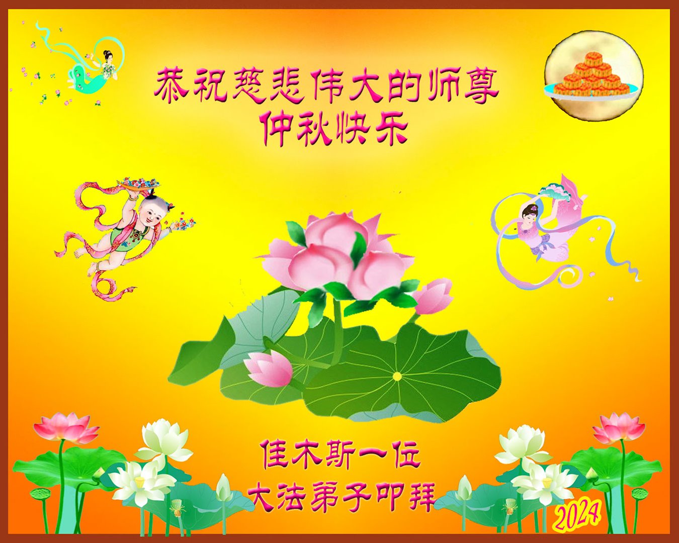 【明慧网二零二四年九月十六日】(明慧网通讯员综合报道)中秋佳节来临之际,在中国大陆公安、检察院、司法、法院及军队系统任职的大法弟子们遥寄贺词,感谢慈悲伟大的师尊的救度之恩,恭祝慈悲伟大的师父中秋节好!