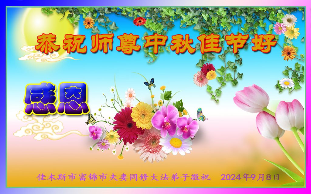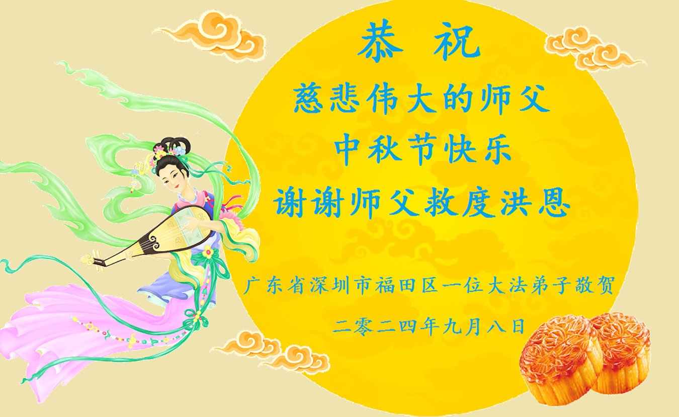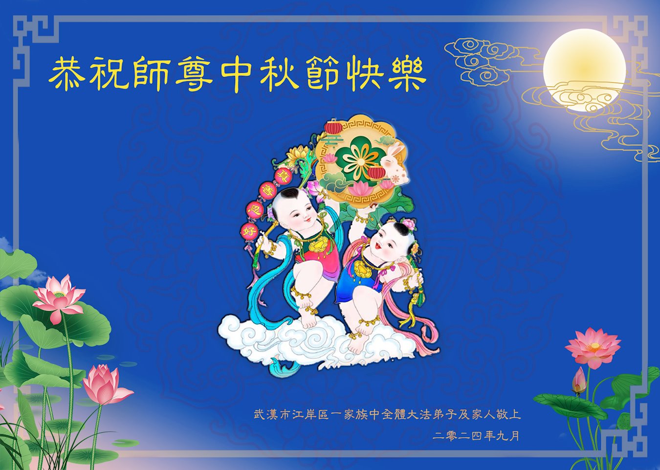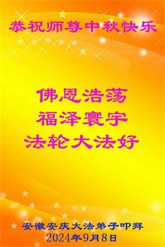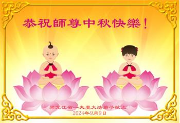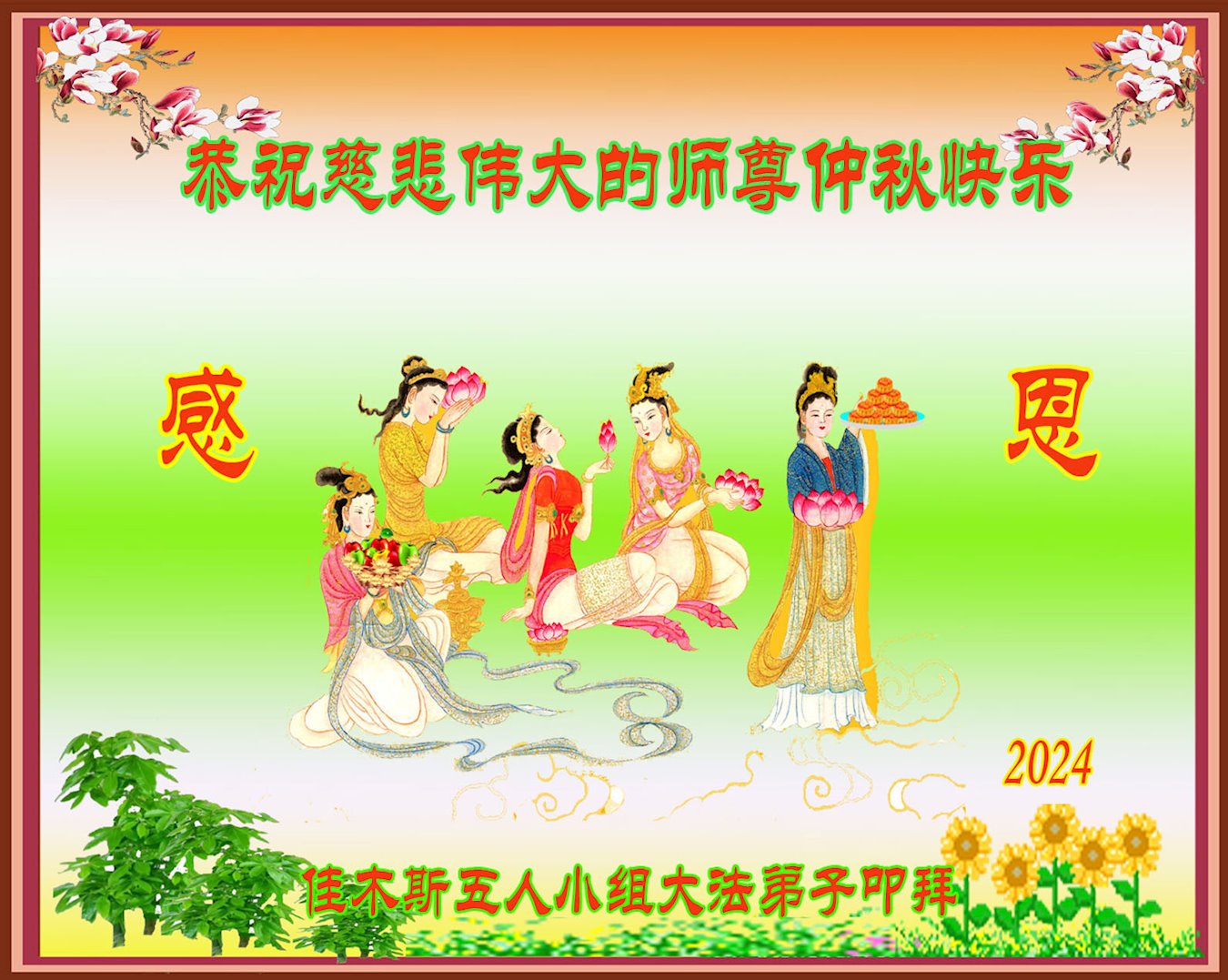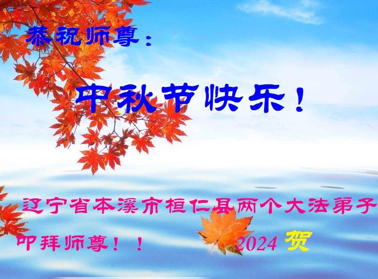 【明慧网二零二四年九月十六日】(明慧网通讯员综合报道)中秋佳节来临之际,在中国大陆公安、检察院、司法、法院及军队系统任职的大法弟子们遥寄贺词,感谢慈悲伟大的师尊的救度之恩,恭祝慈悲伟大的师父中秋节好!