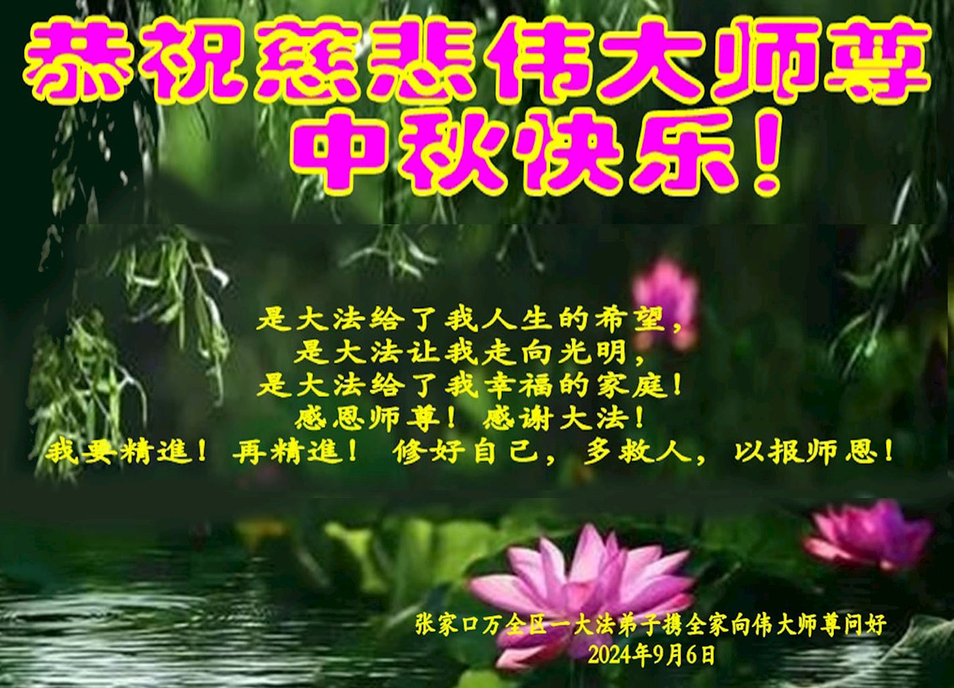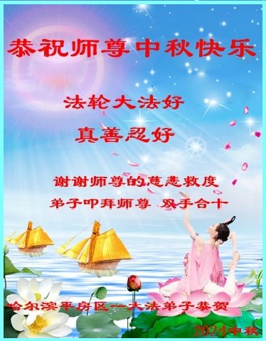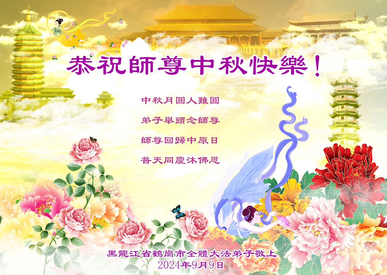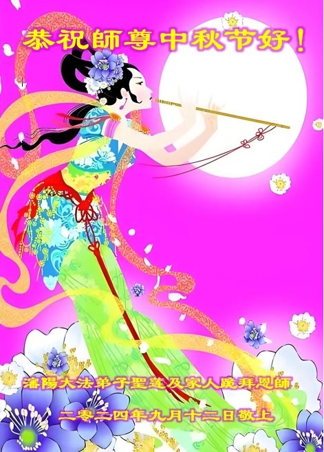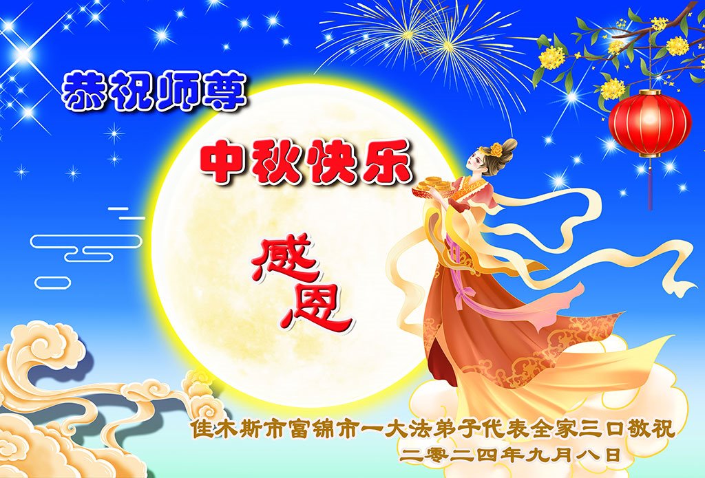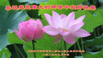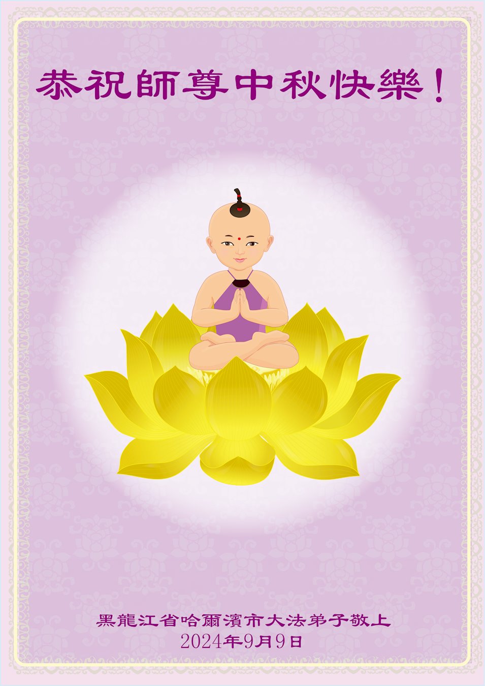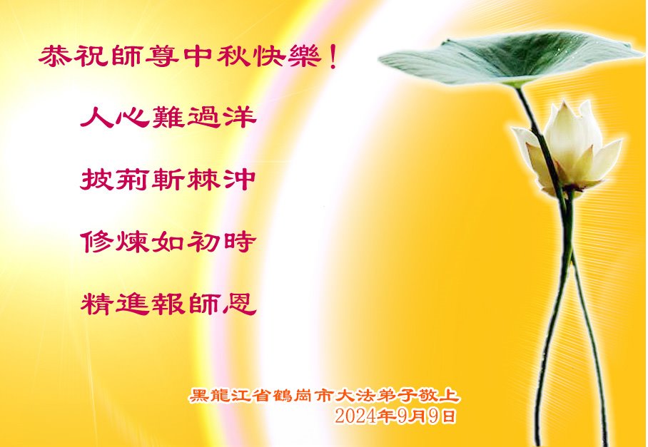 【明慧网二零二四年九月十六日】(明慧网通讯员综合报道)中秋佳节来临之际,在中国大陆公安、检察院、司法、法院及军队系统任职的大法弟子们遥寄贺词,感谢慈悲伟大的师尊的救度之恩,恭祝慈悲伟大的师父中秋节好!